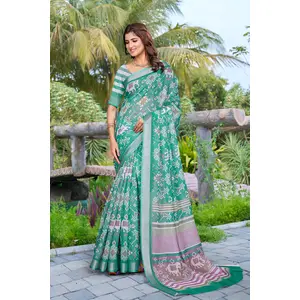 Rama Color Linen Cotton Saree With...