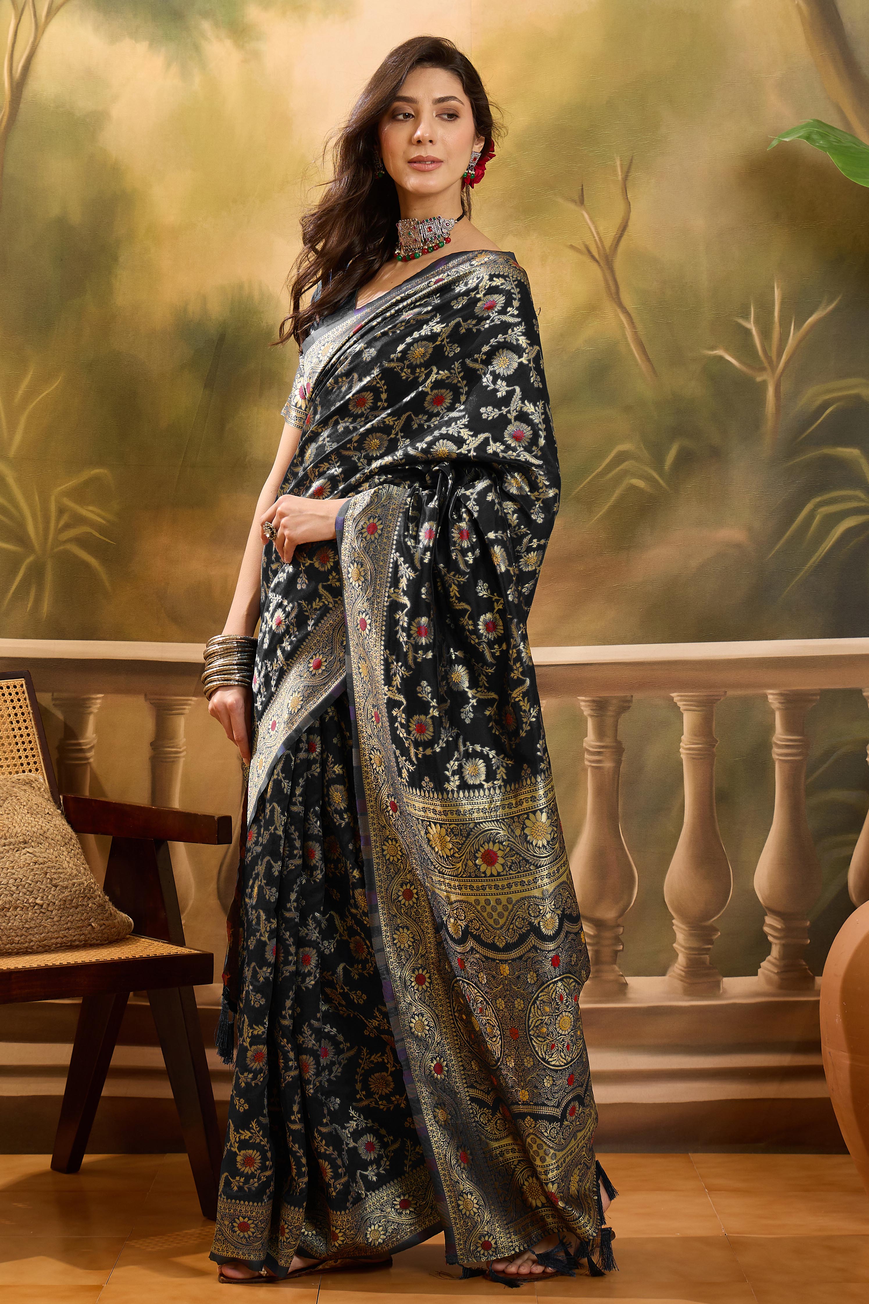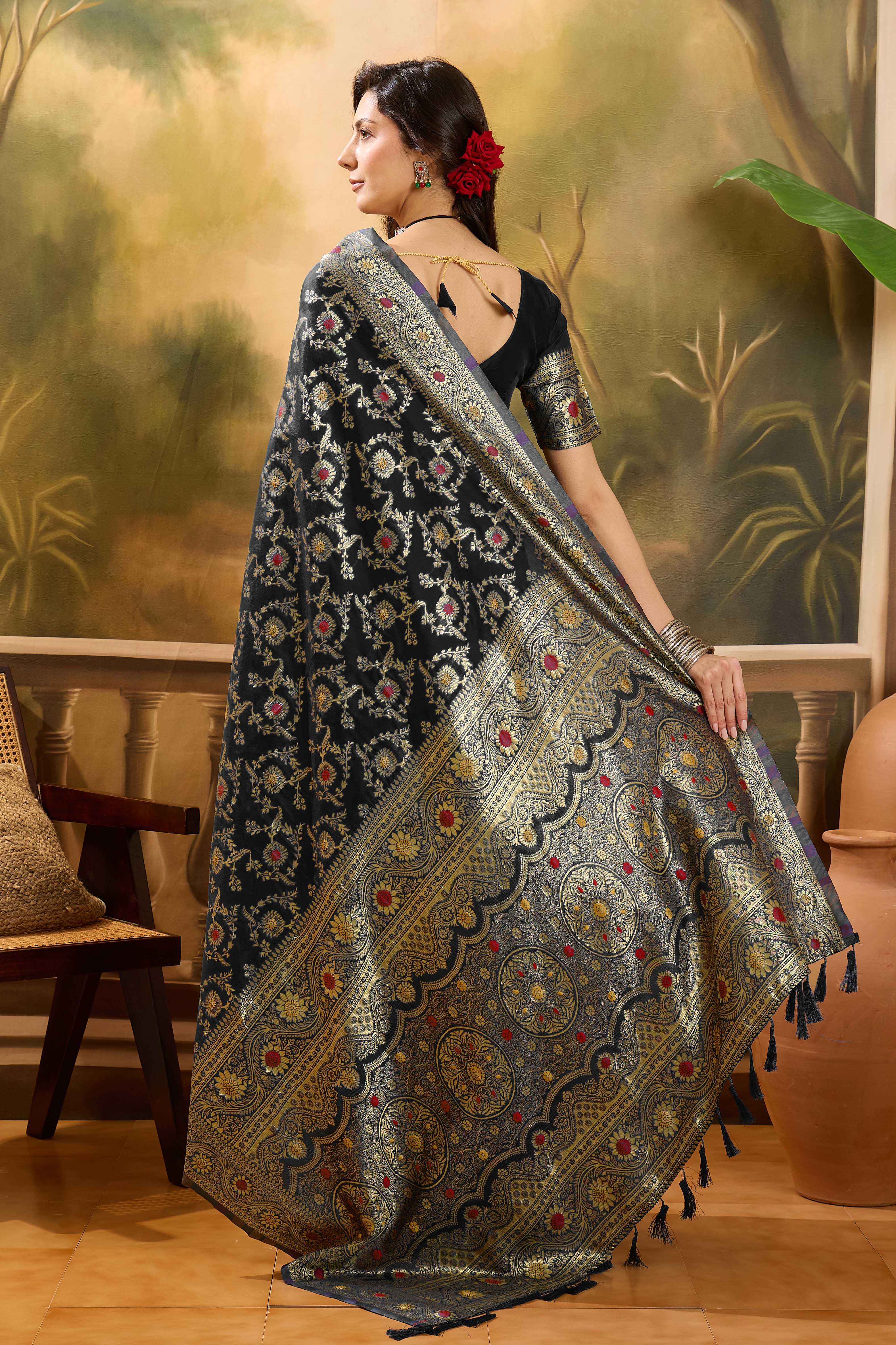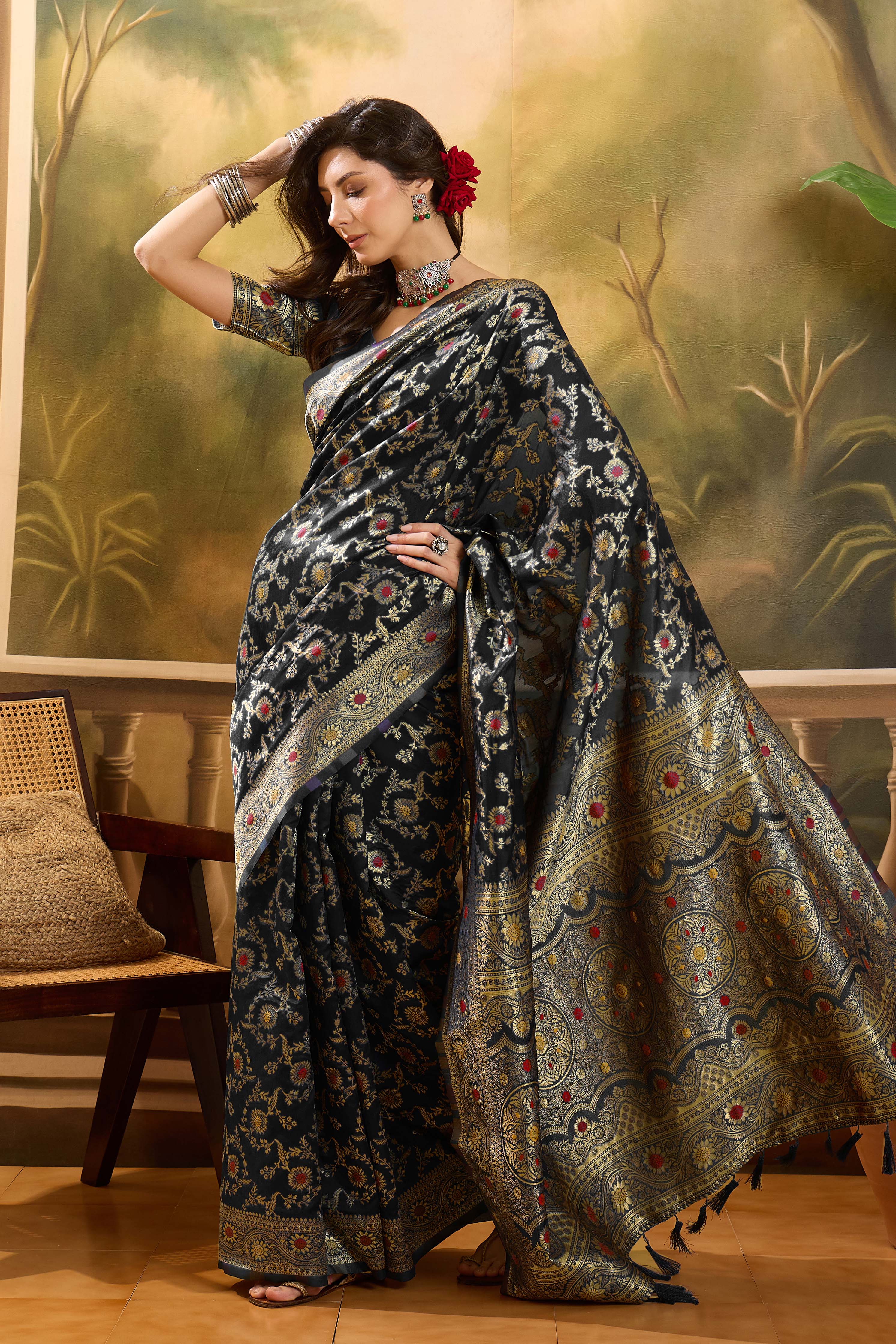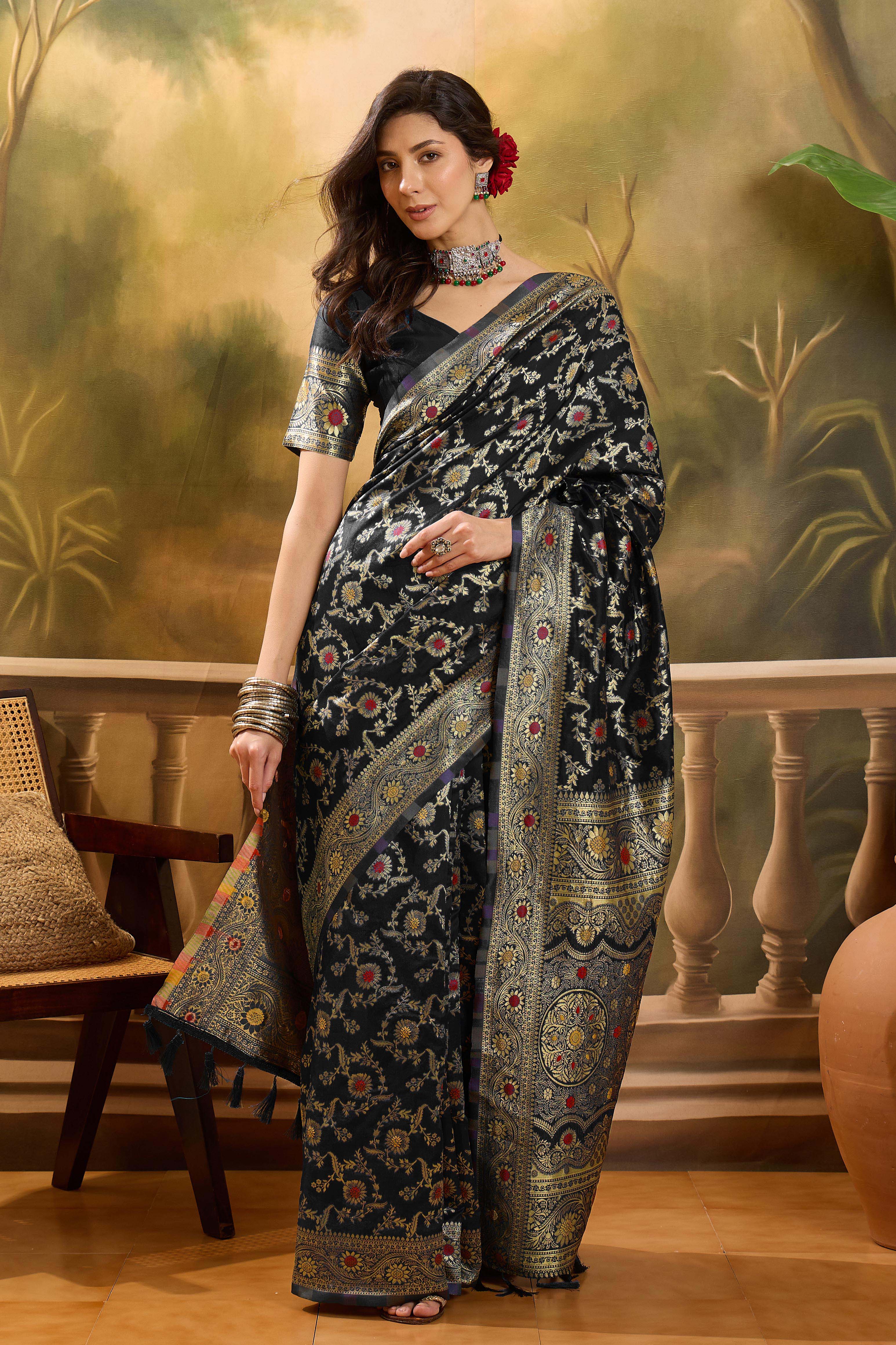 Fashion Dream Womens Black Banarasi Jacquard Saree | Soft & Elegant Traditional Wear