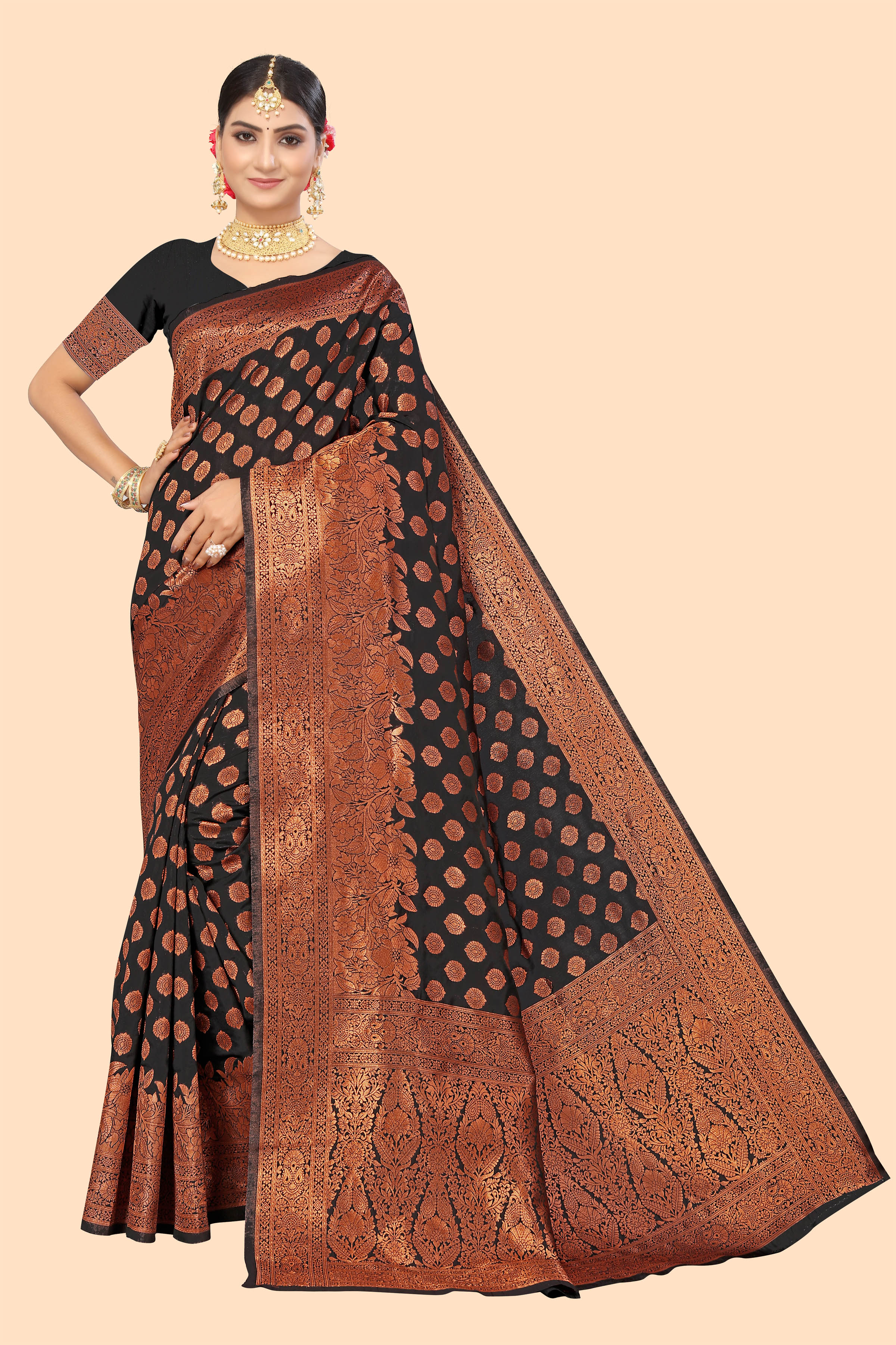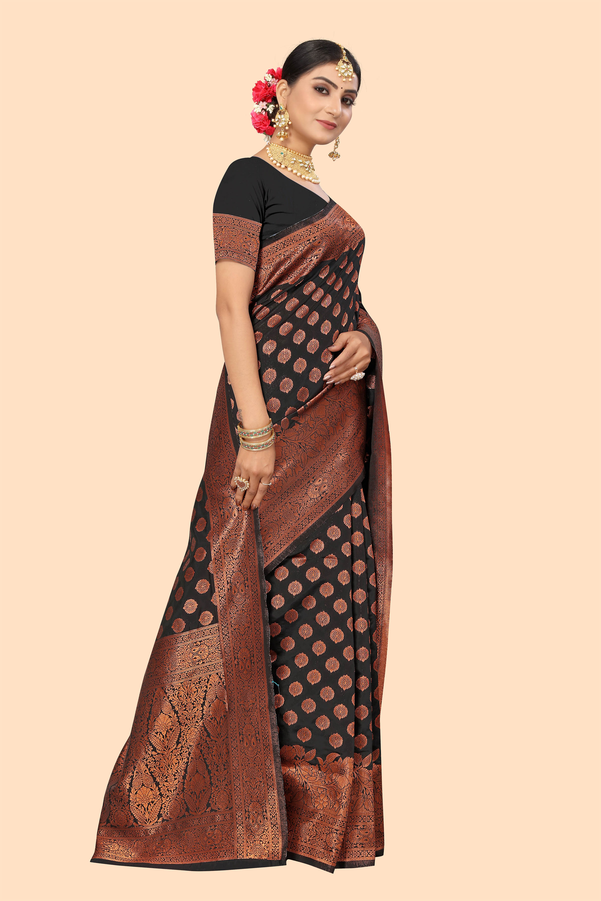 Fashion Dream Womens Black Banarasi Silk Saree | Soft & Elegant Traditional Wear