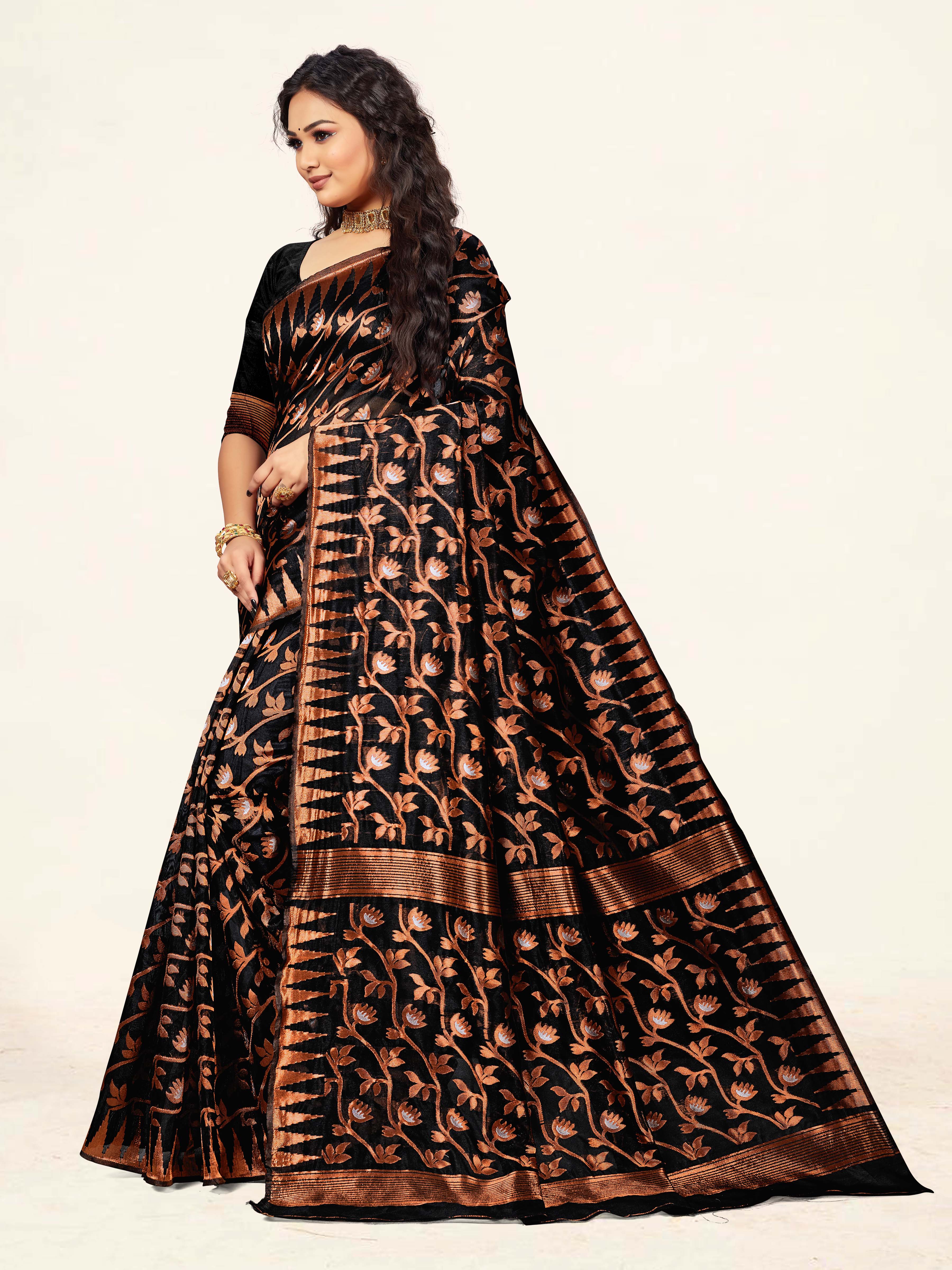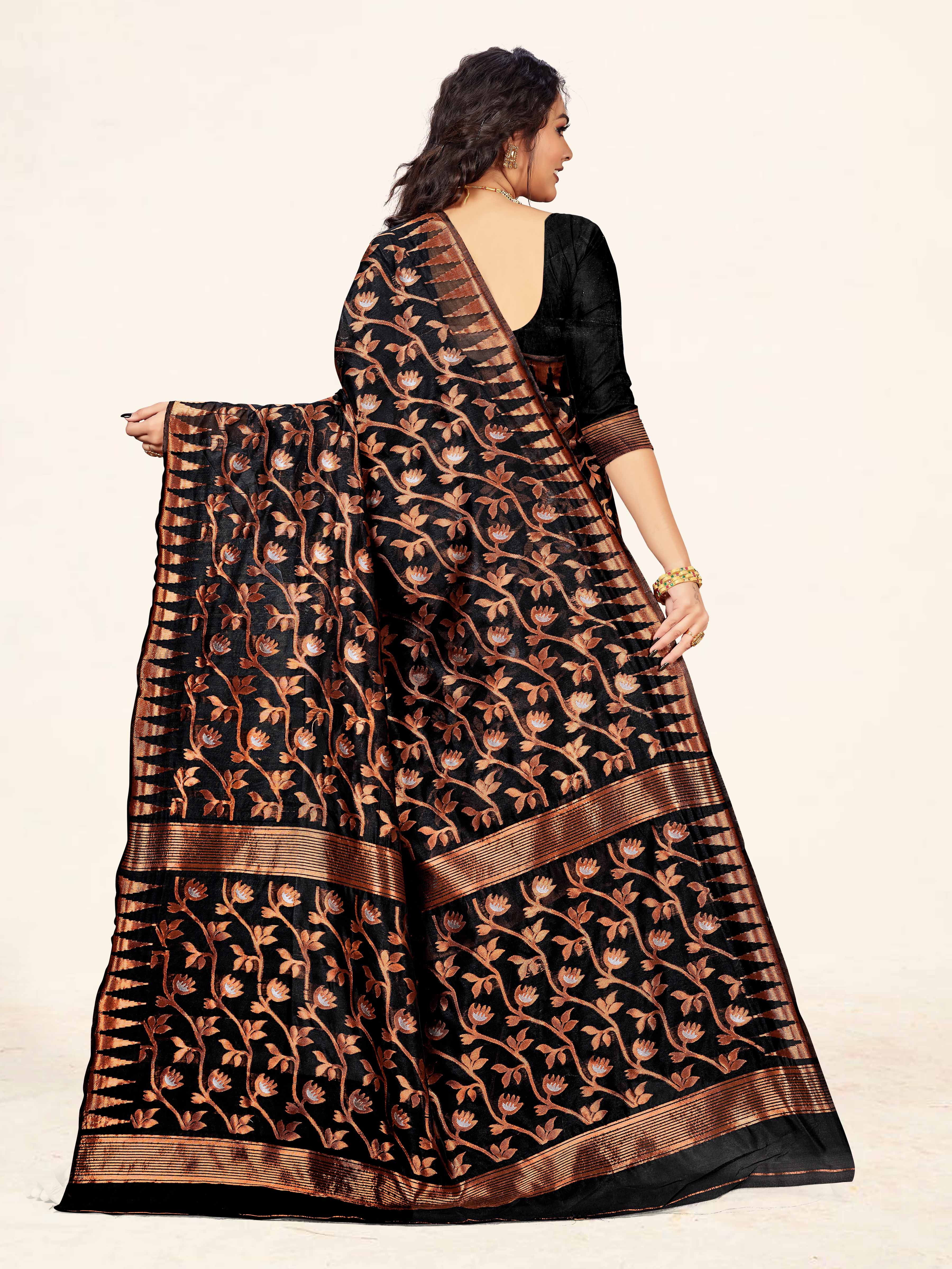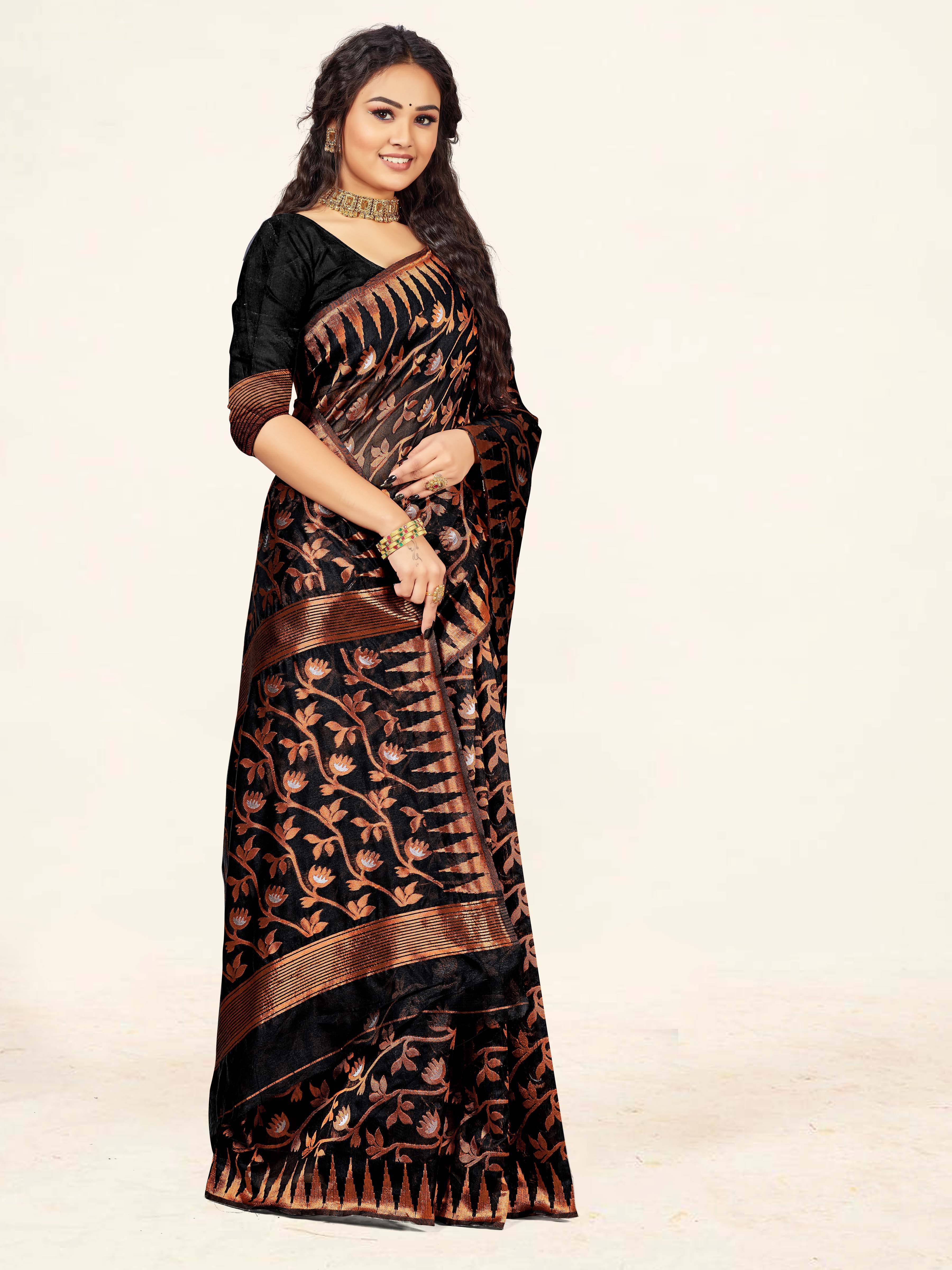 Fashion Dream Womens Black Cotton Saree | Soft & Elegant Traditional Wear