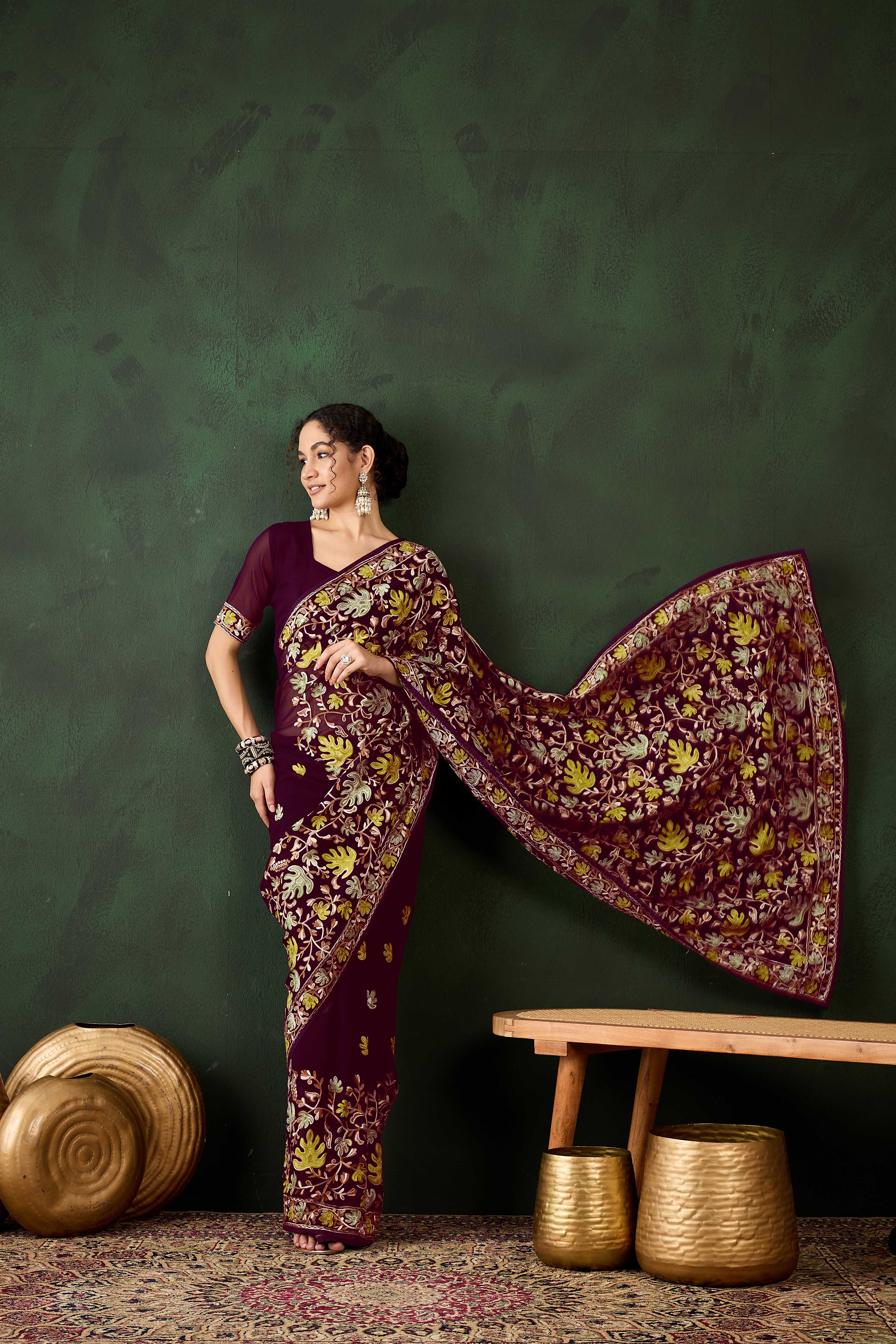 Fashion Dream Womens Burgundy Georgette Saree | Soft & Elegant Traditional Wear