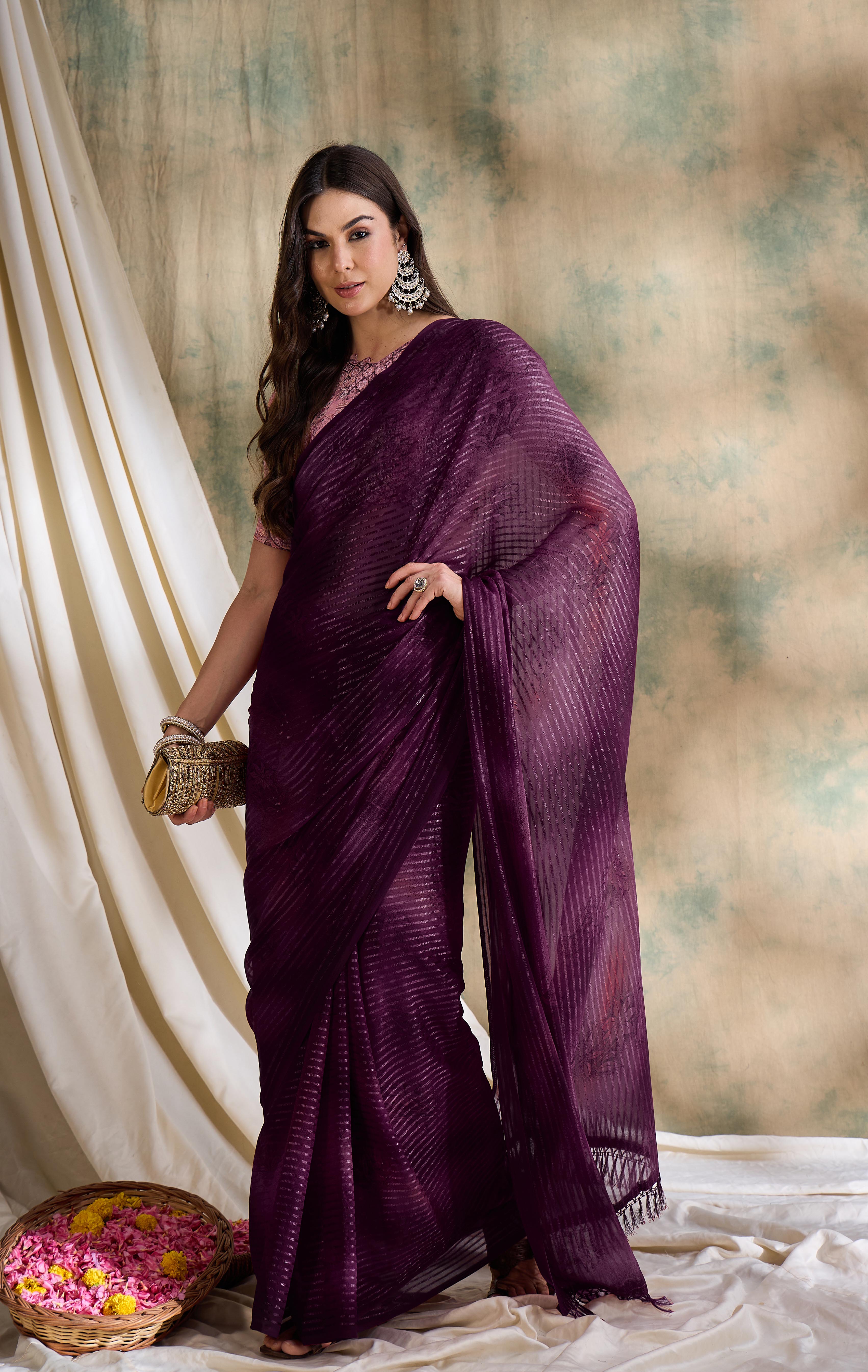 Fashion Dream Womens Burgundy Sparkle Lining Saree | Soft & Elegant Traditional Wear