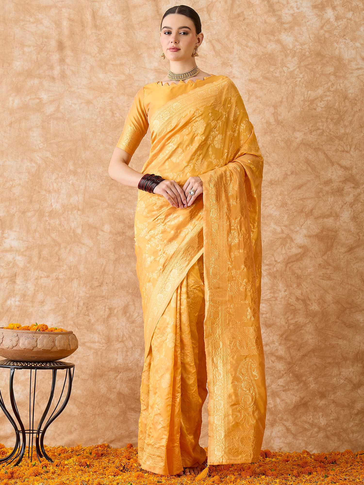 • Saree Fabric-Banarasi Silk ,Blouse Fabric-Banarasi Silk