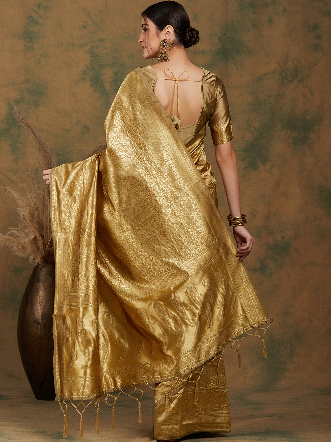 Fashion Dream Womens CREAM Banarasi Silk Saree | Soft & Elegant Traditional Wear