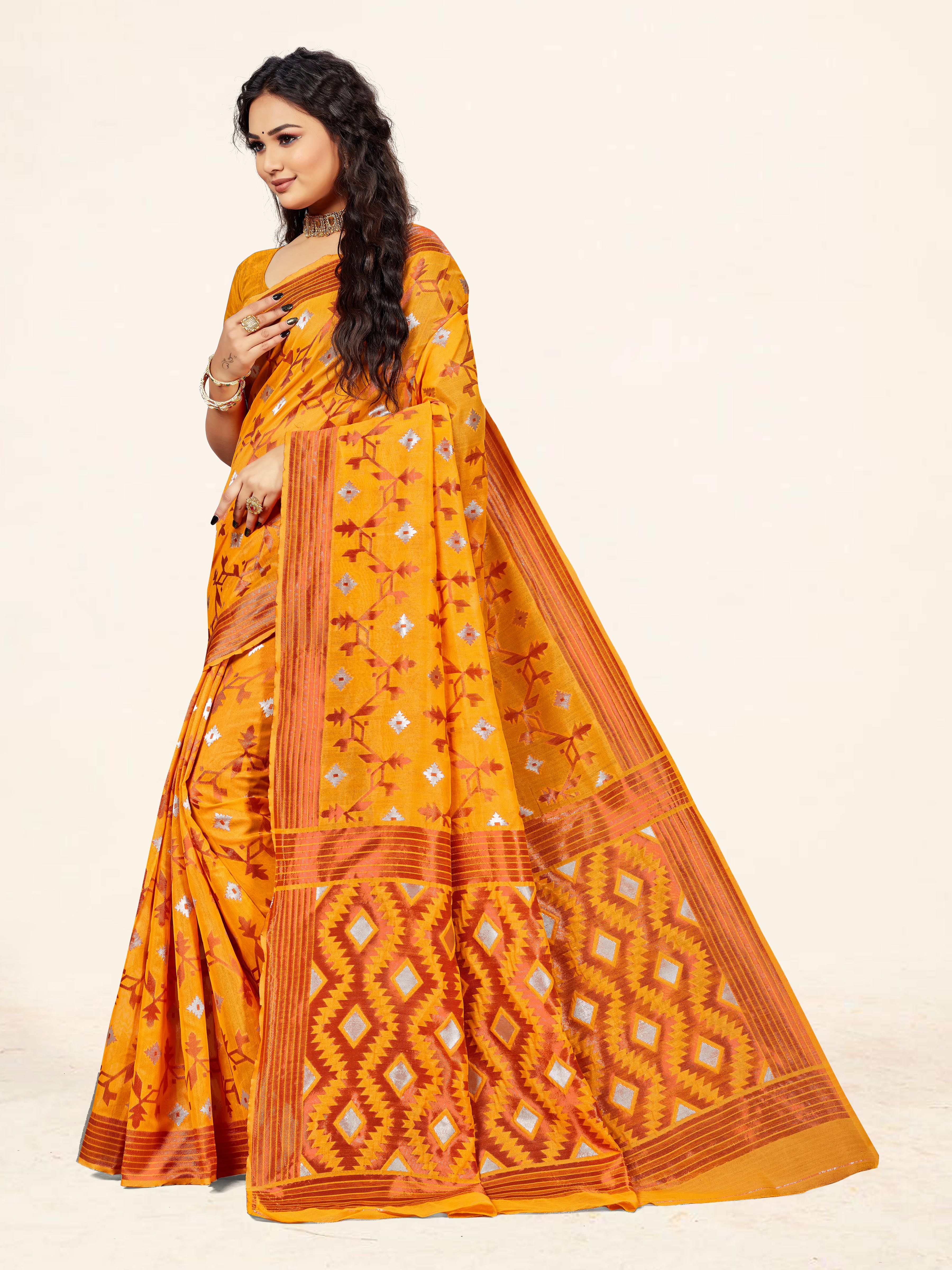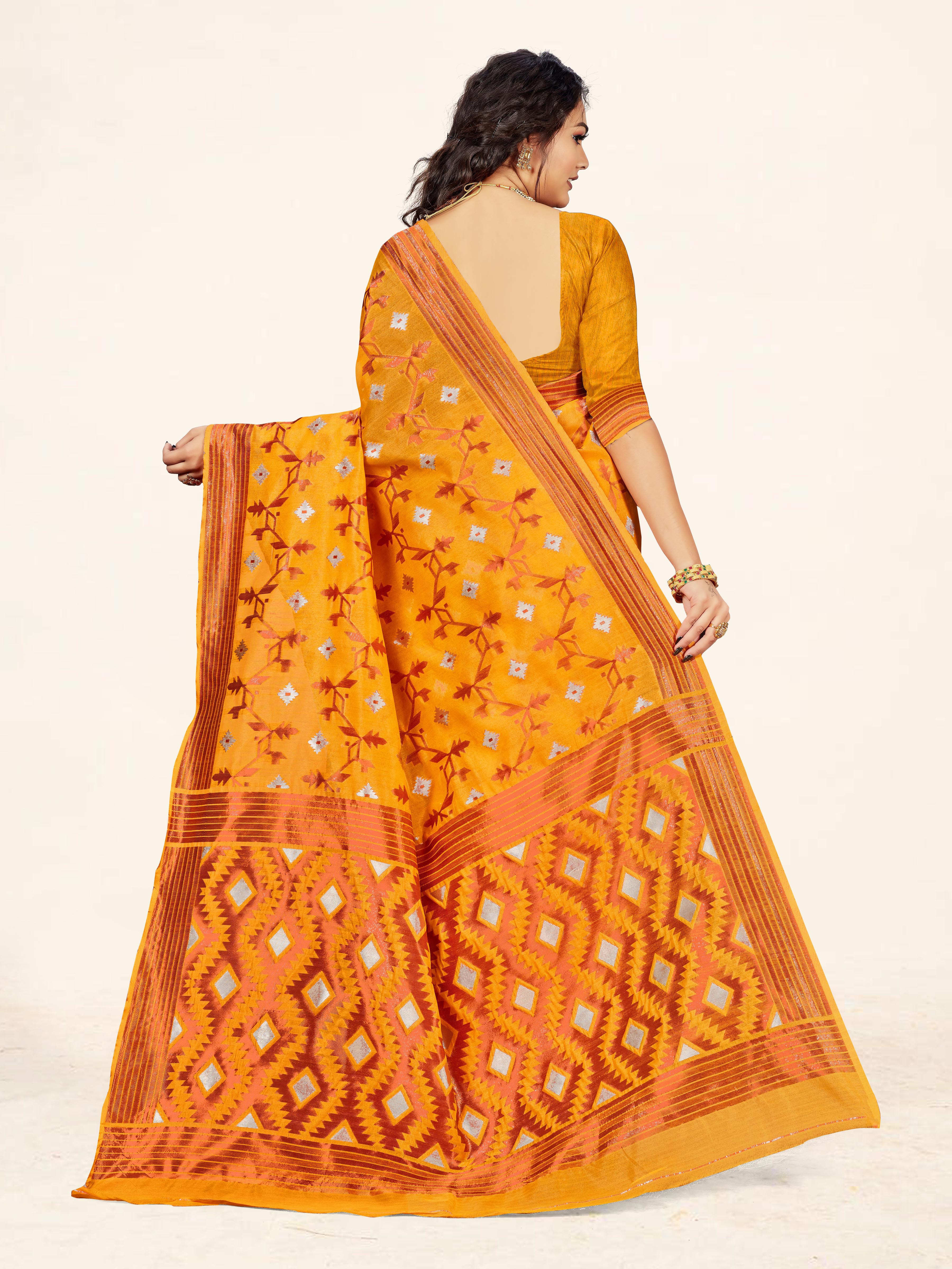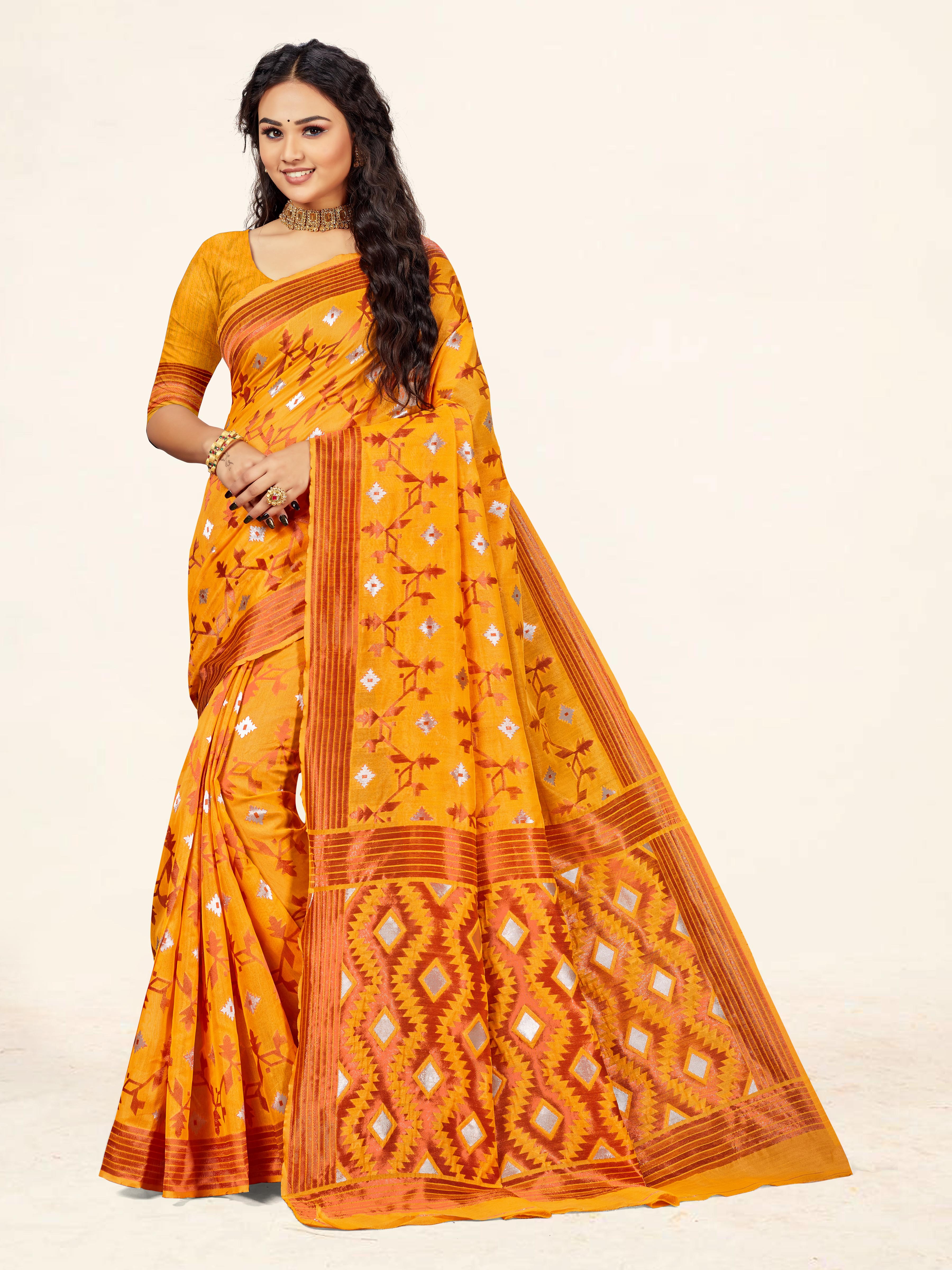 Fashion Dream Womens Gold Cotton Saree | Soft & Elegant Traditional Wear