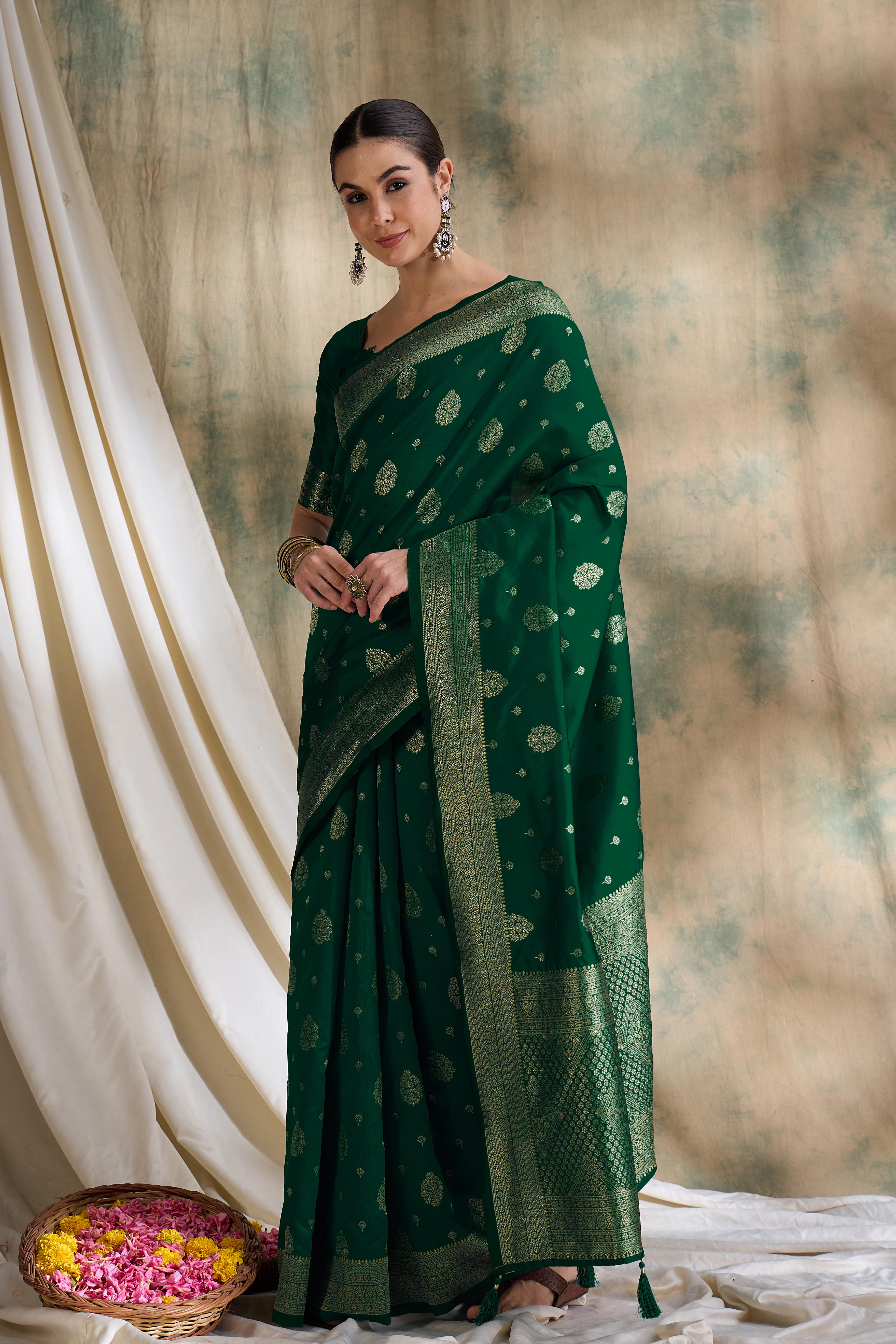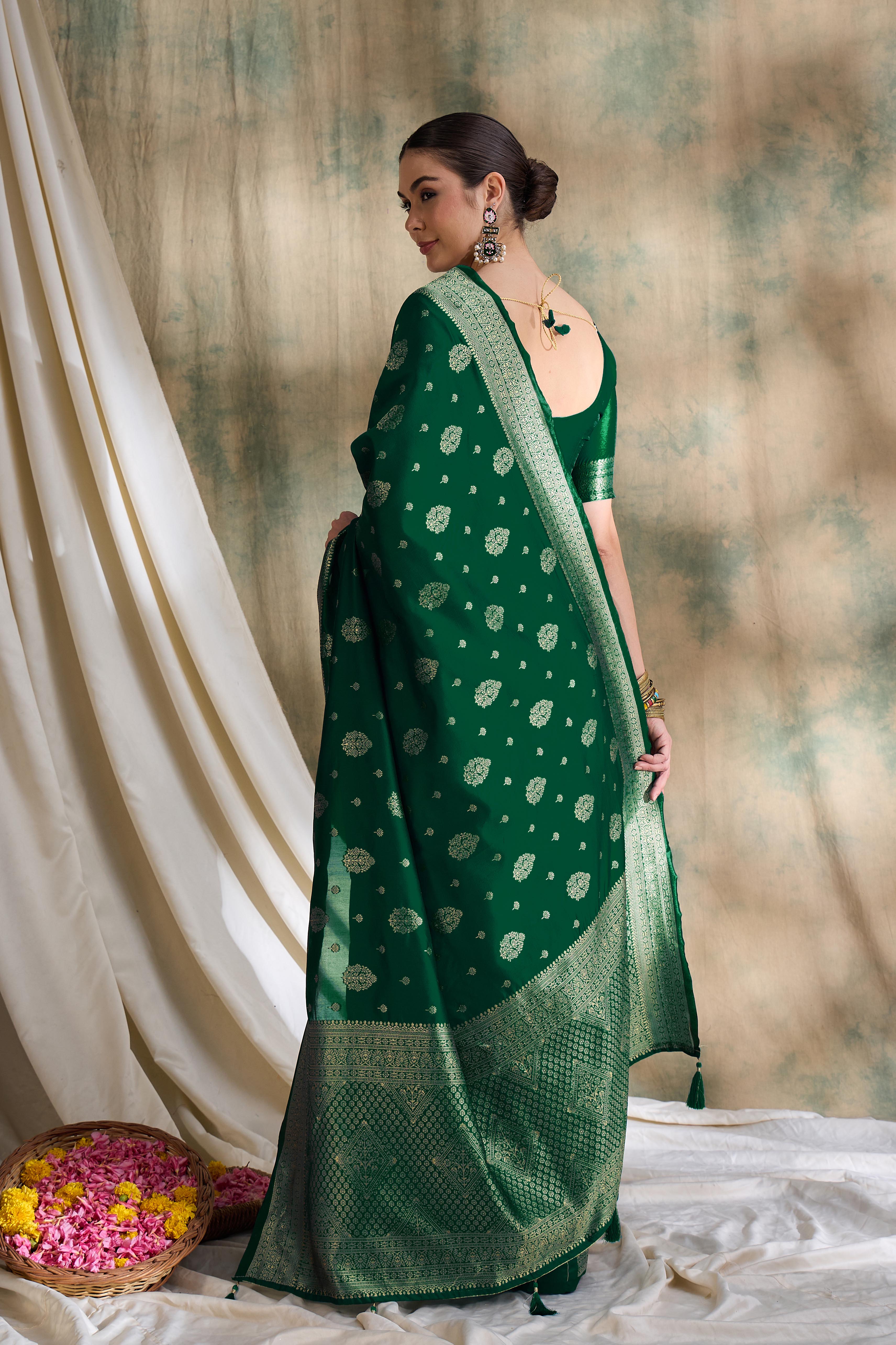 Fashion Dream Womens Green Banarasi Silk Saree | Soft & Elegant Traditional Wear