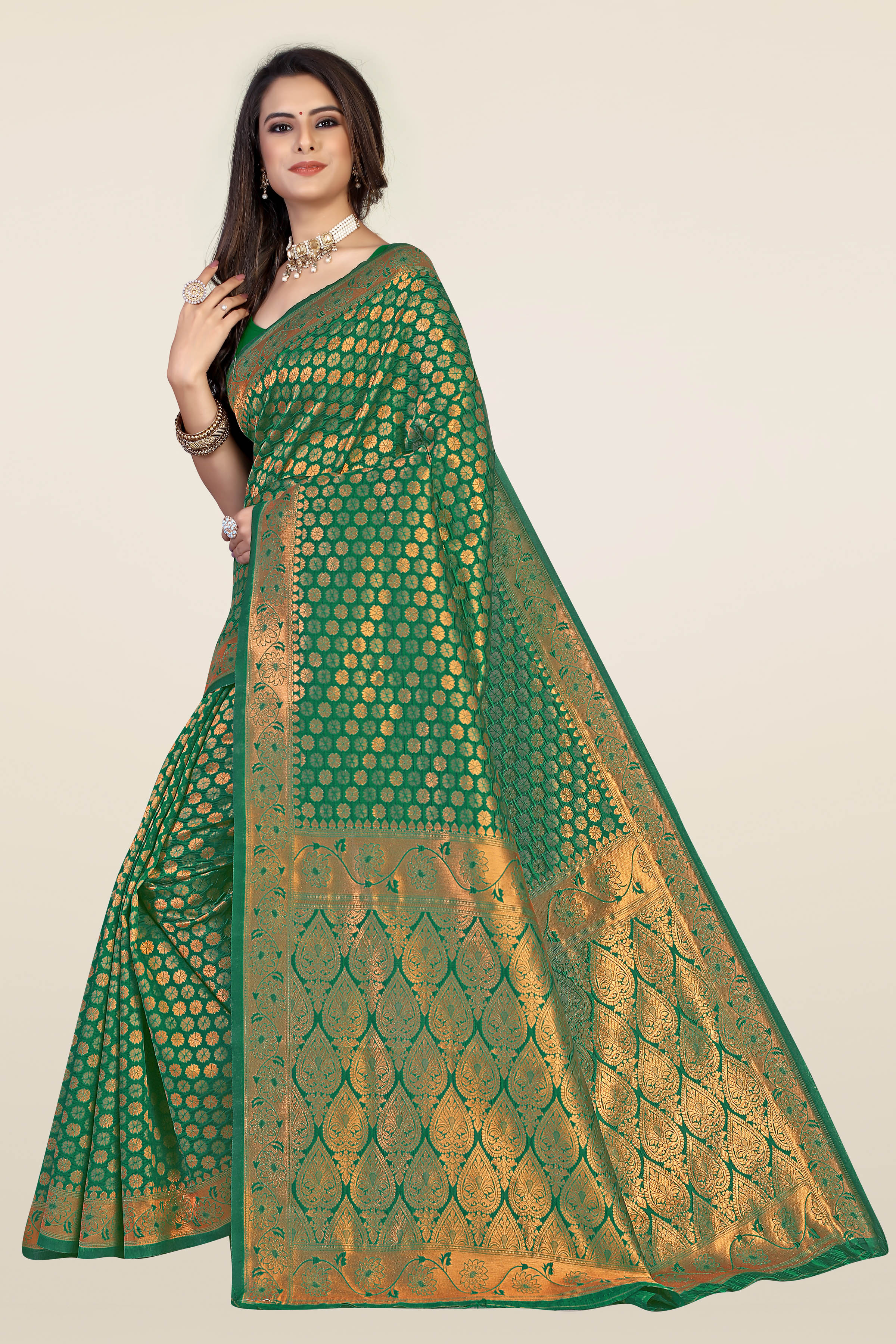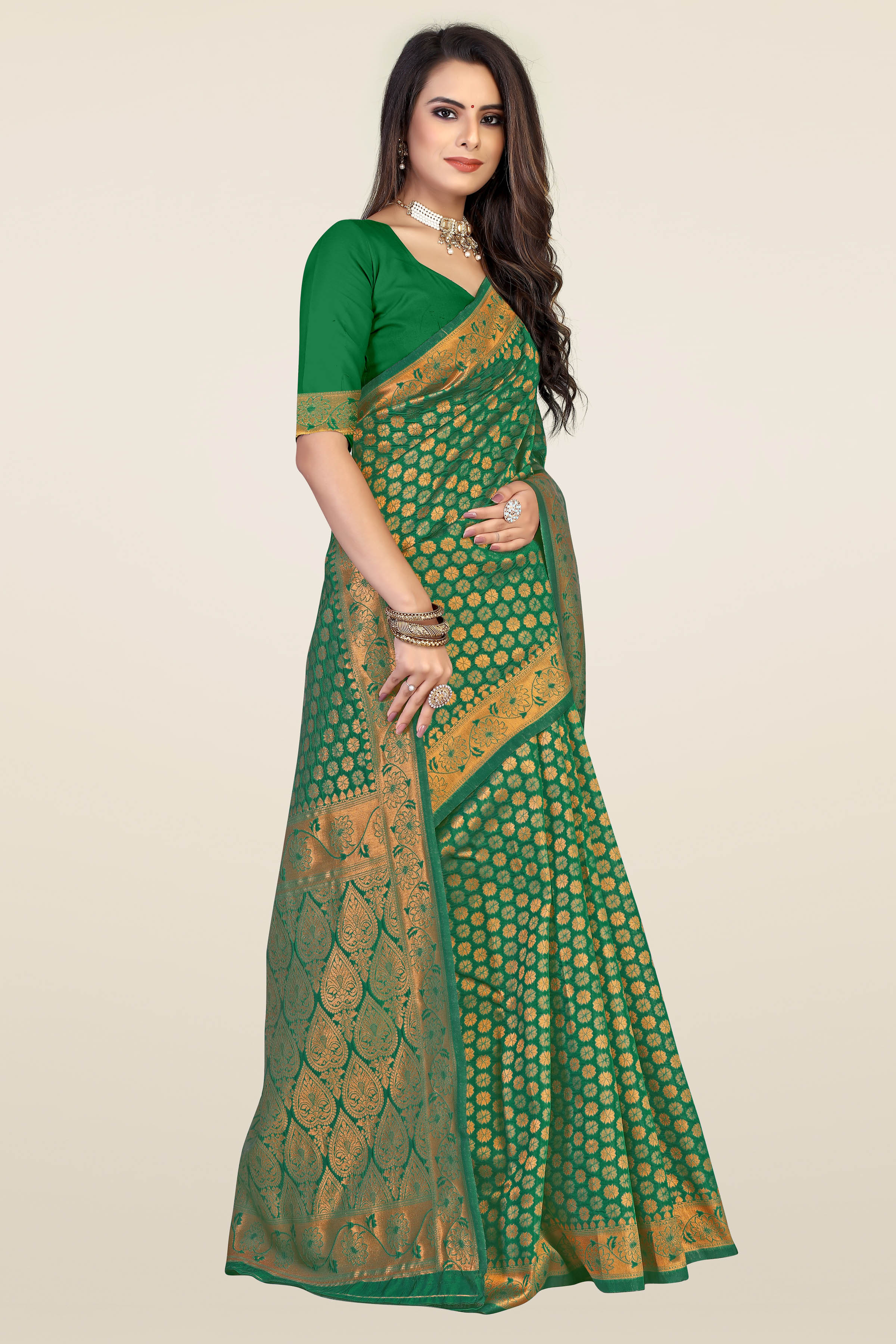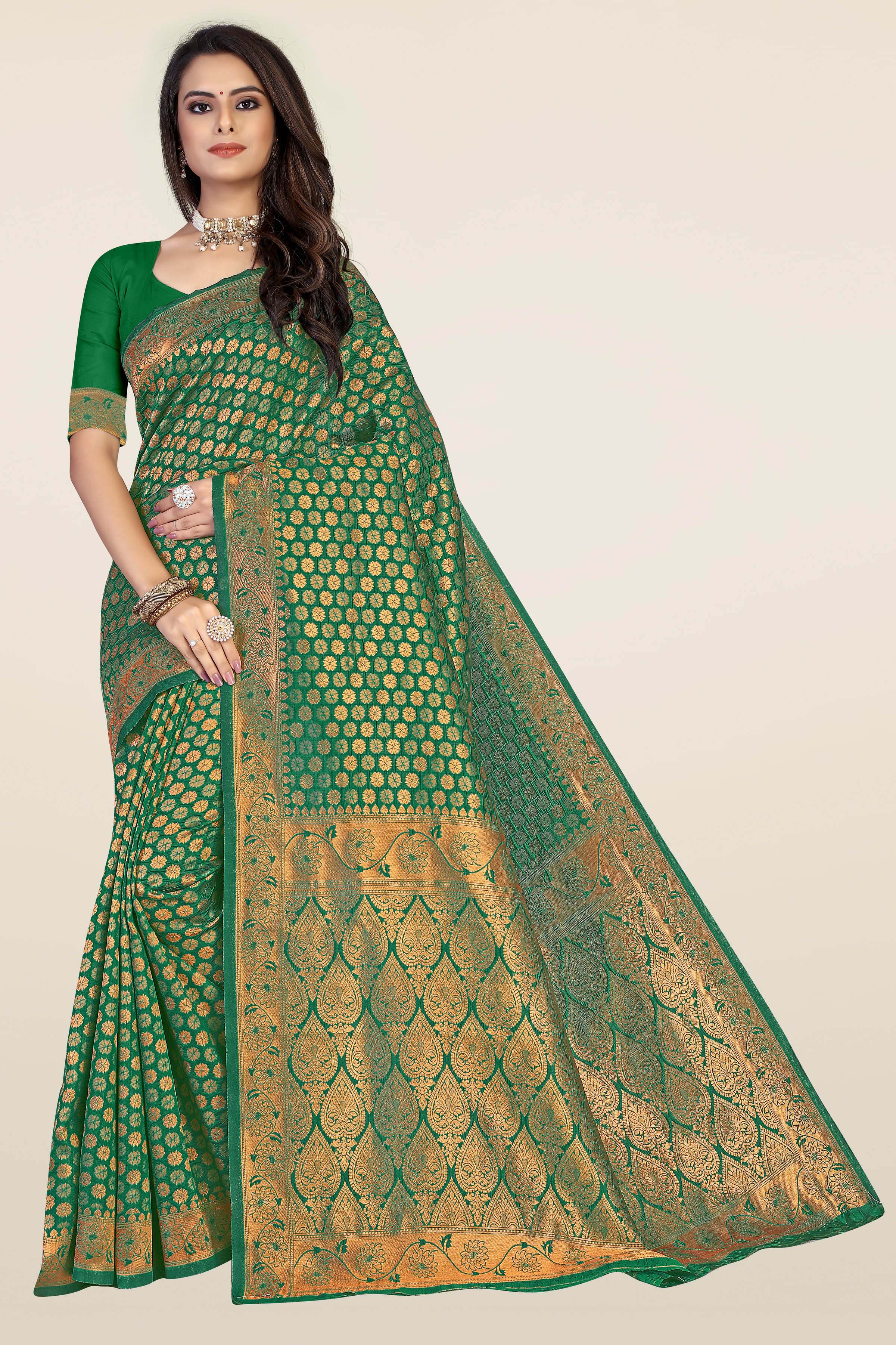 Fashion Dream Womens Green Banarasi Silk Saree | Soft & Elegant Traditional Wear