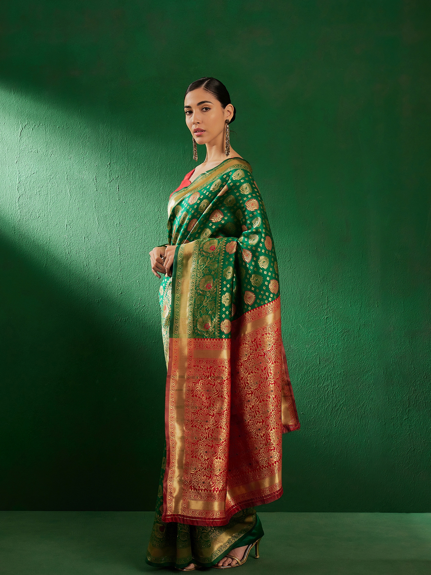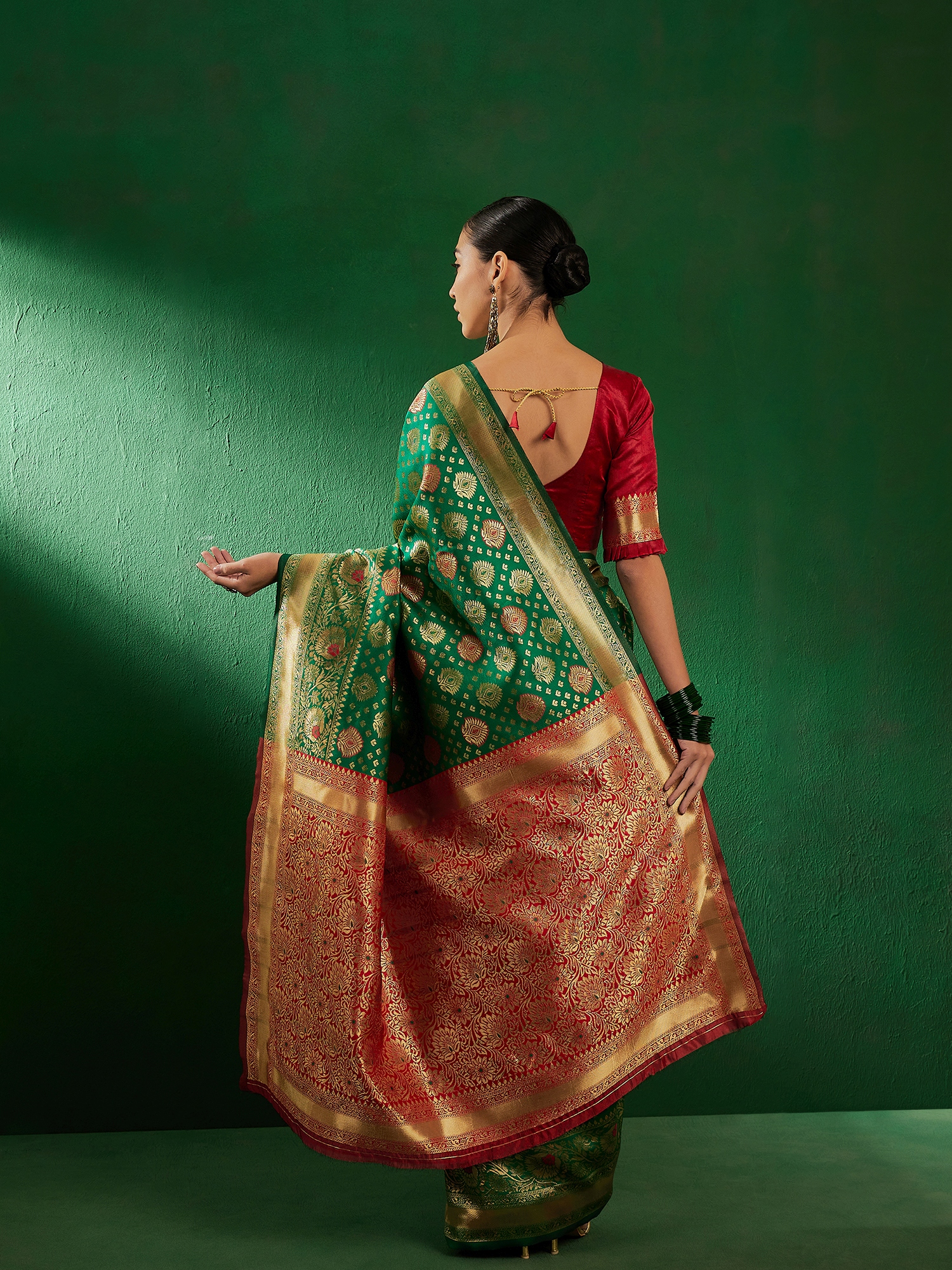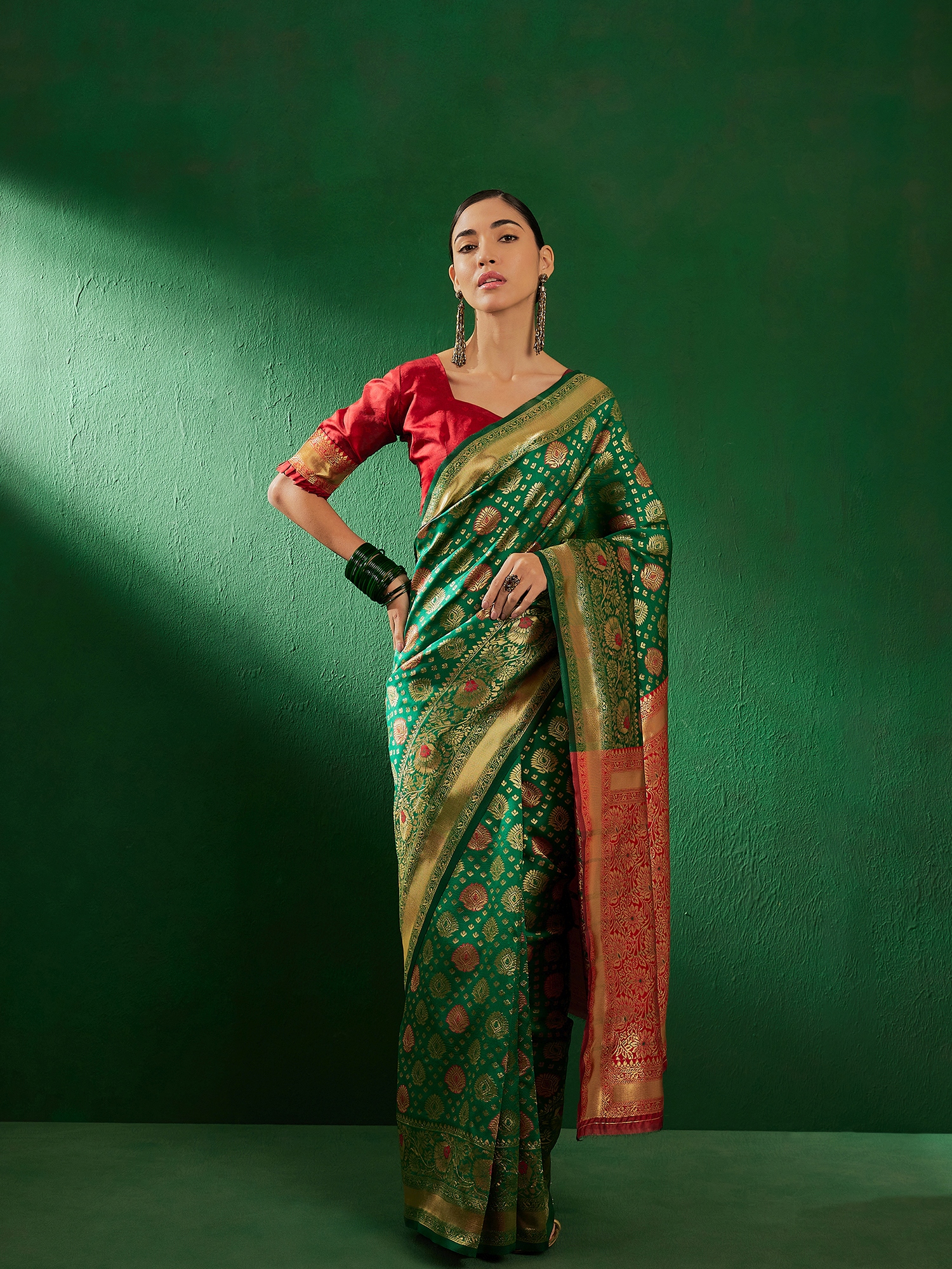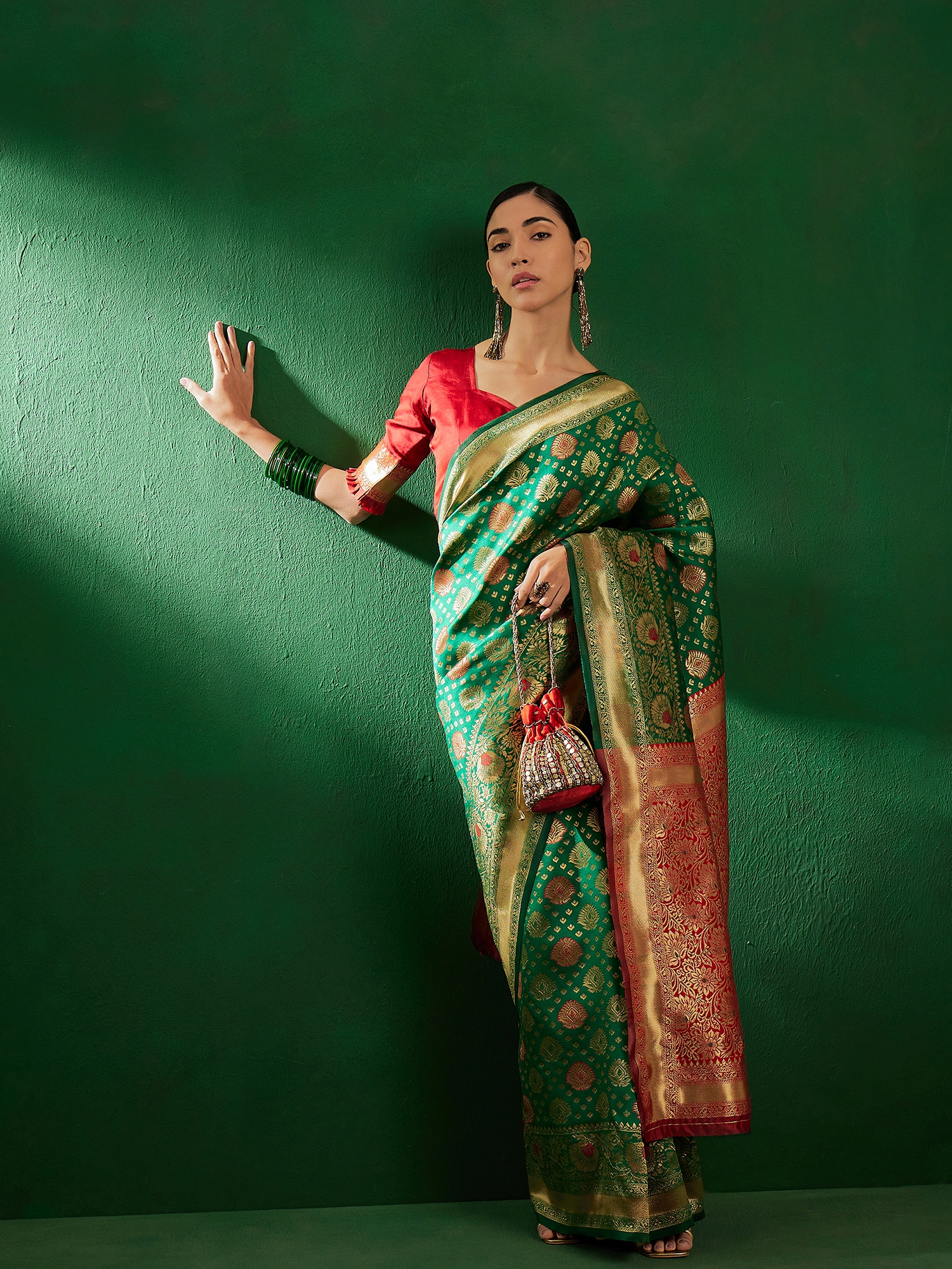 Fashion Dream Womens Green Banarasi Silk Saree | Soft & Elegant Traditional Wear