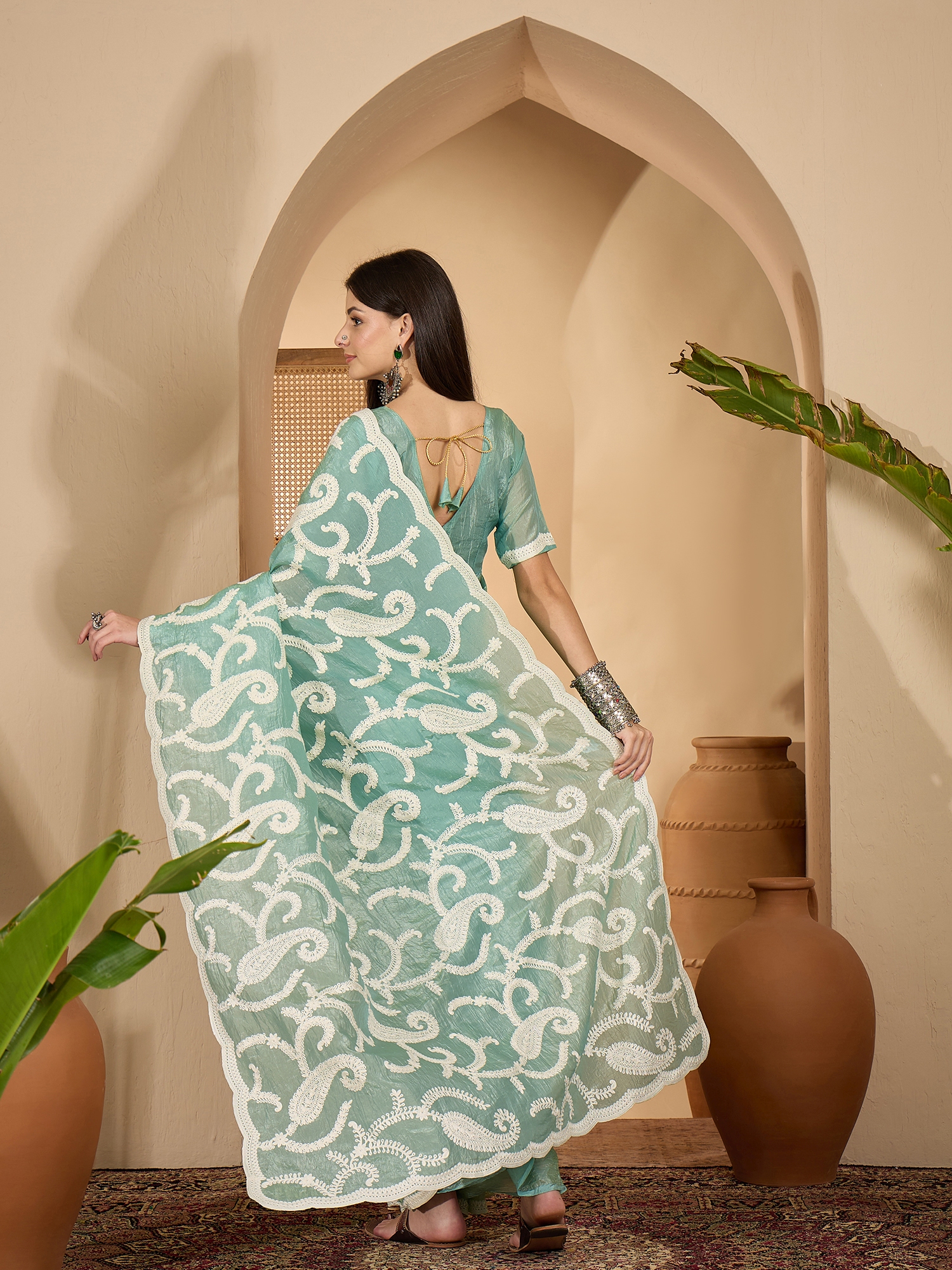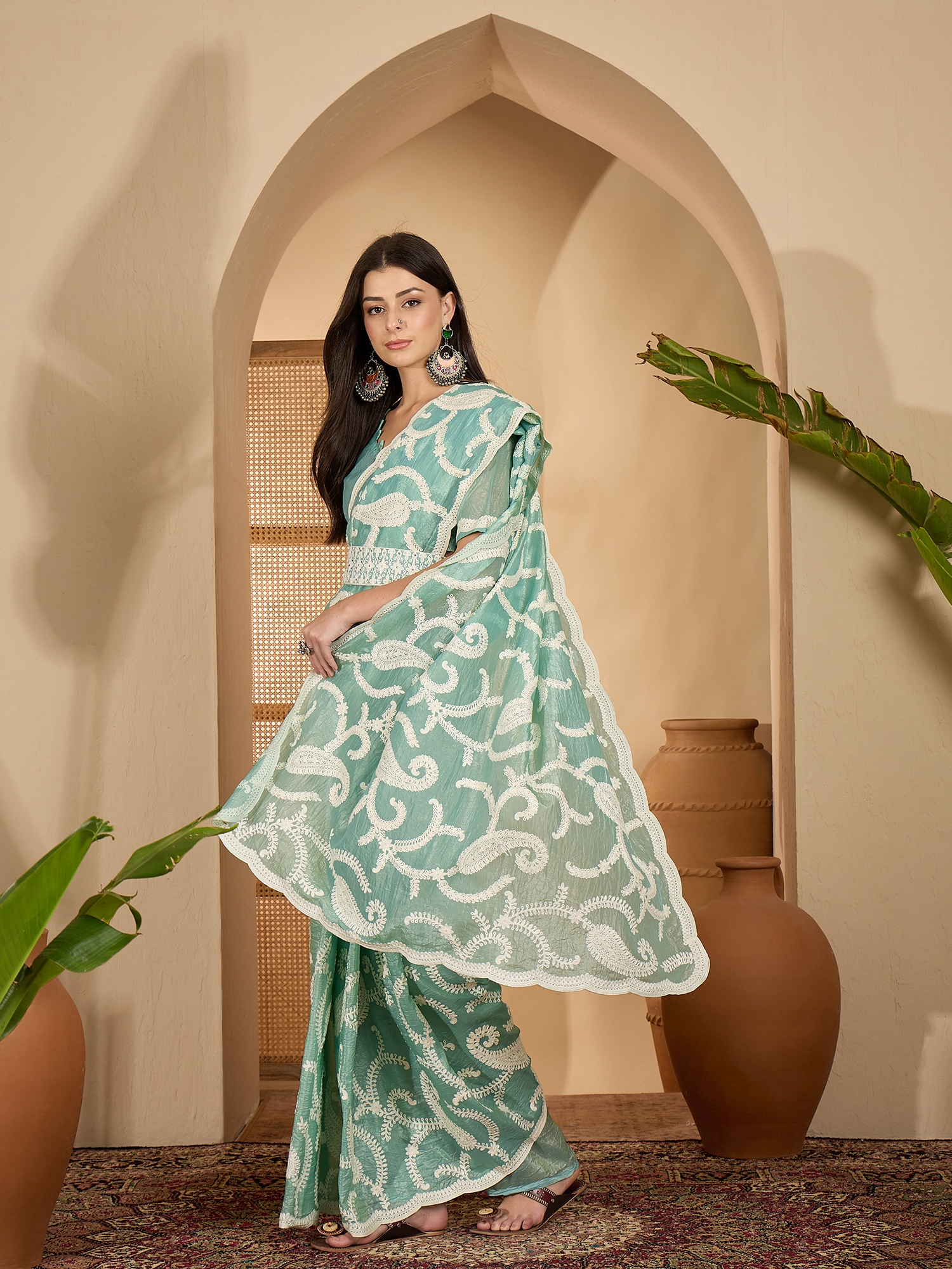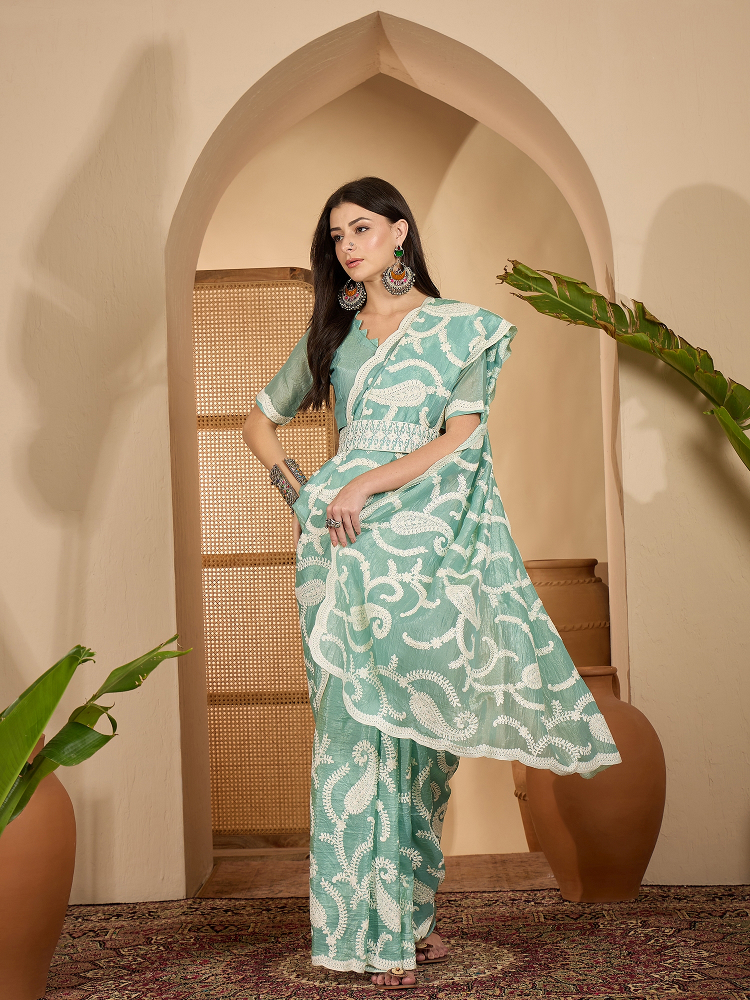 Fashion Dream Womens Green Gold Crush Saree | Soft & Elegant Traditional Wear