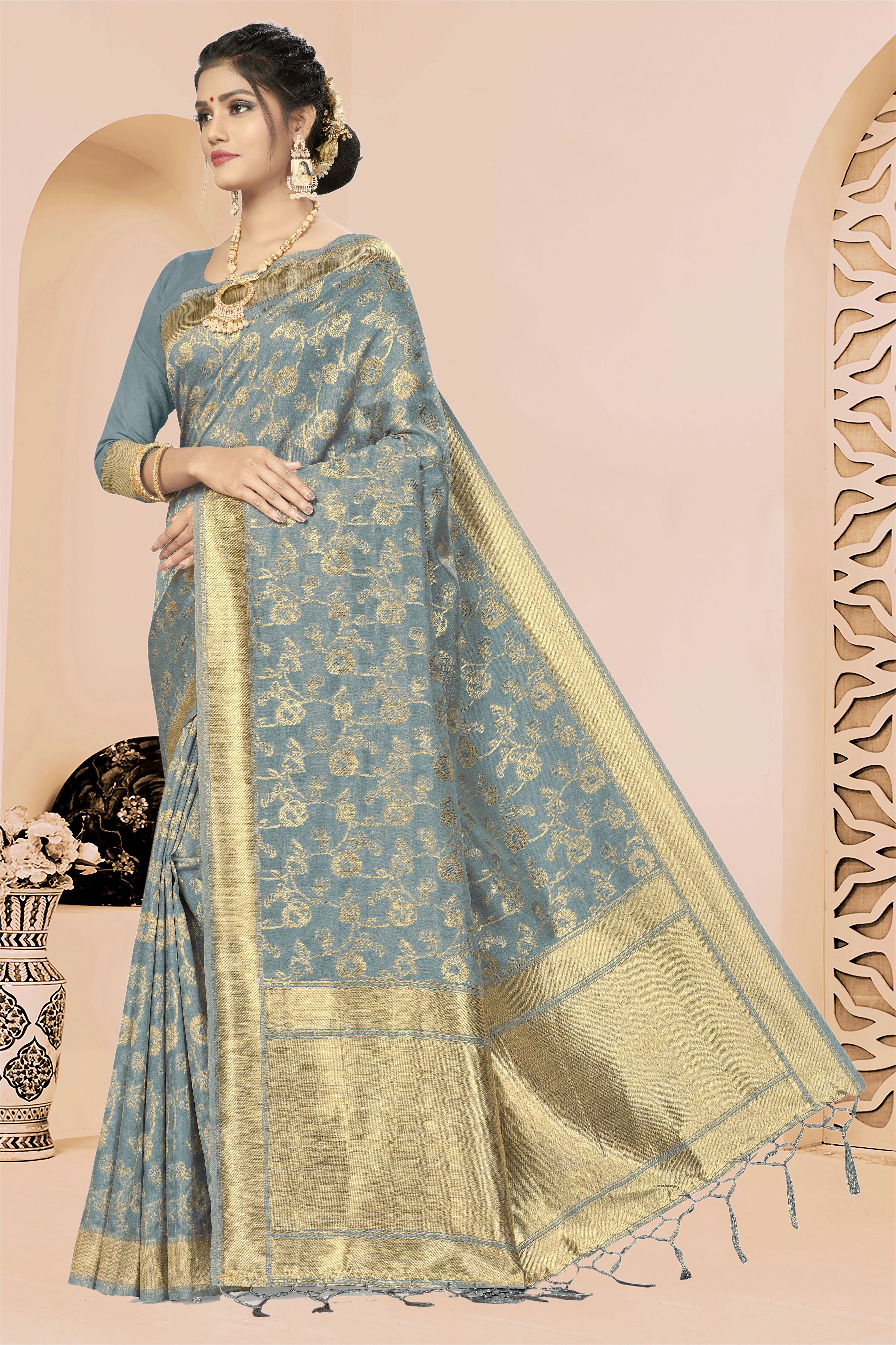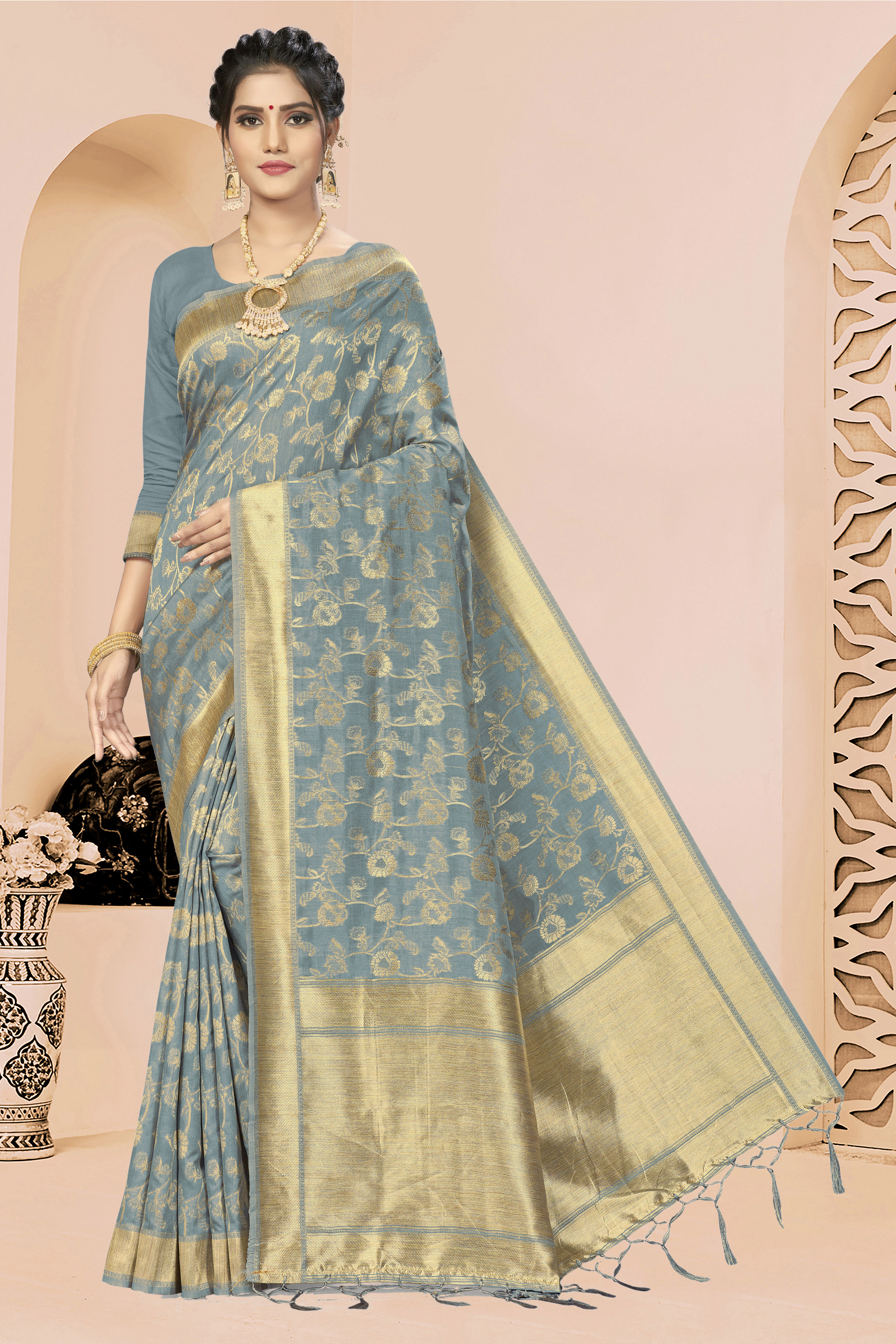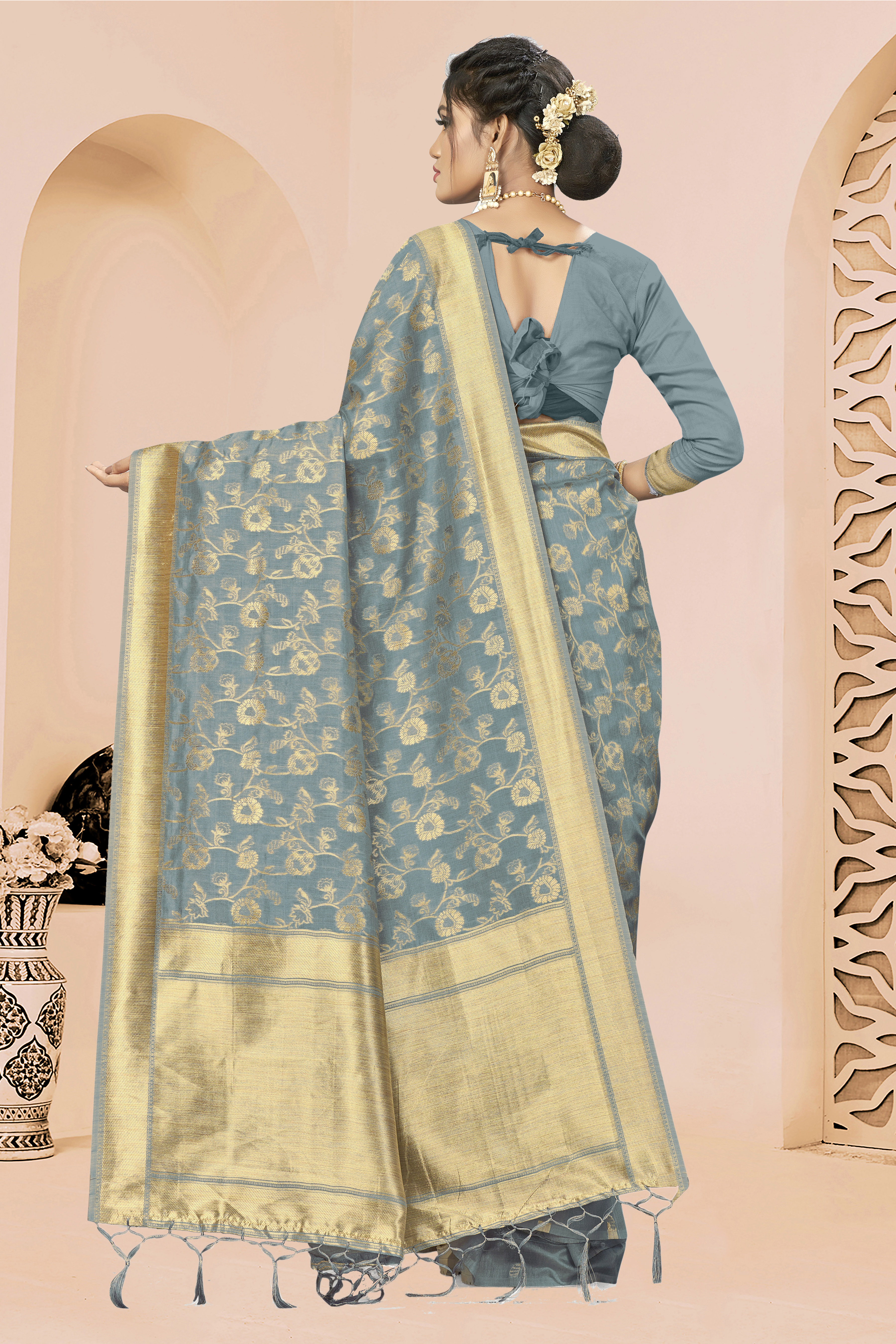 Fashion Dream Womens GREY BANARASI SILK Saree | Soft & Elegant Traditional Wear
