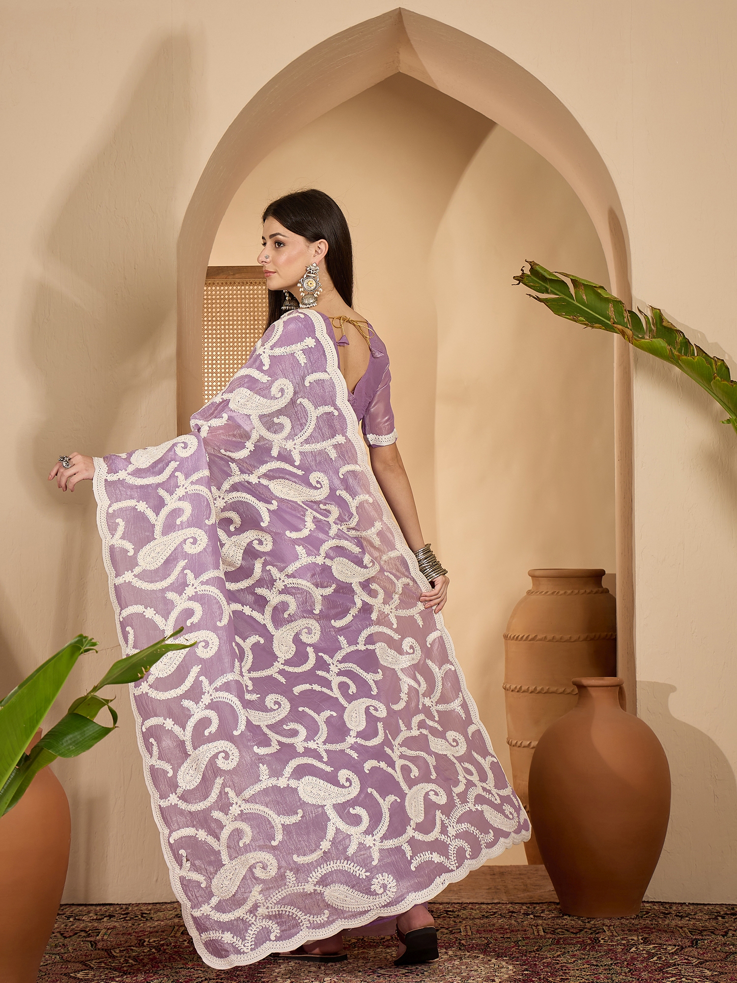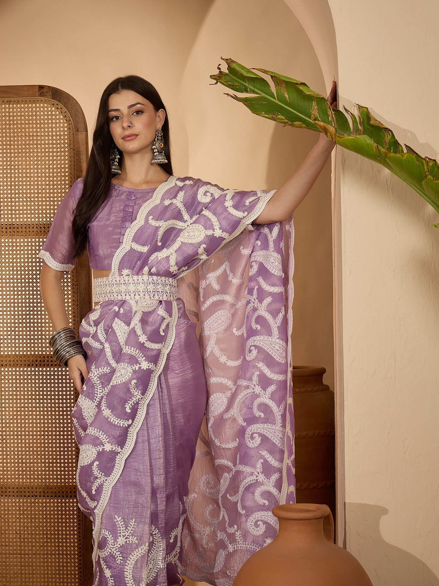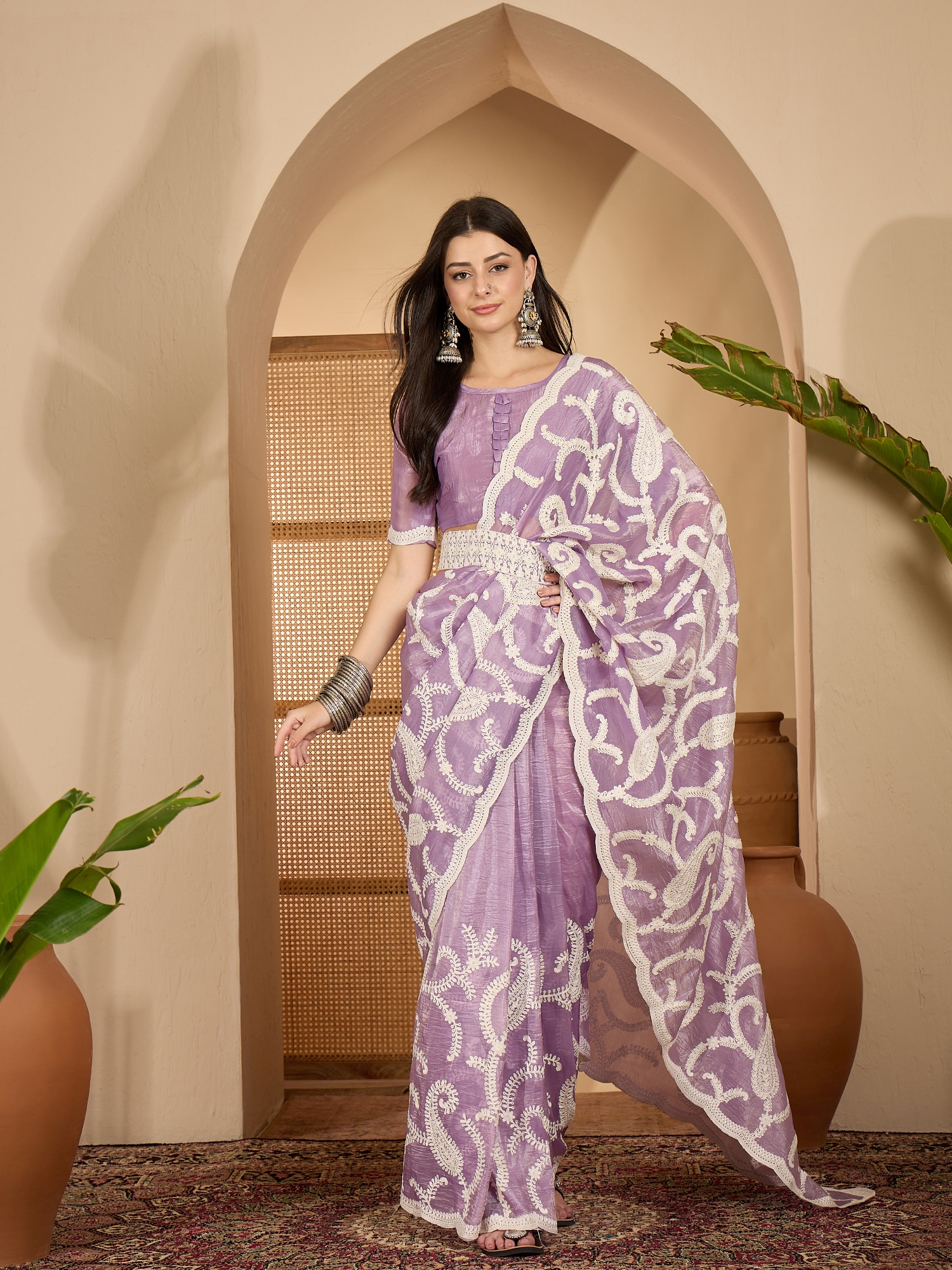 Fashion Dream Womens Lavender Gold Crush Saree | Soft & Elegant Traditional Wear