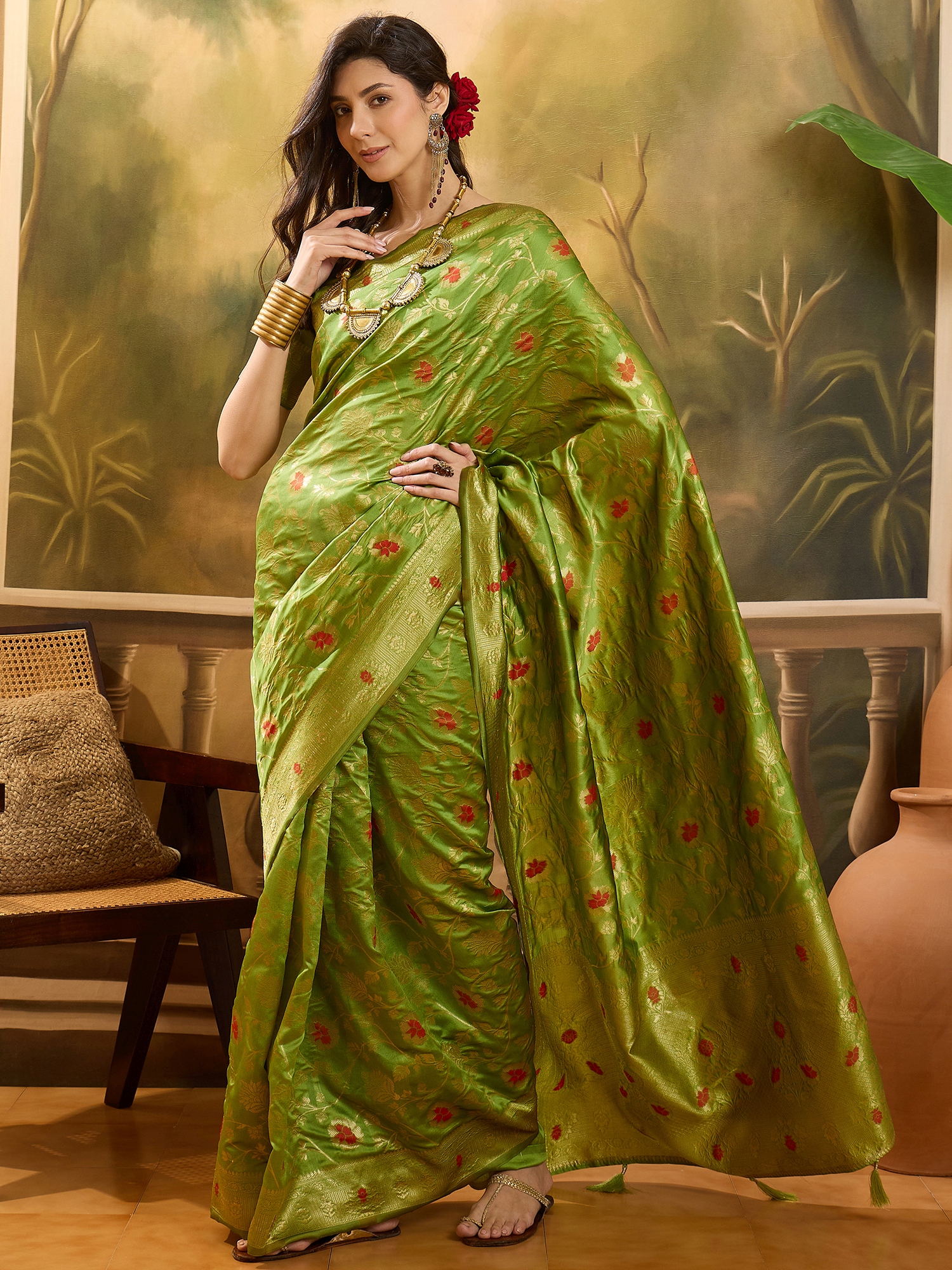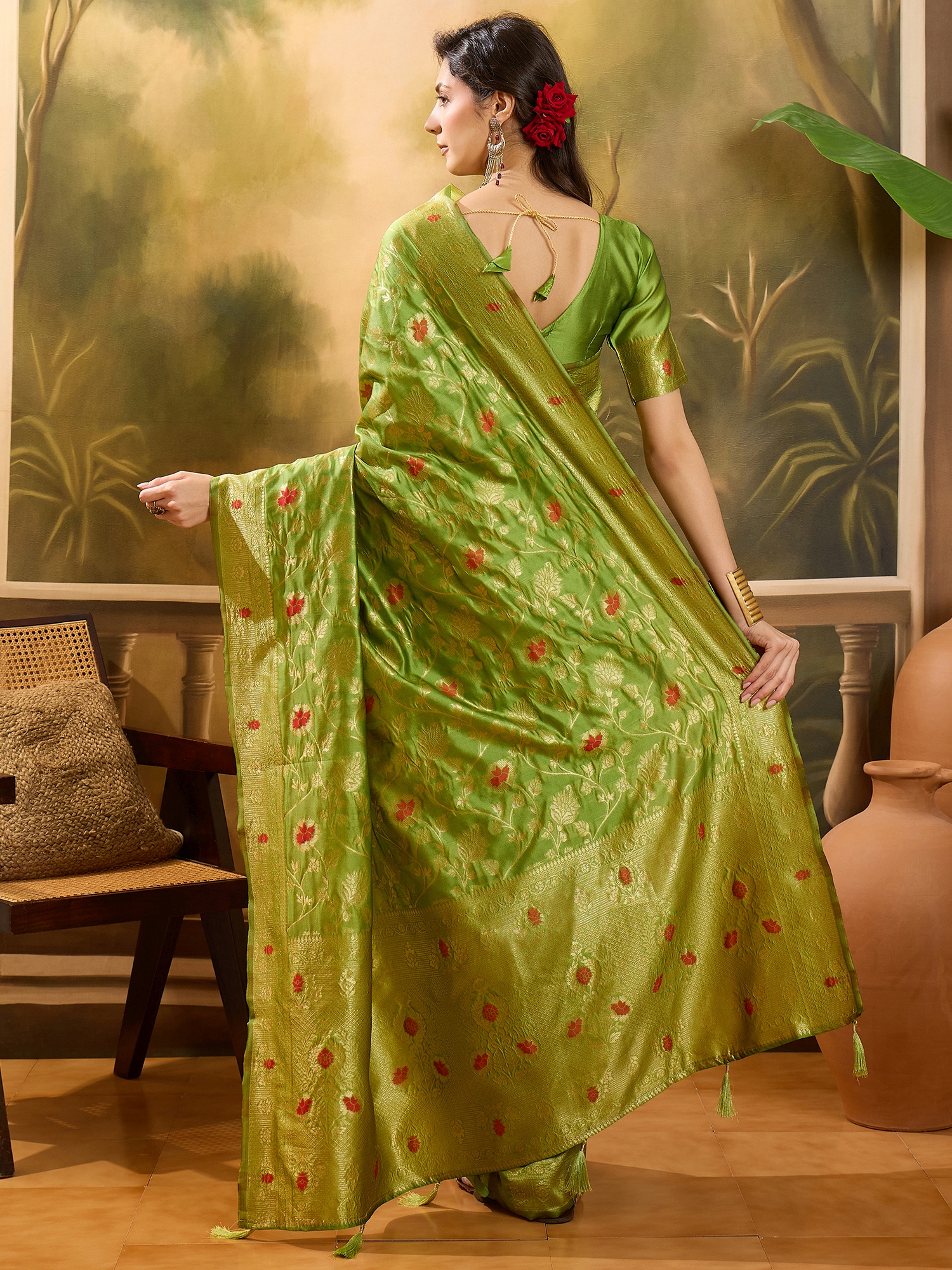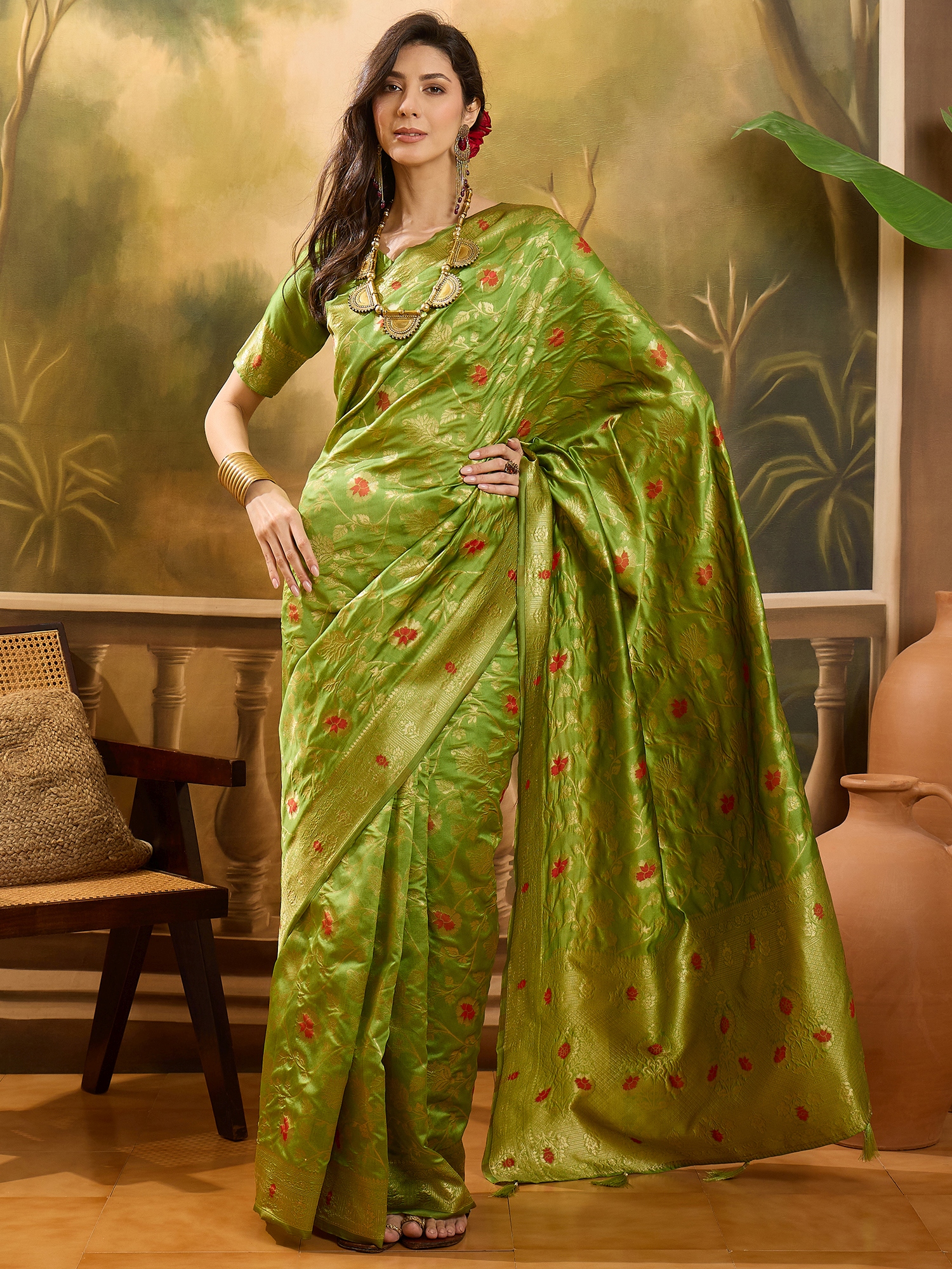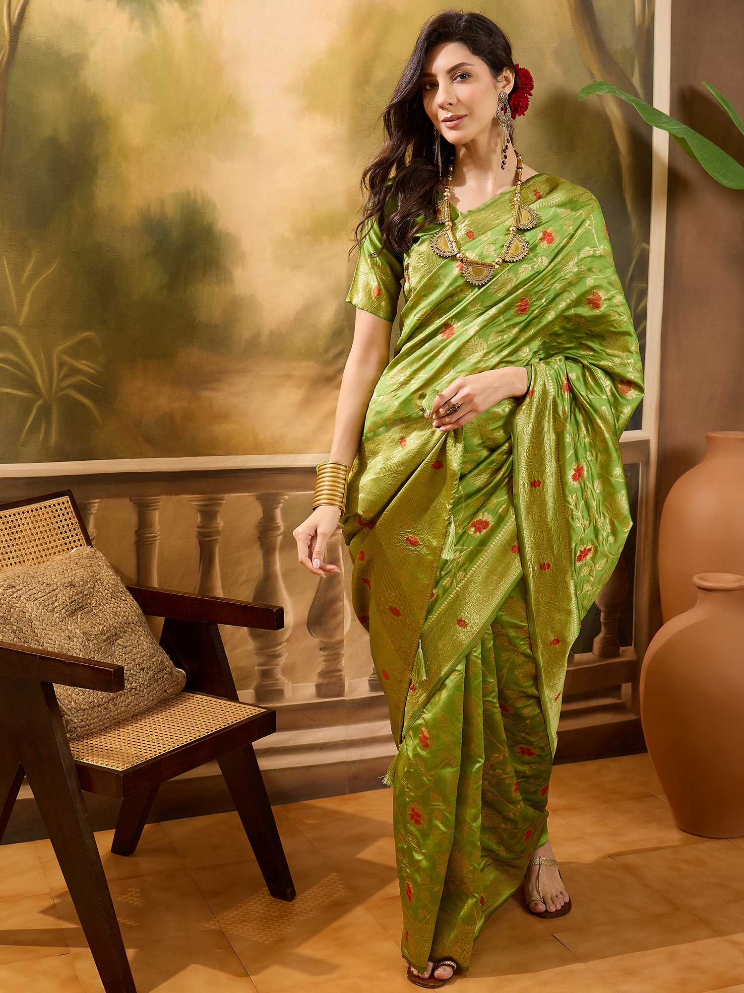 Fashion Dream Womens Lime Green Banarasi Jacquard Saree | Soft & Elegant Traditional Wear