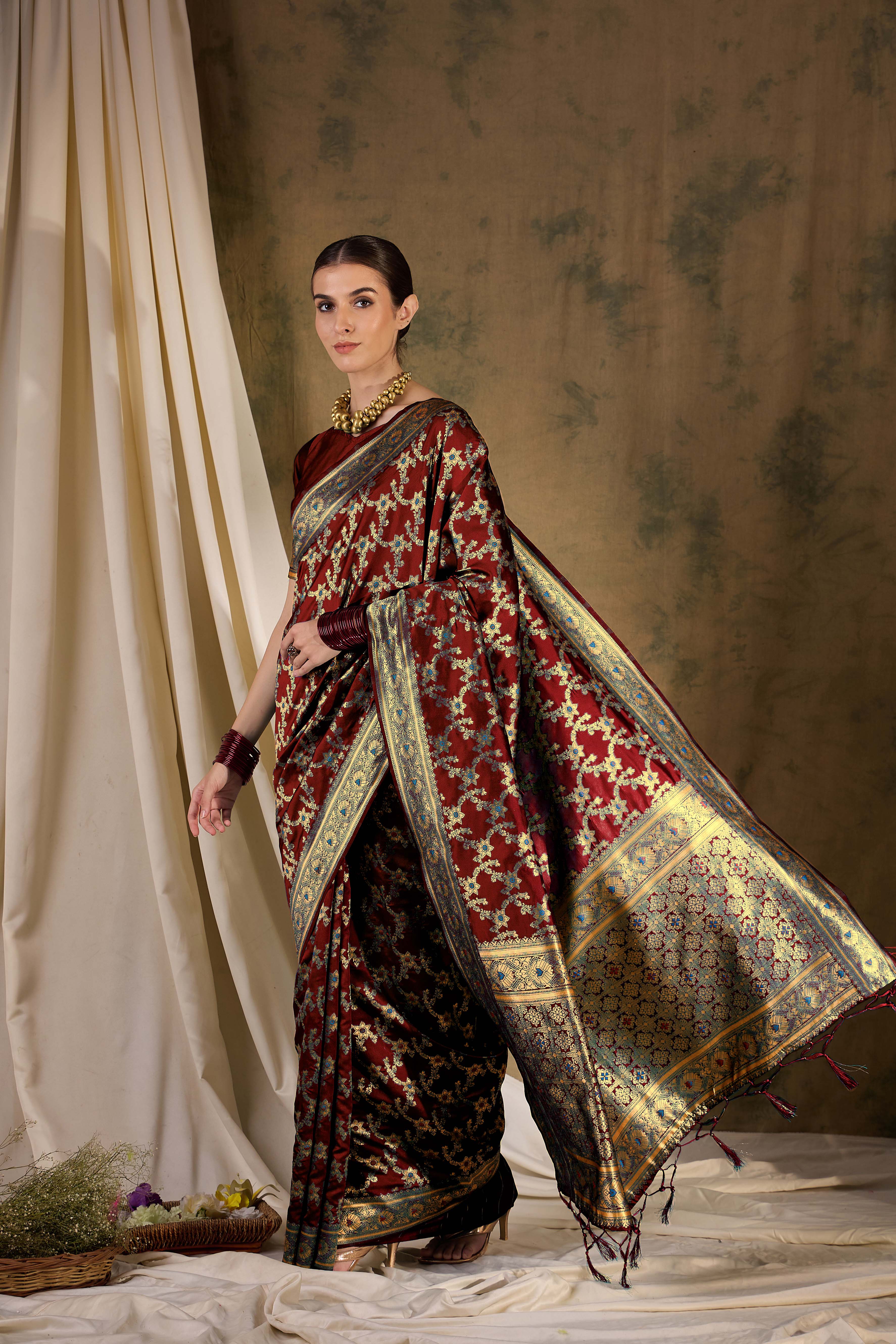 Fashion Dream Womens Maroon Banarasi Silk Saree | Soft & Elegant Traditional Wear