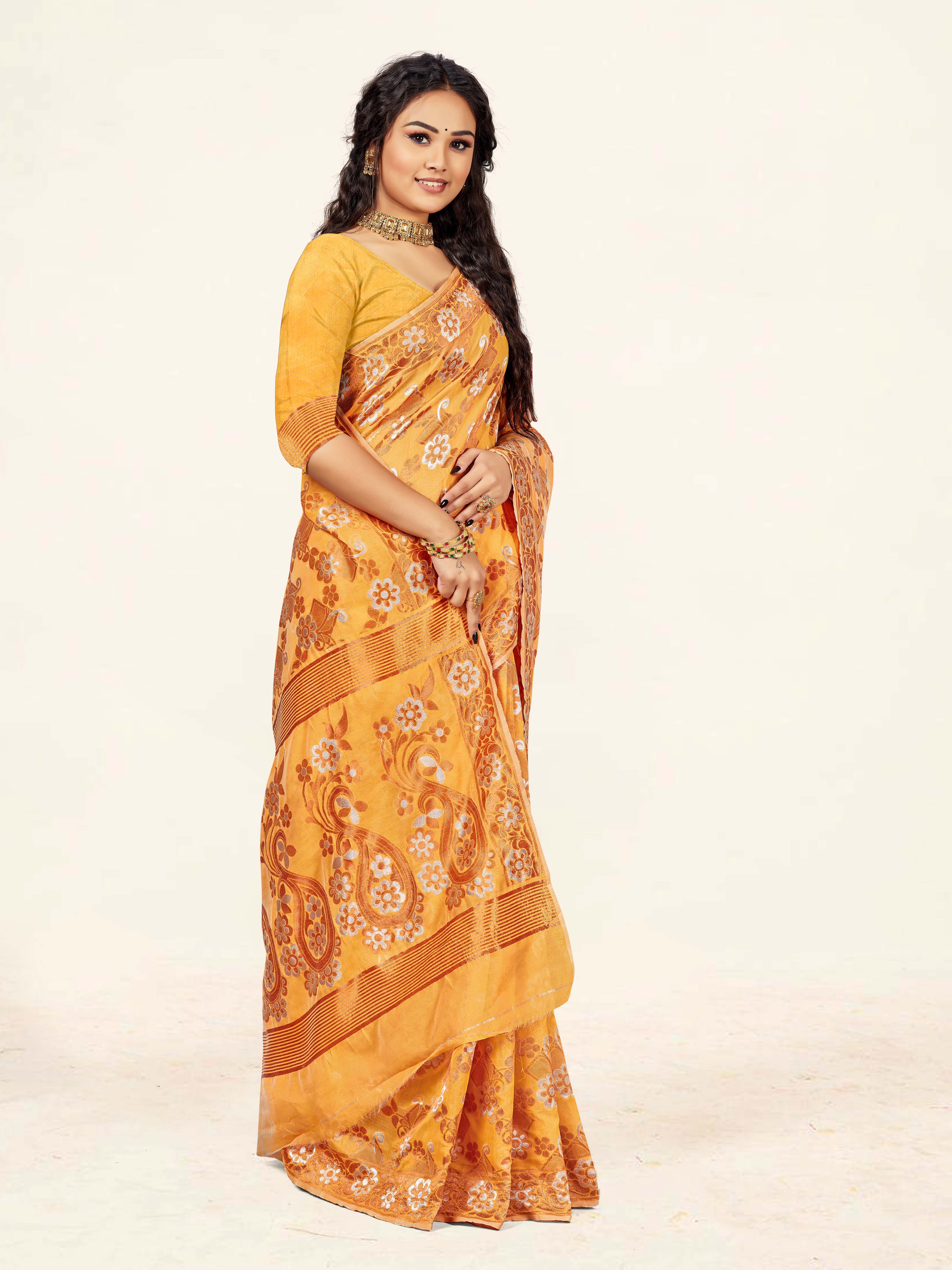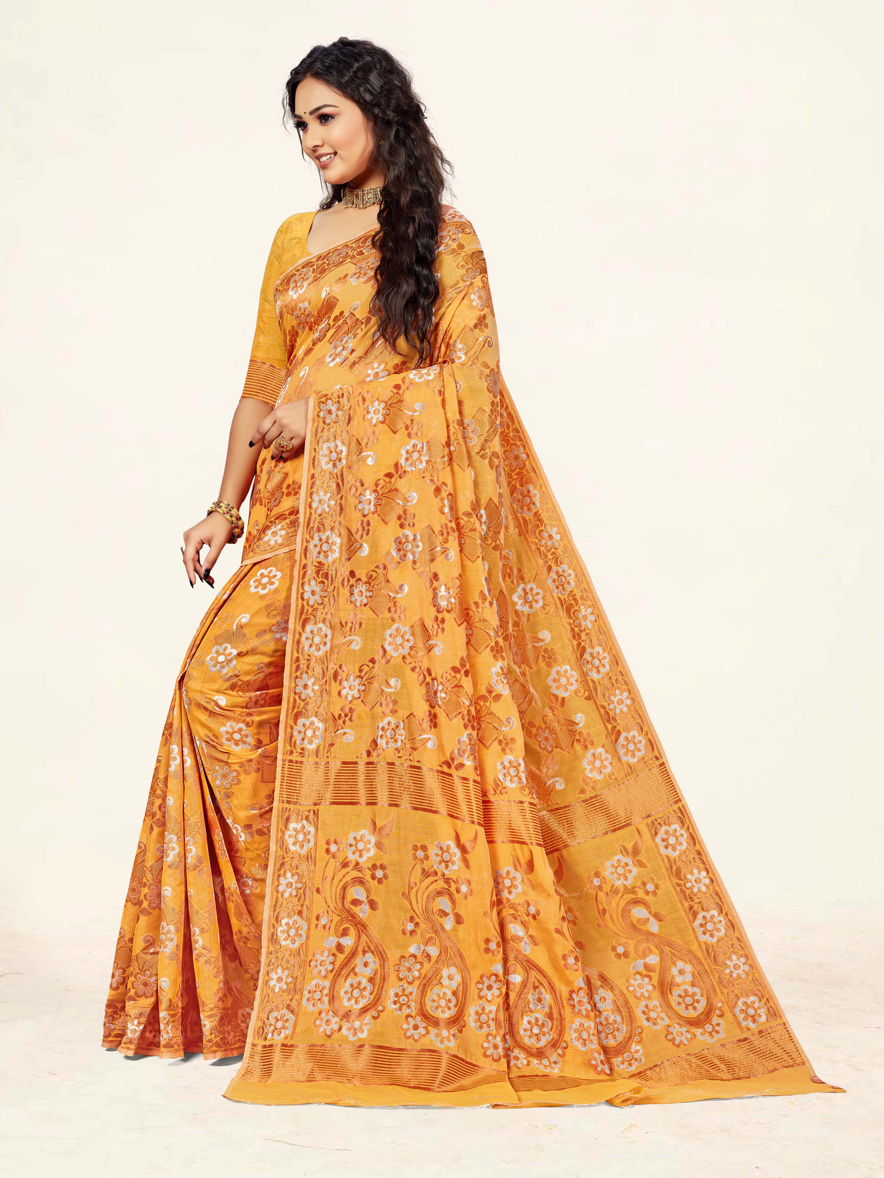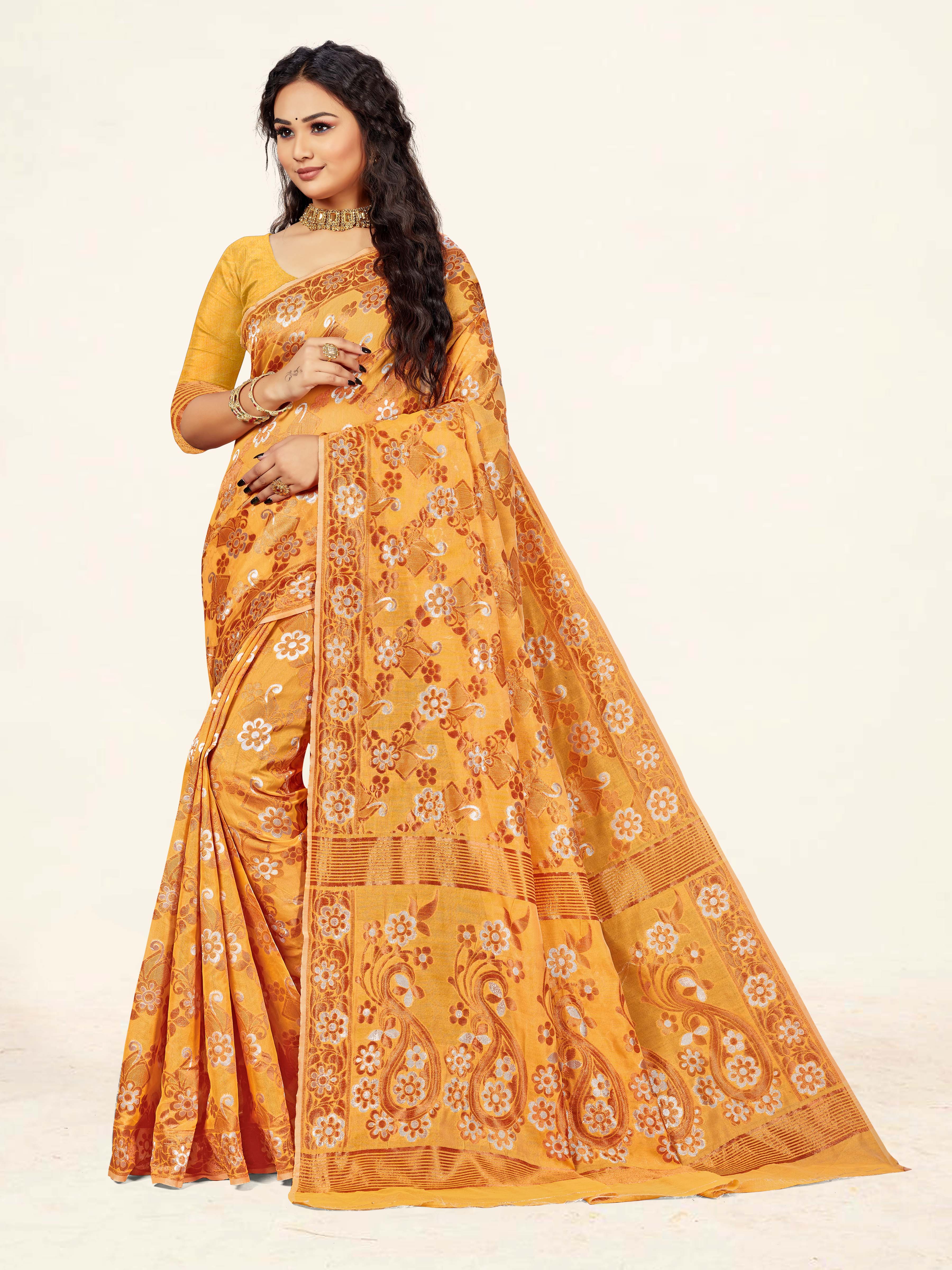 Fashion Dream Womens Mustard Cotton Saree | Soft & Elegant Traditional Wear