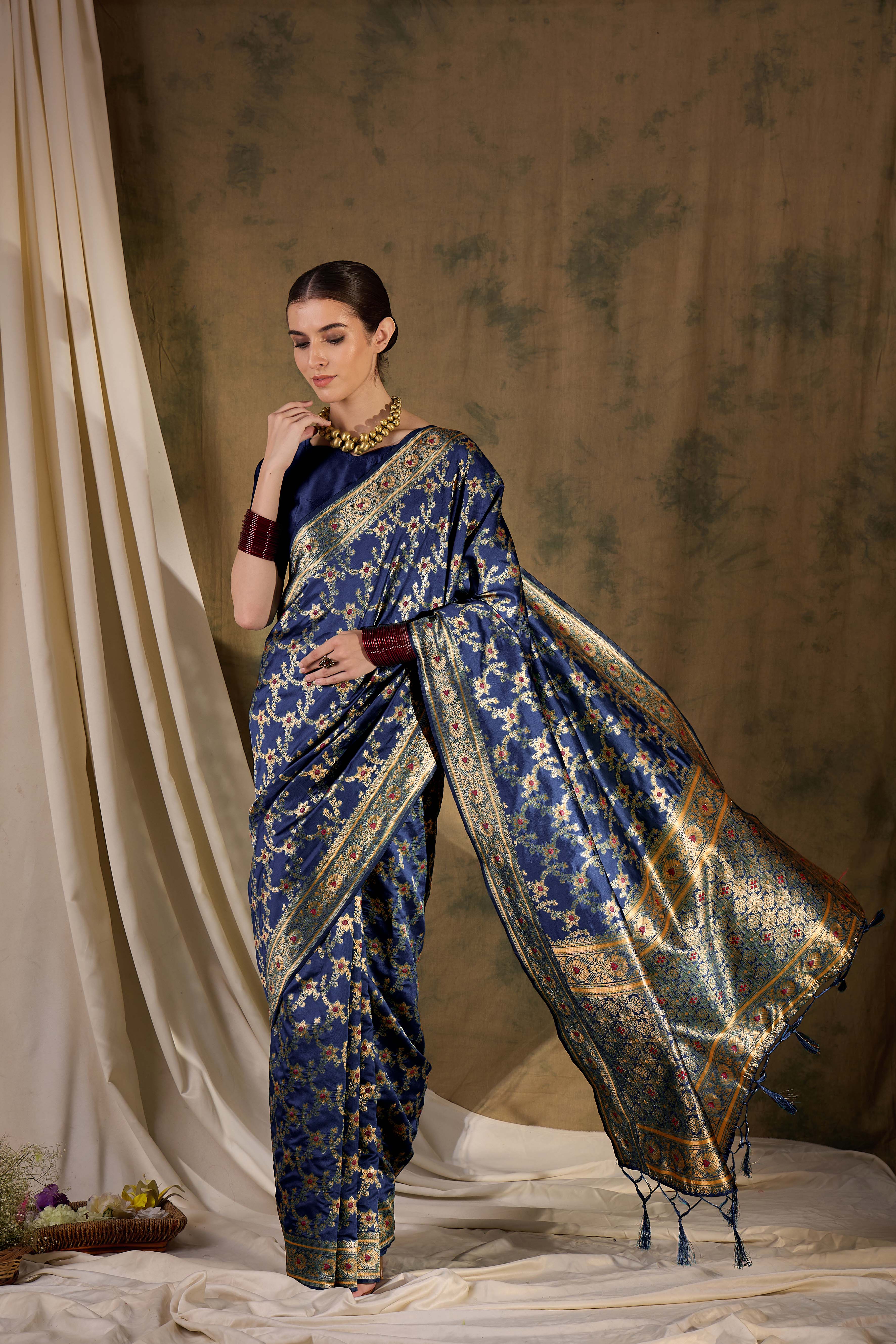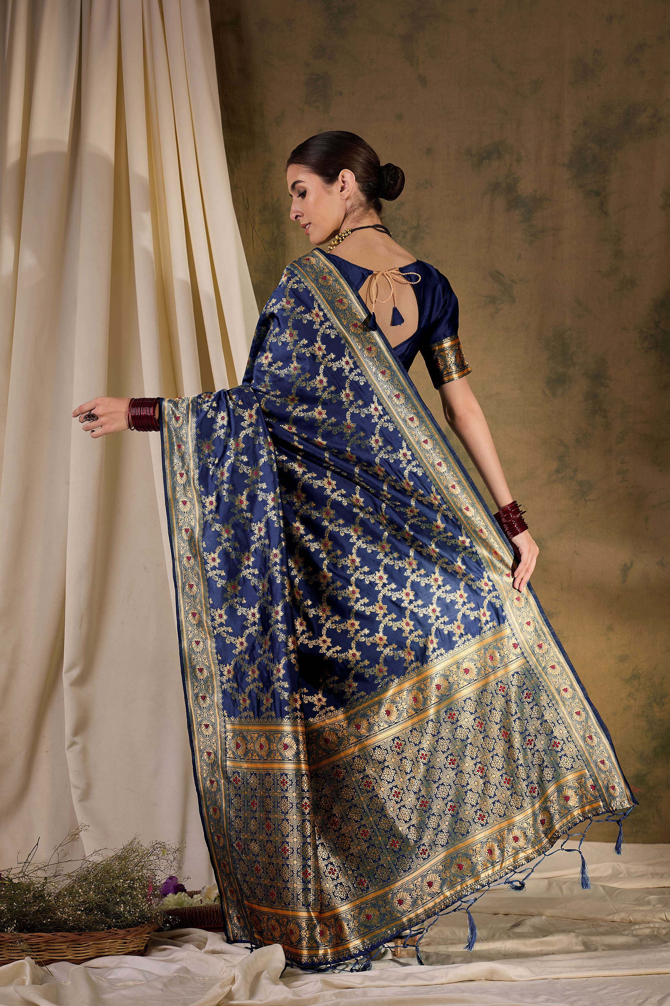 Fashion Dream Womens Navy Blue Banarasi Silk Saree | Soft & Elegant Traditional Wear