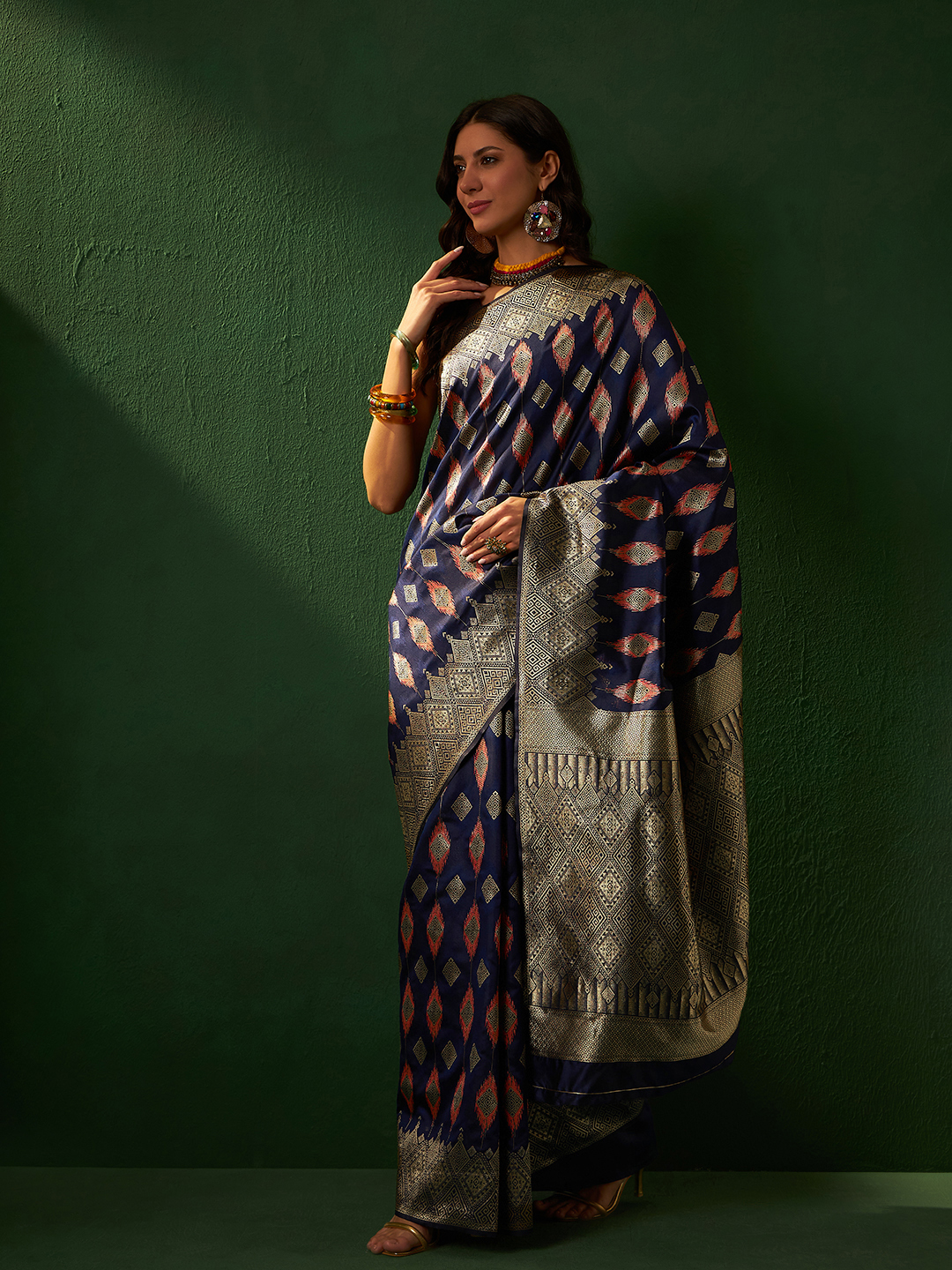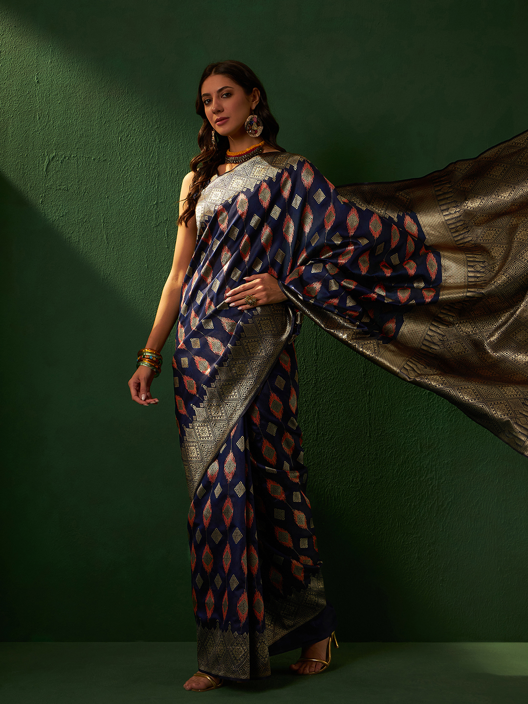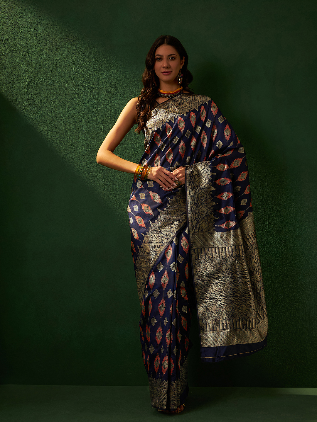Fashion Dream Womens Navy Blue BANARASI SILK Saree | Soft & Elegant Traditional Wear