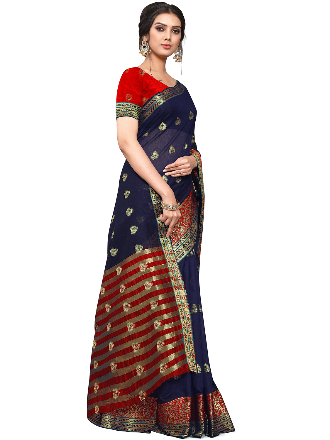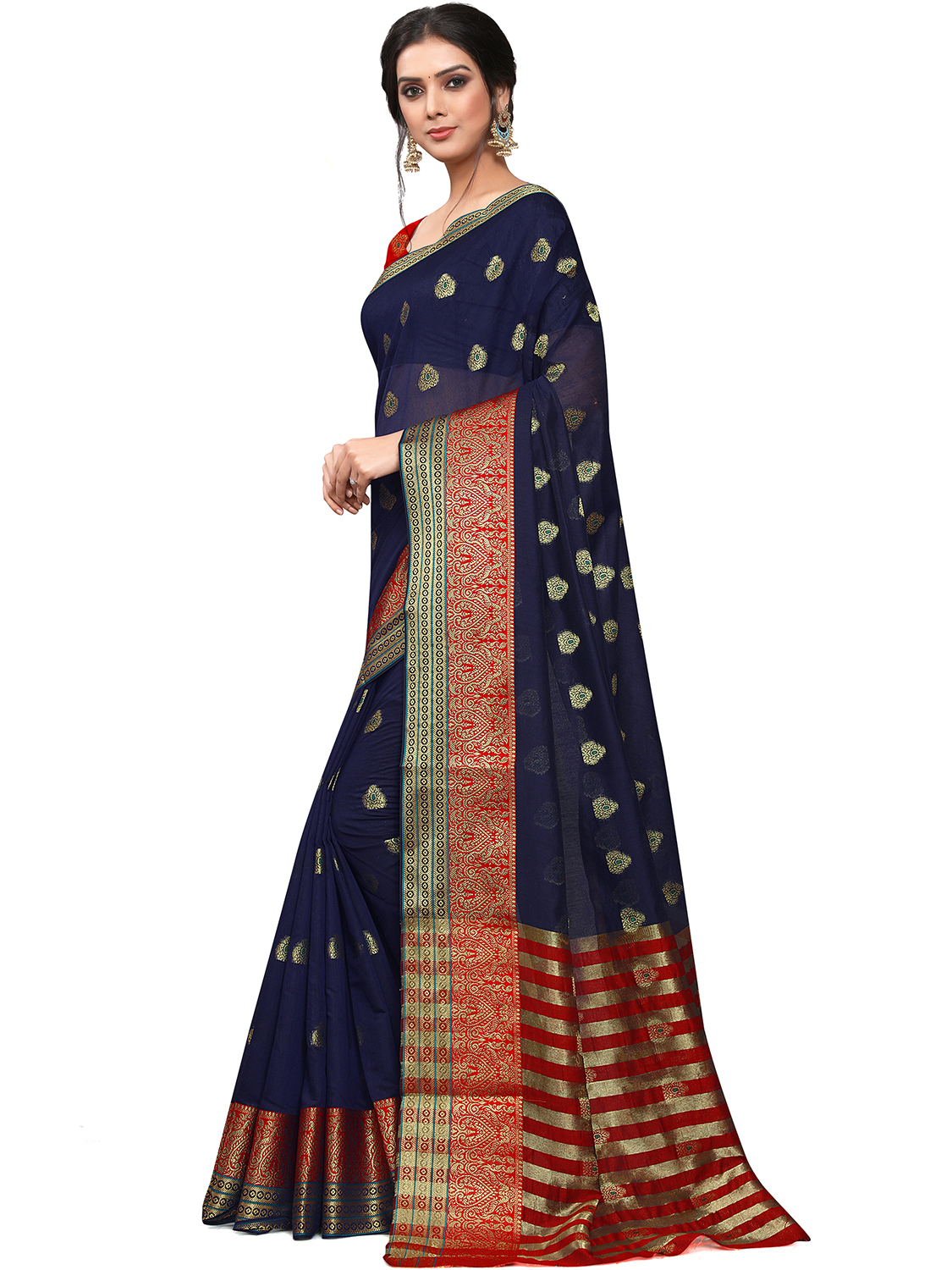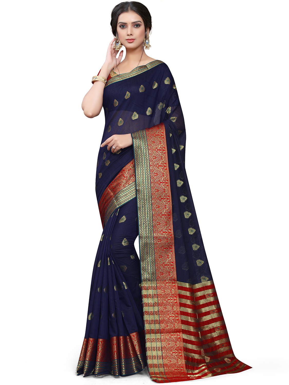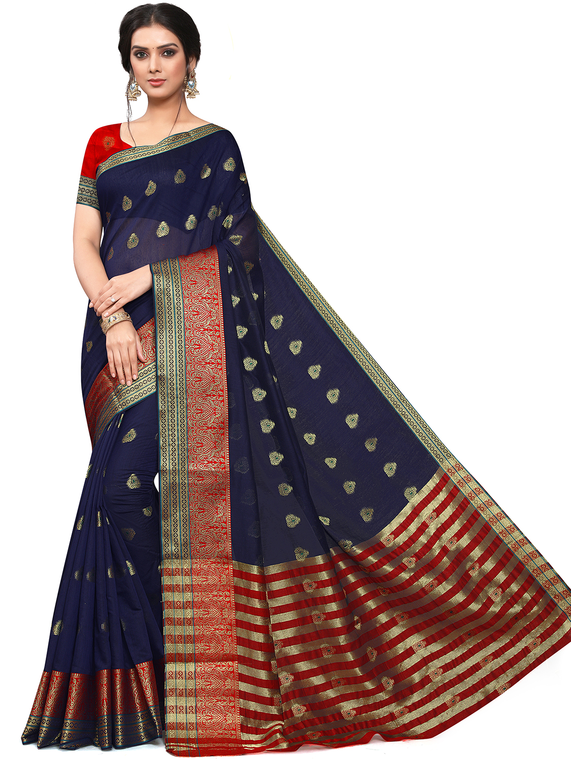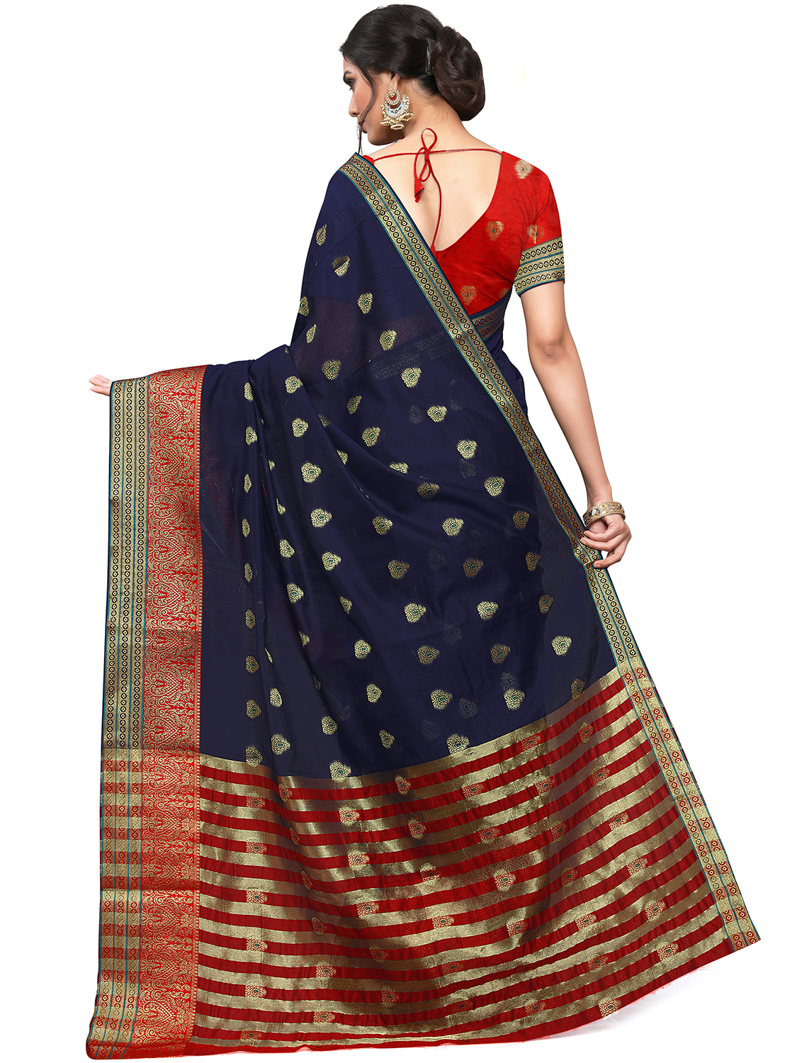 Fashion Dream Womens Navy Blue Cotton Blend Saree | Soft & Elegant Traditional Wear