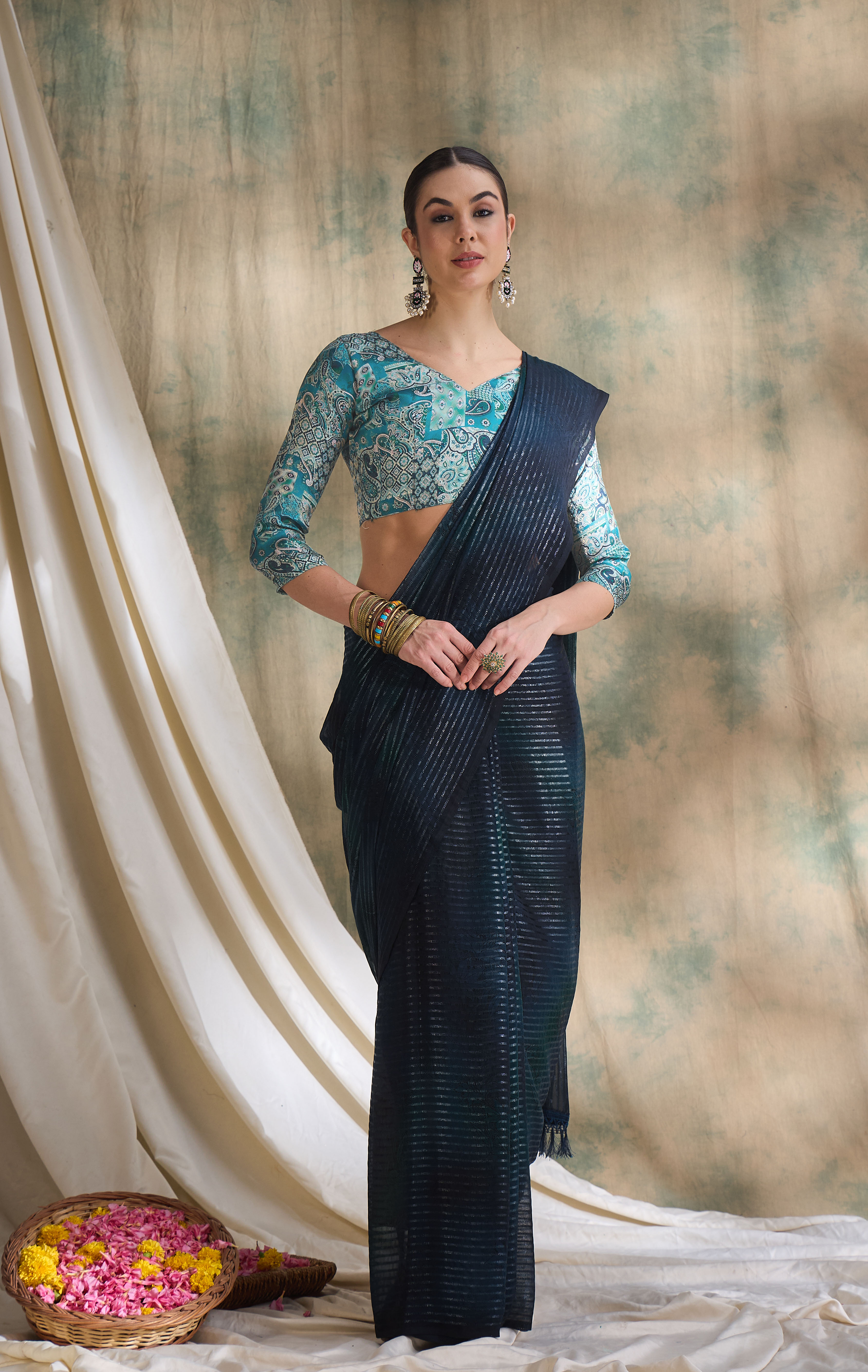 Fashion Dream Womens Navy Blue Sparkle Lining Saree | Soft & Elegant Traditional Wear