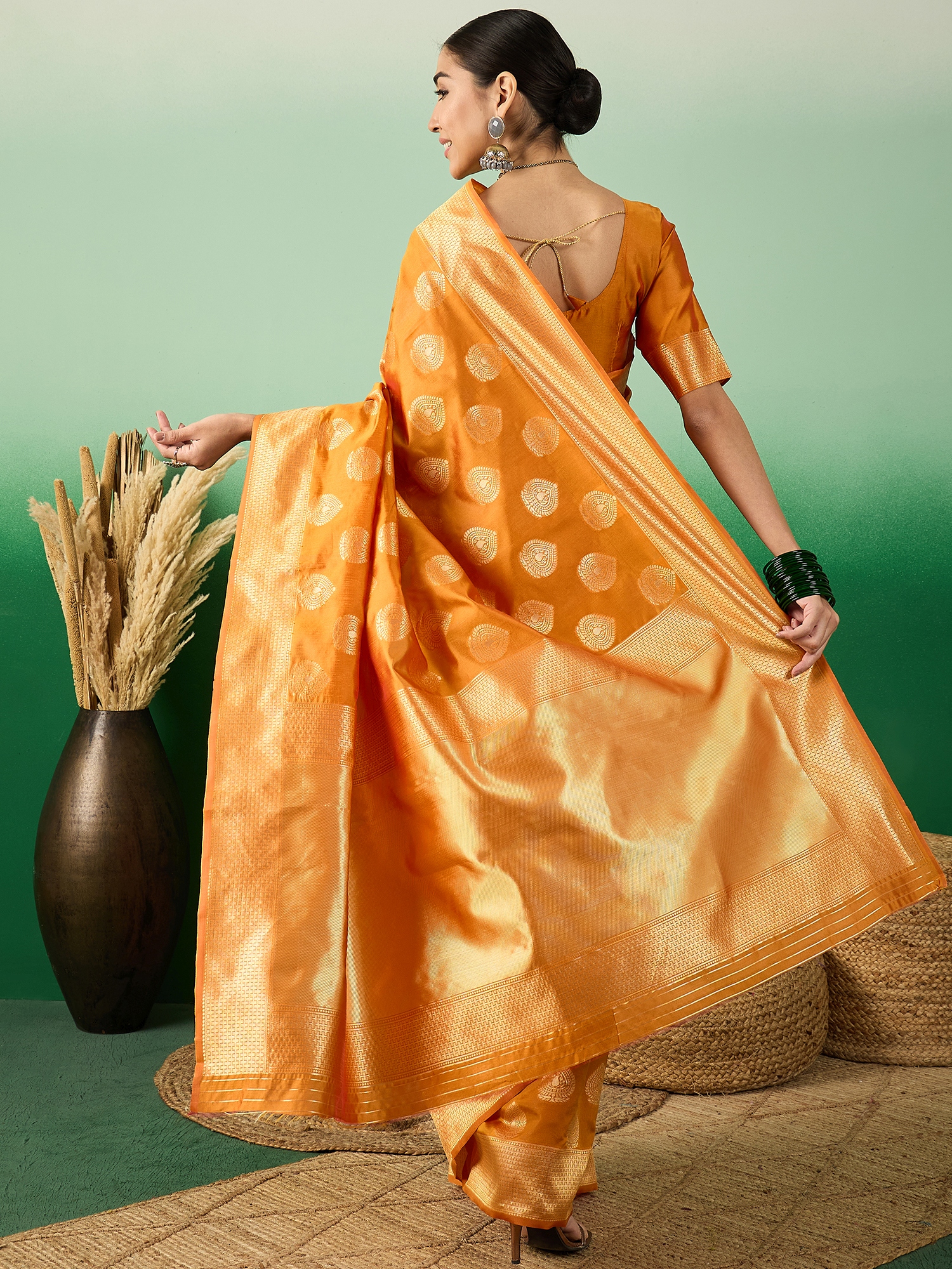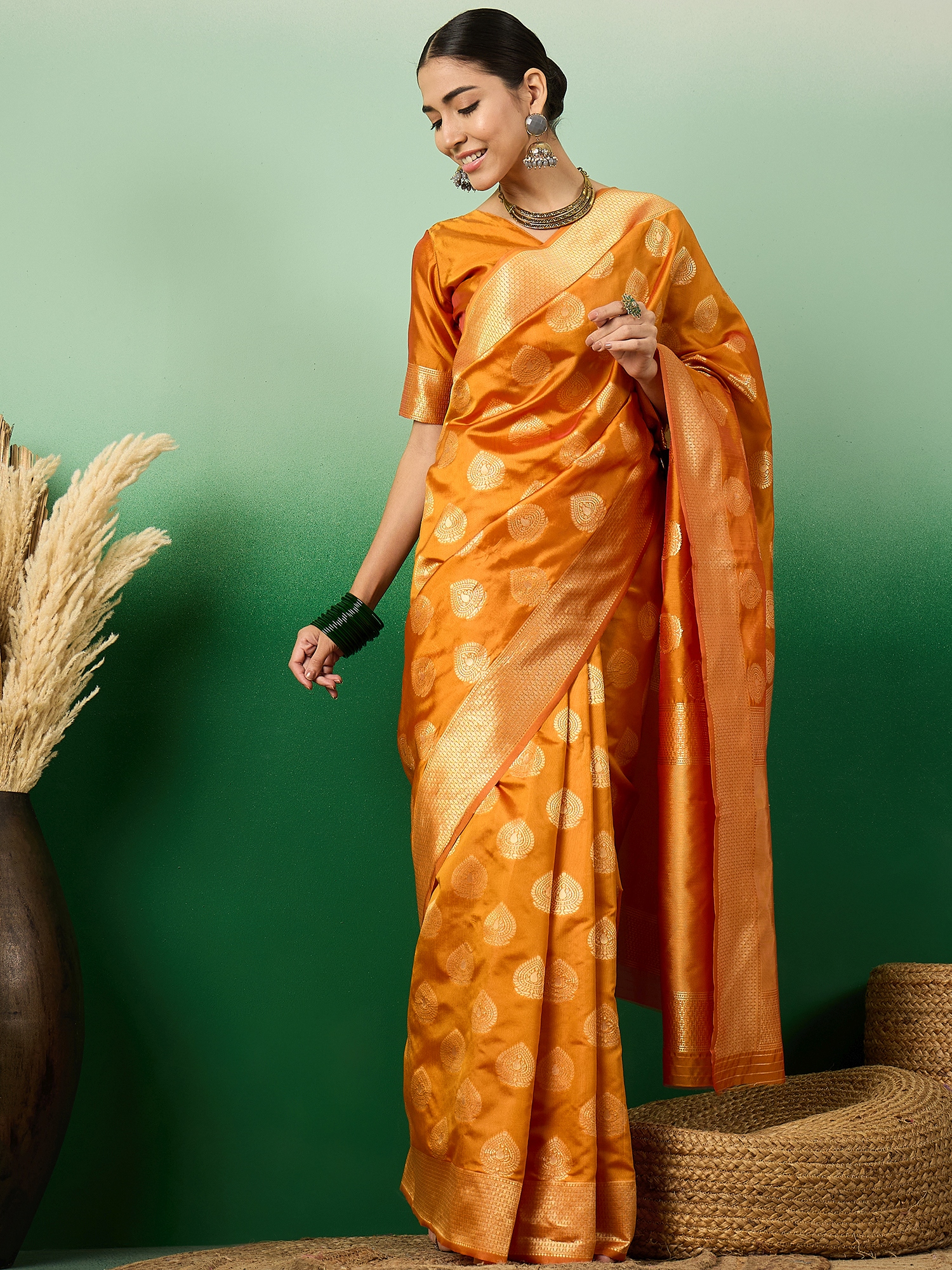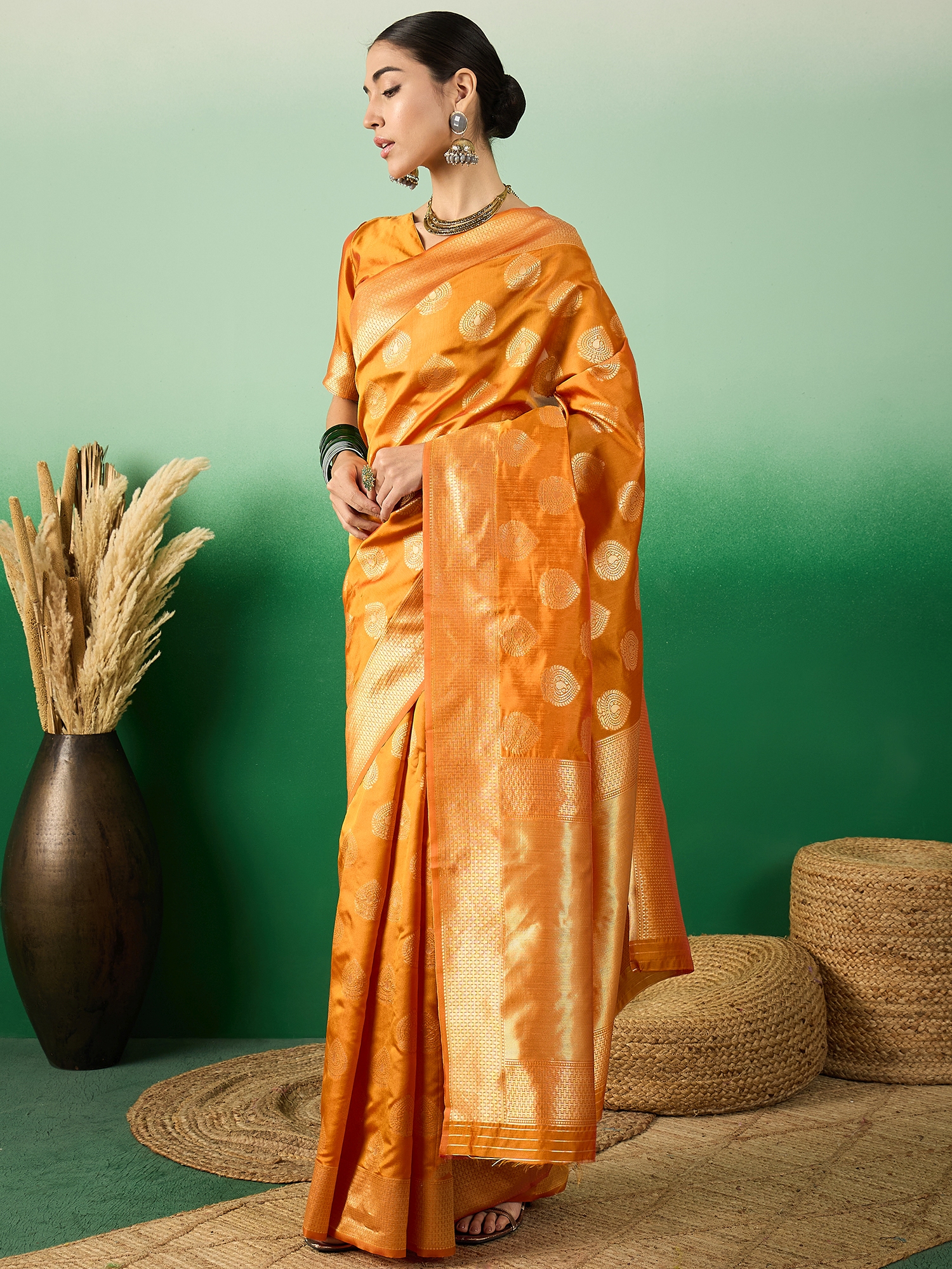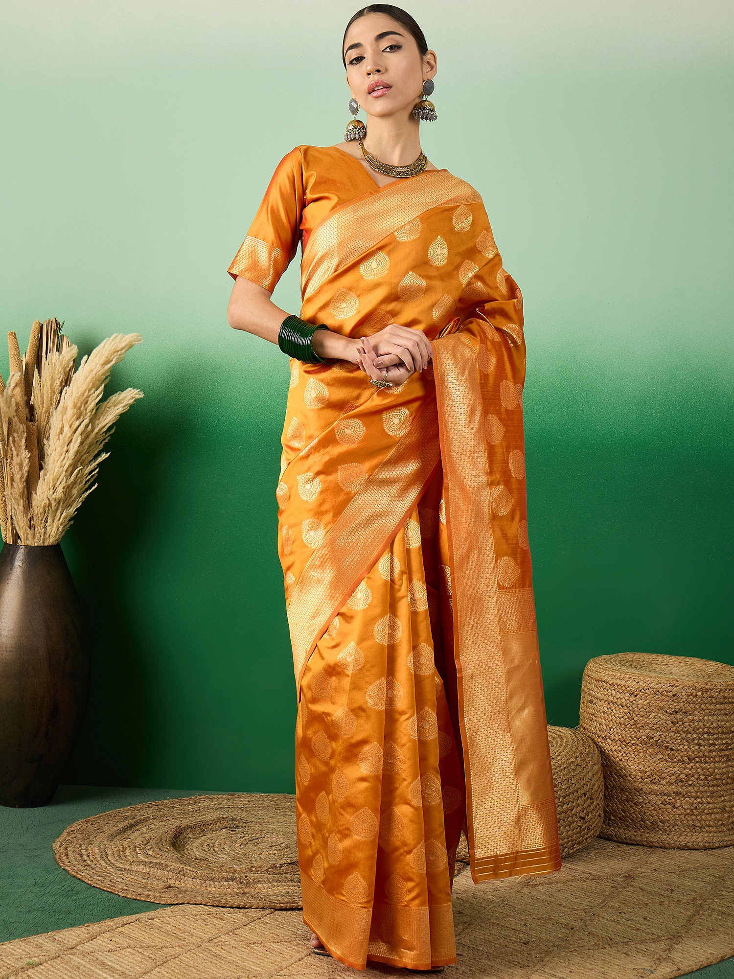 Fashion Dream Womens Orange Banarasi Silk Saree | Soft & Elegant Traditional Wear