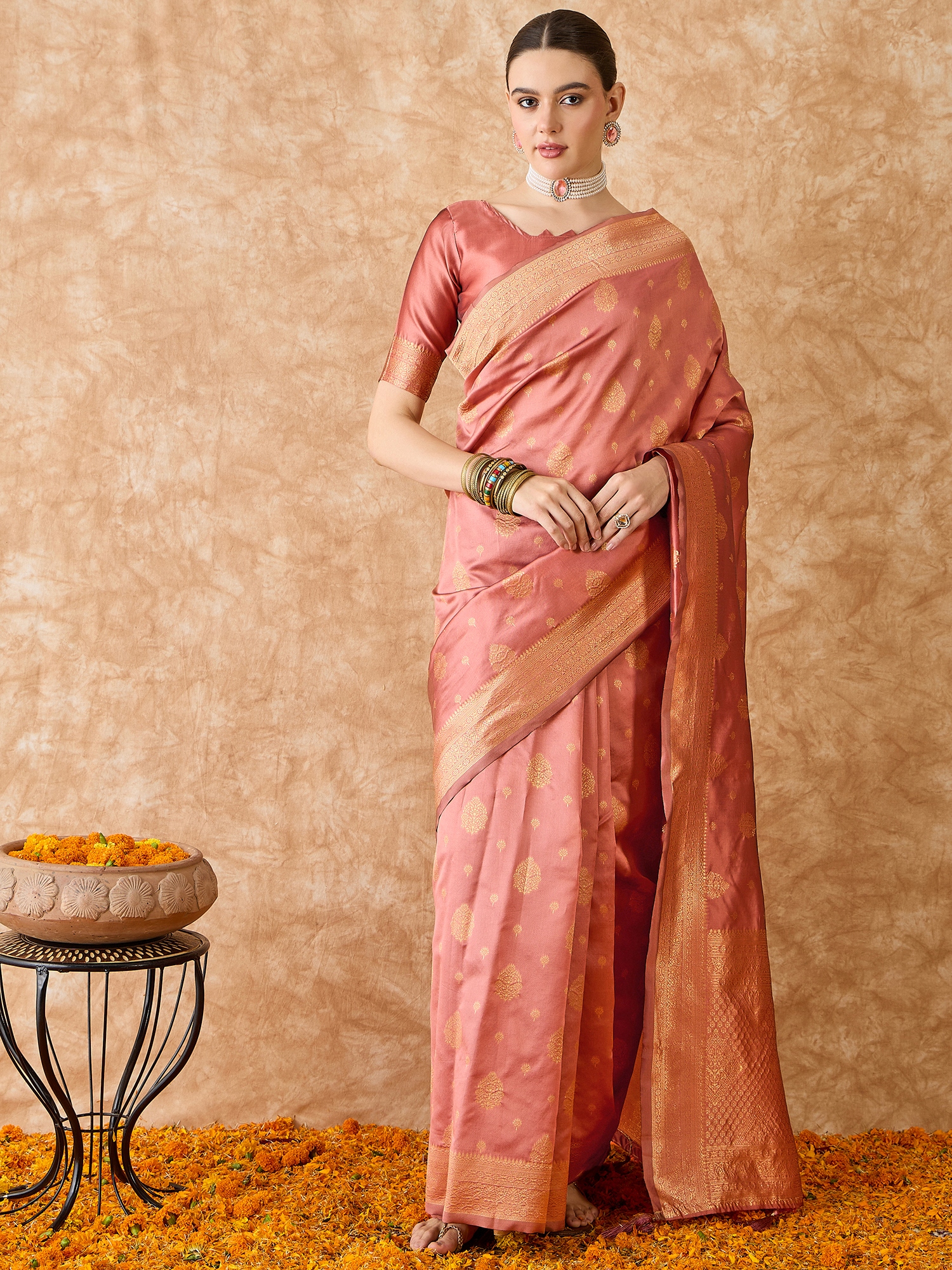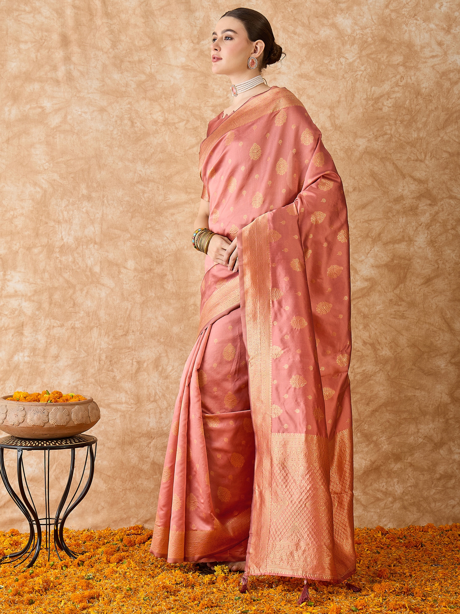 Fashion Dream Womens Peach Banarasi Silk Saree | Soft & Elegant Traditional Wear