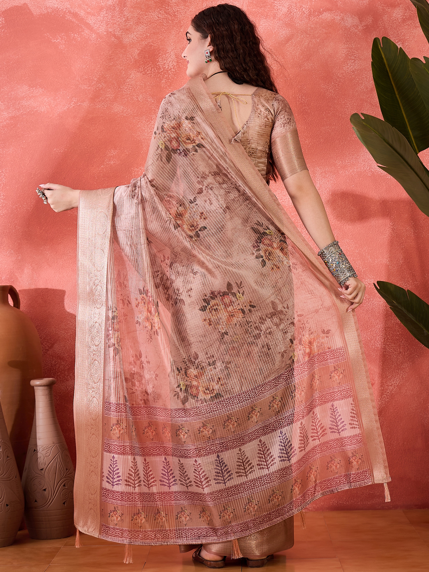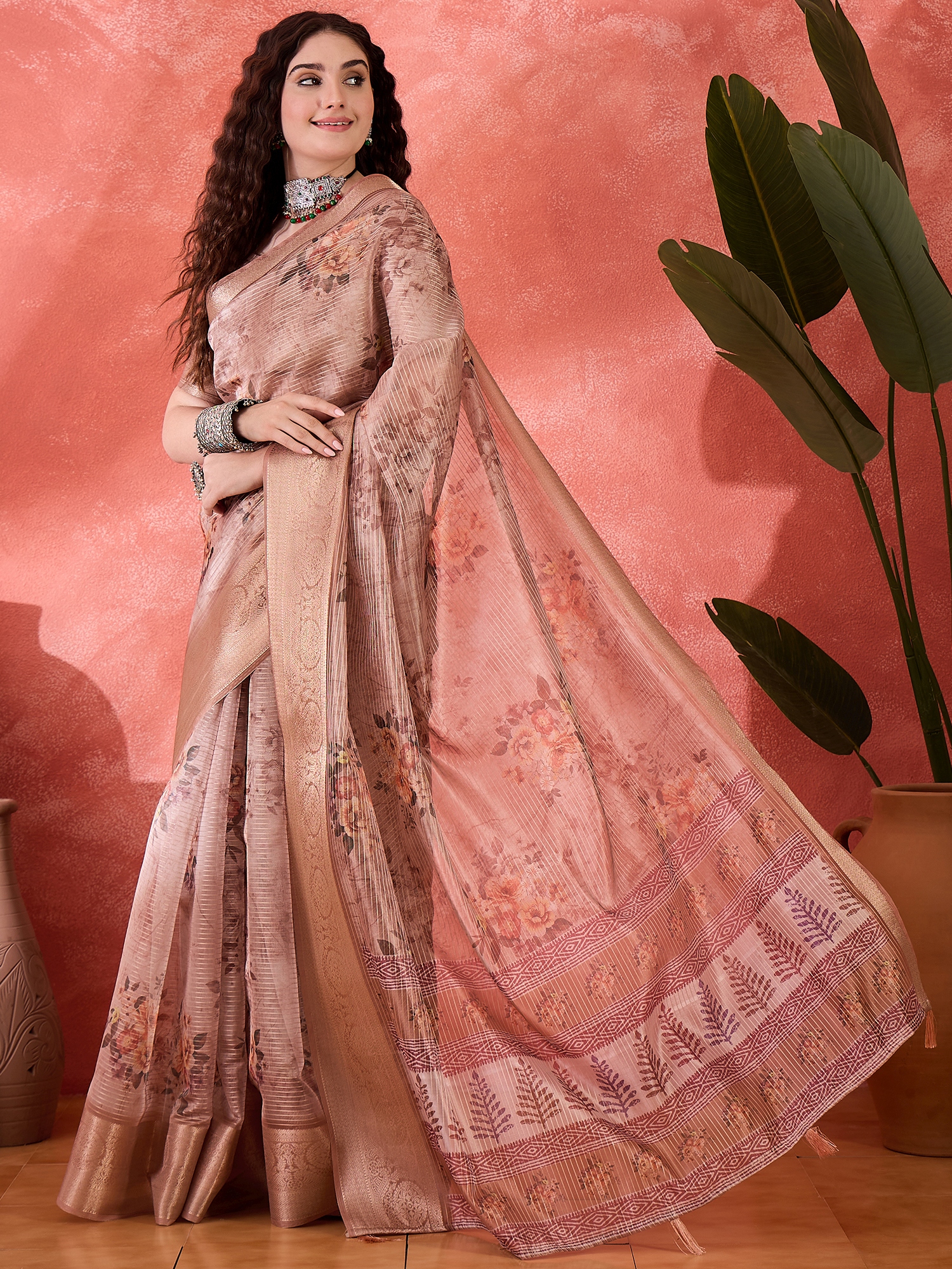 Fashion Dream Womens Peach Tusser Silk Saree | Soft & Elegant Traditional Wear