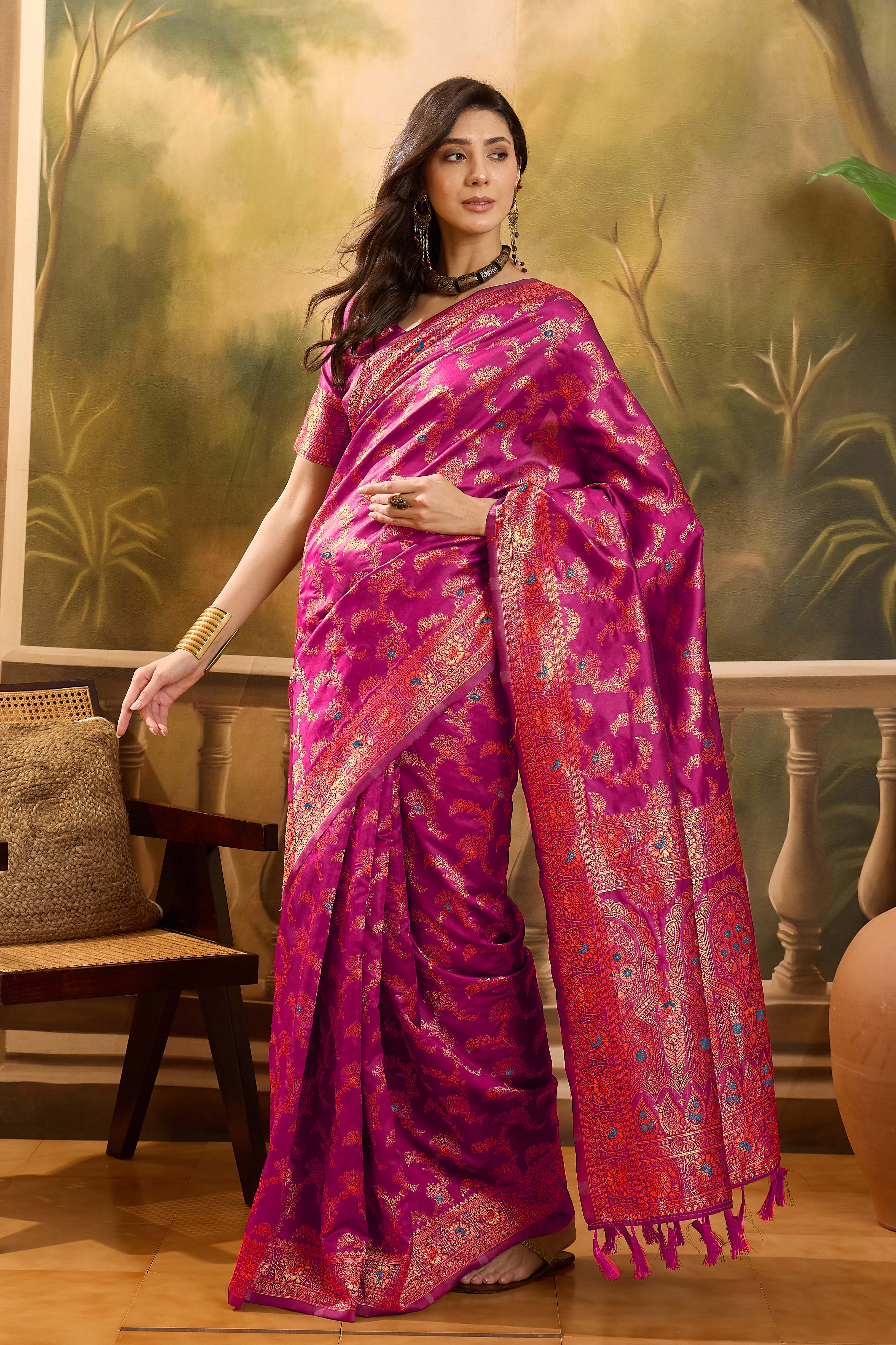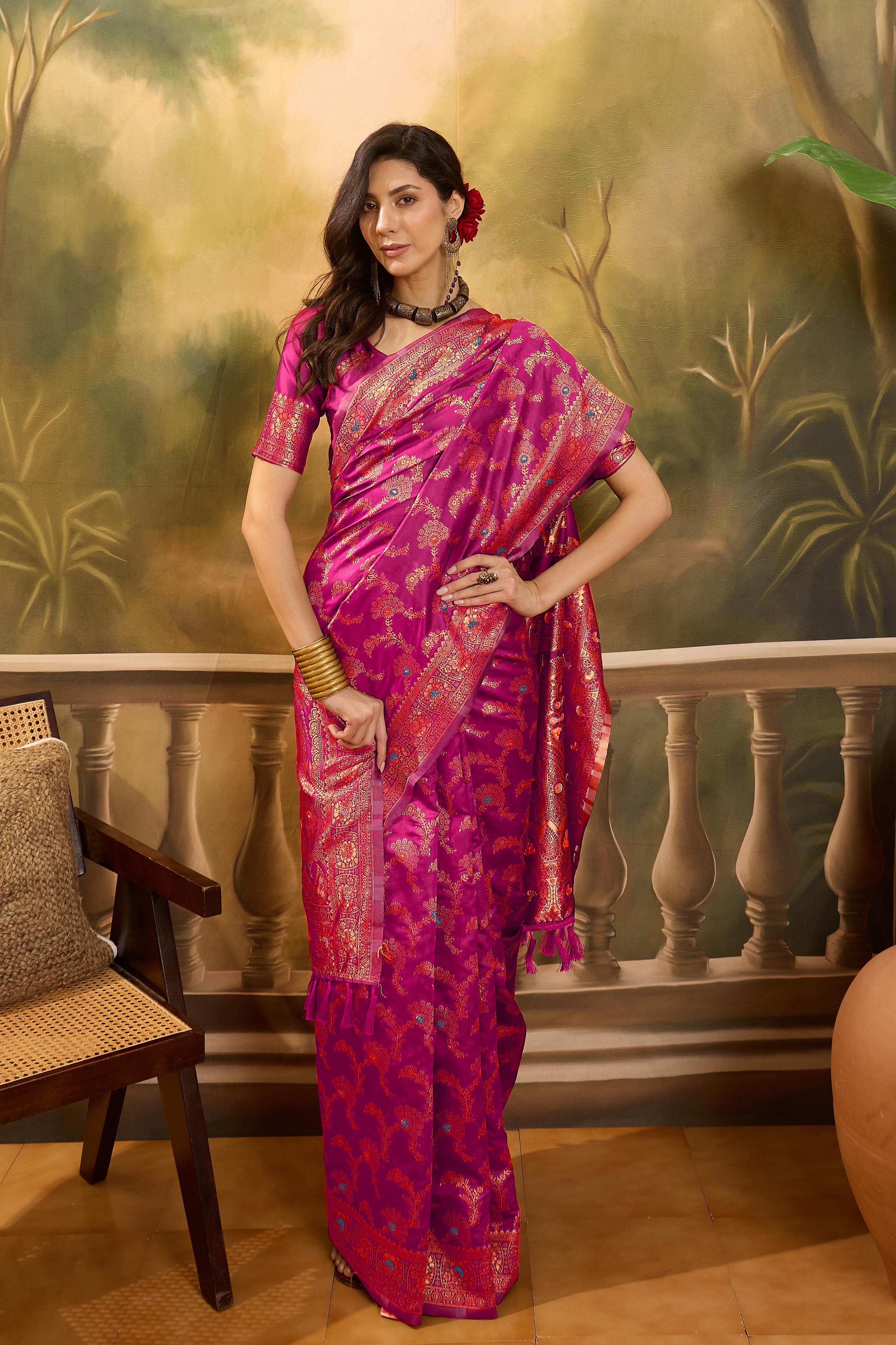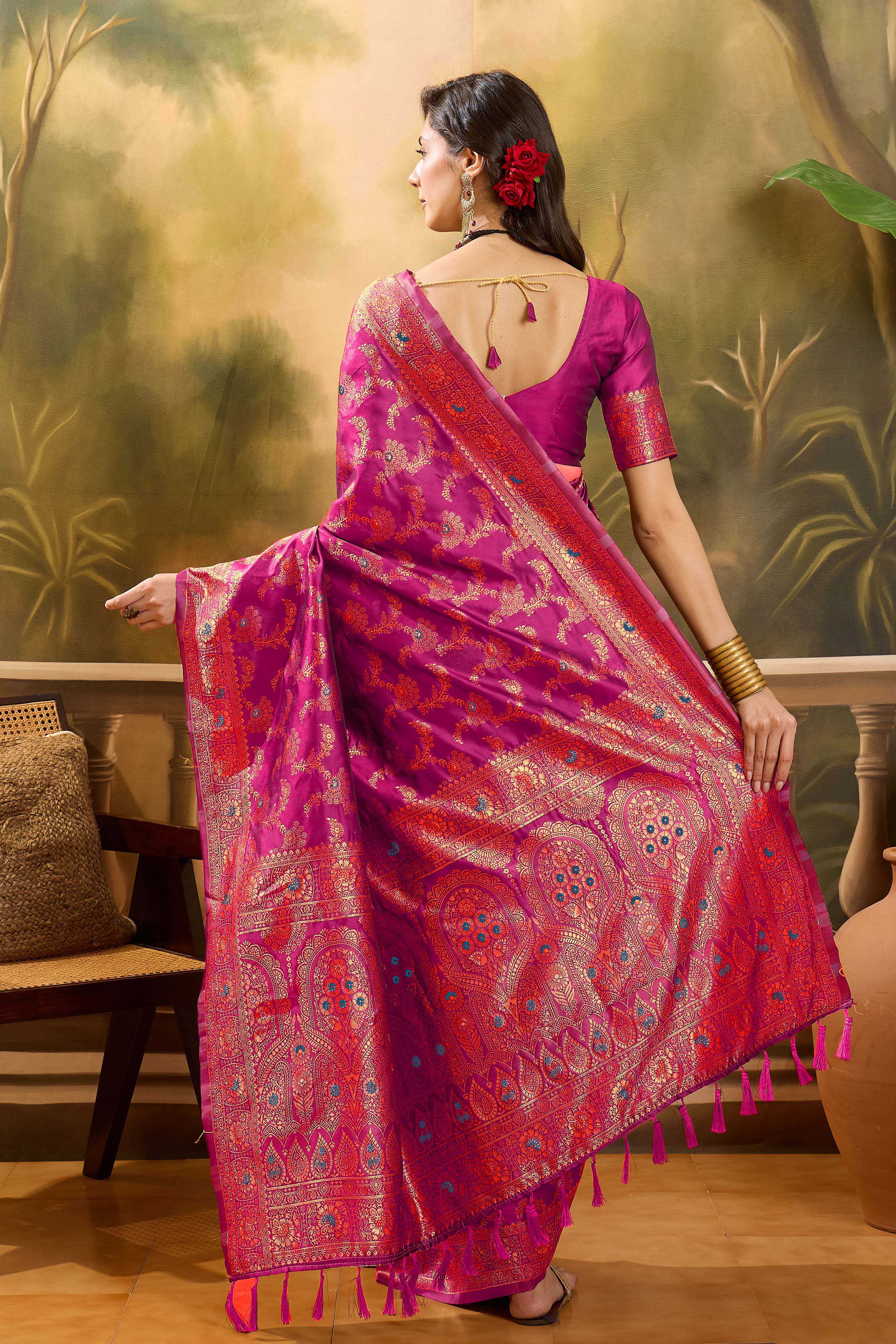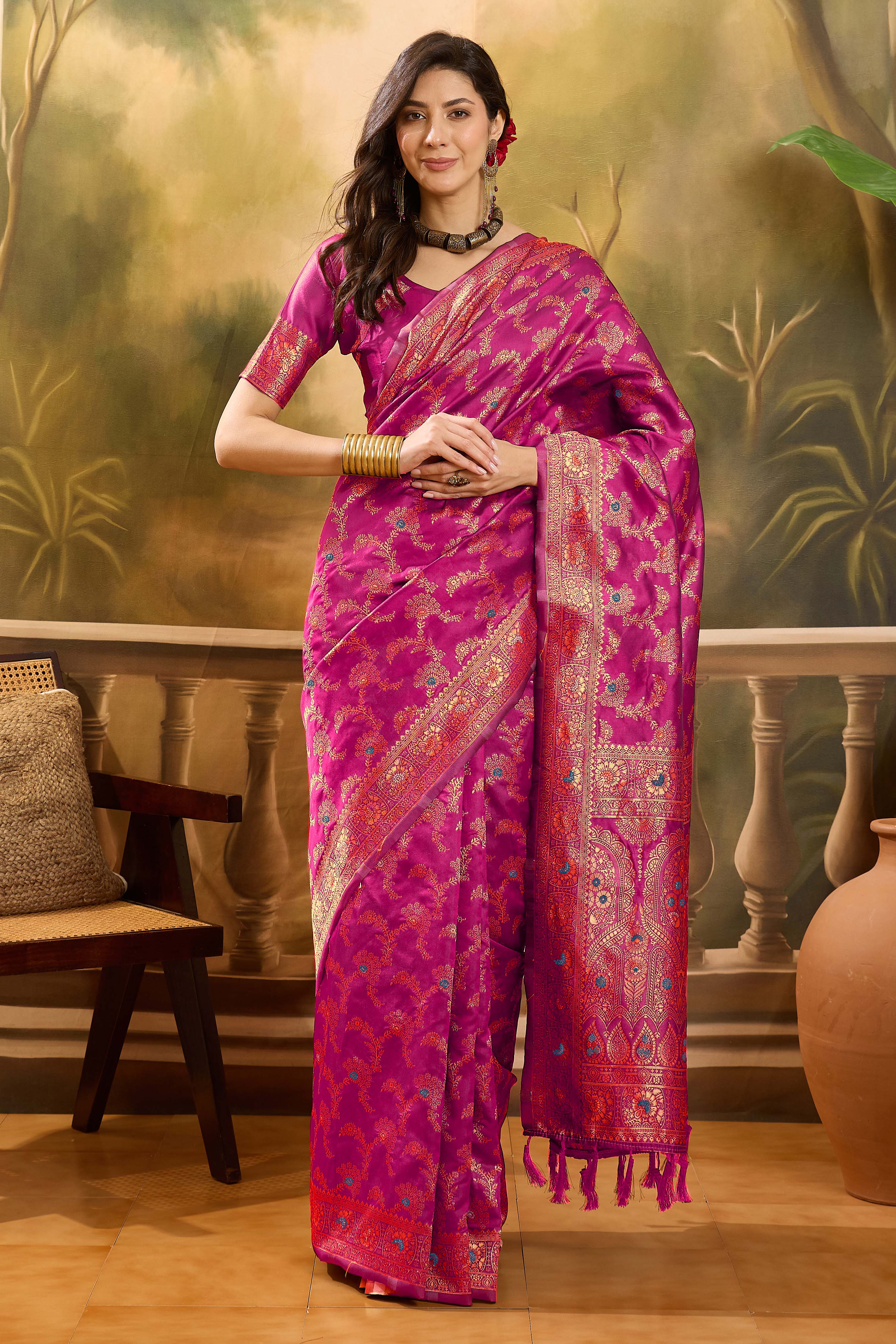 Fashion Dream Womens Pink Banarasi Jacquard Saree | Soft & Elegant Traditional Wear