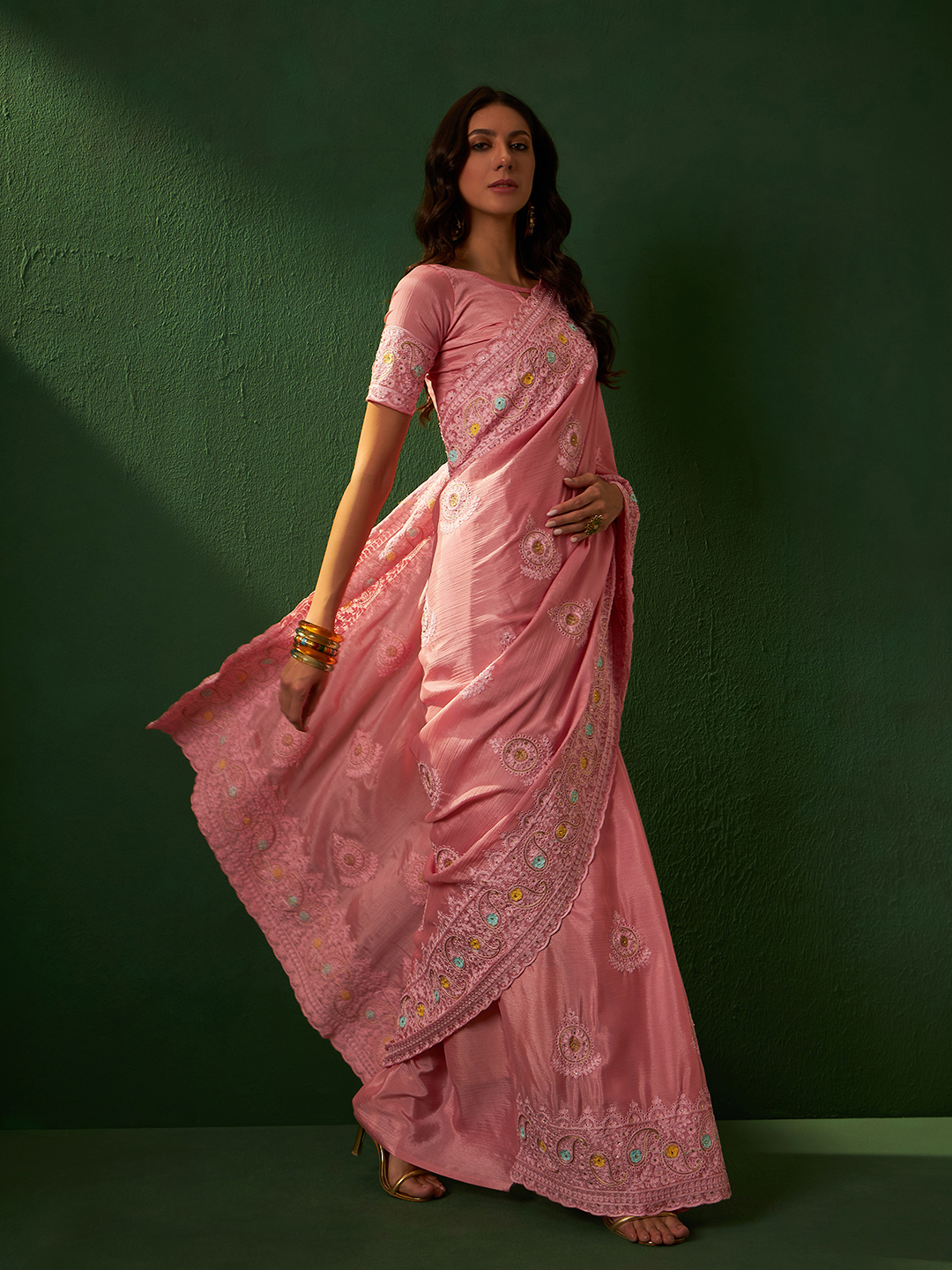 • Saree Fabric-Chinon ,Blouse Fabric-Chinon