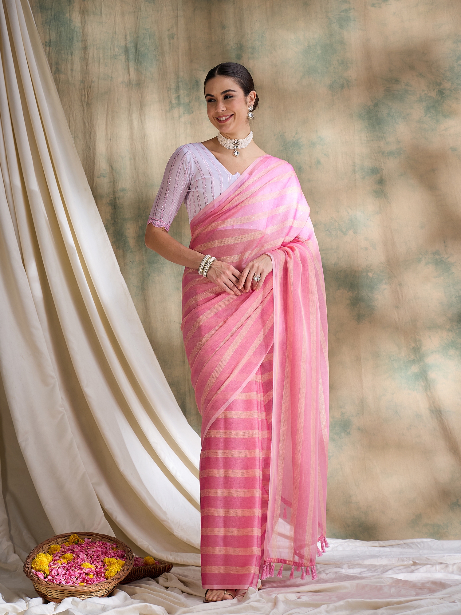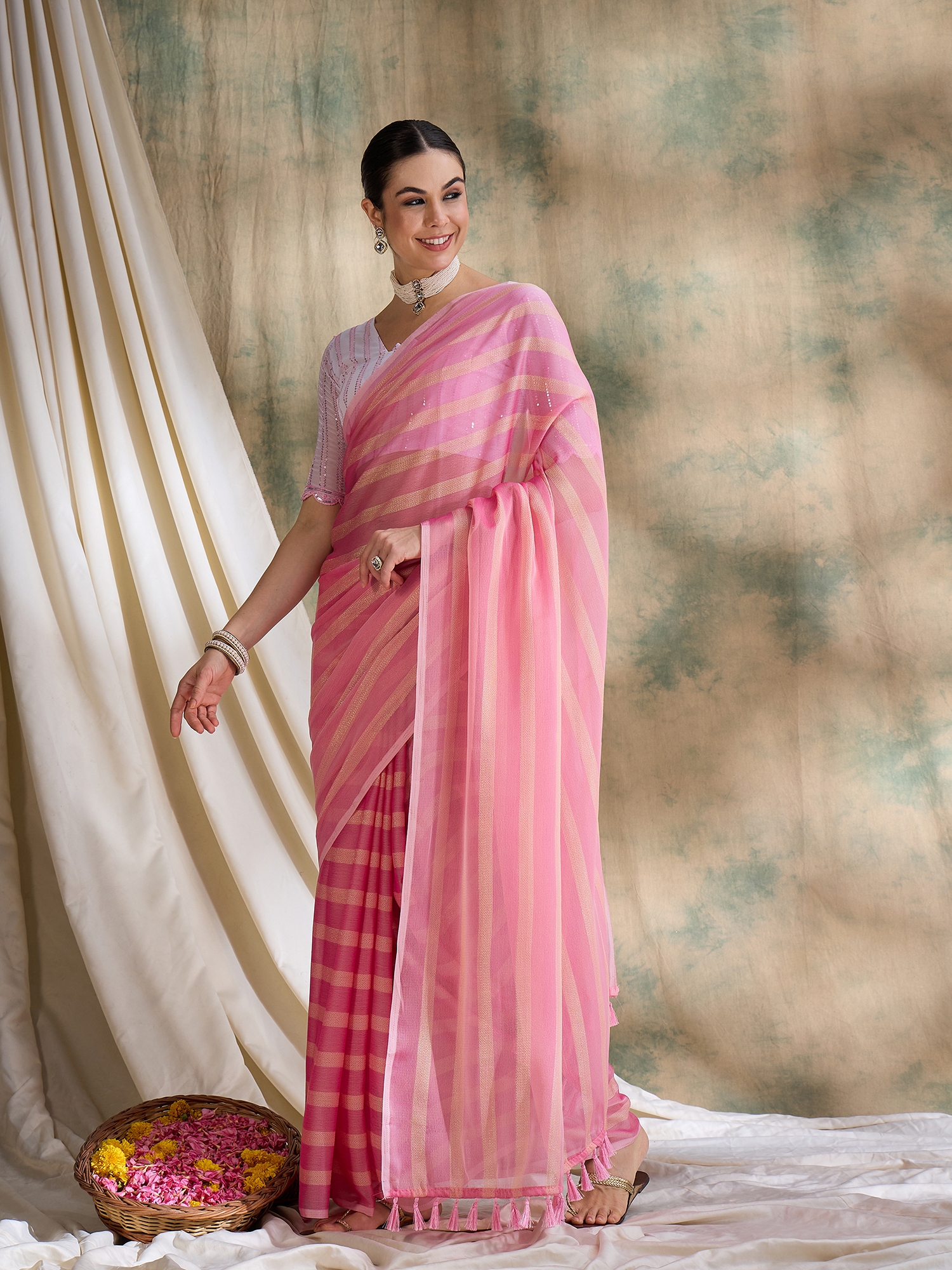 Fashion Dream Womens Pink Vichitra Silk Saree | Soft & Elegant Traditional Wear