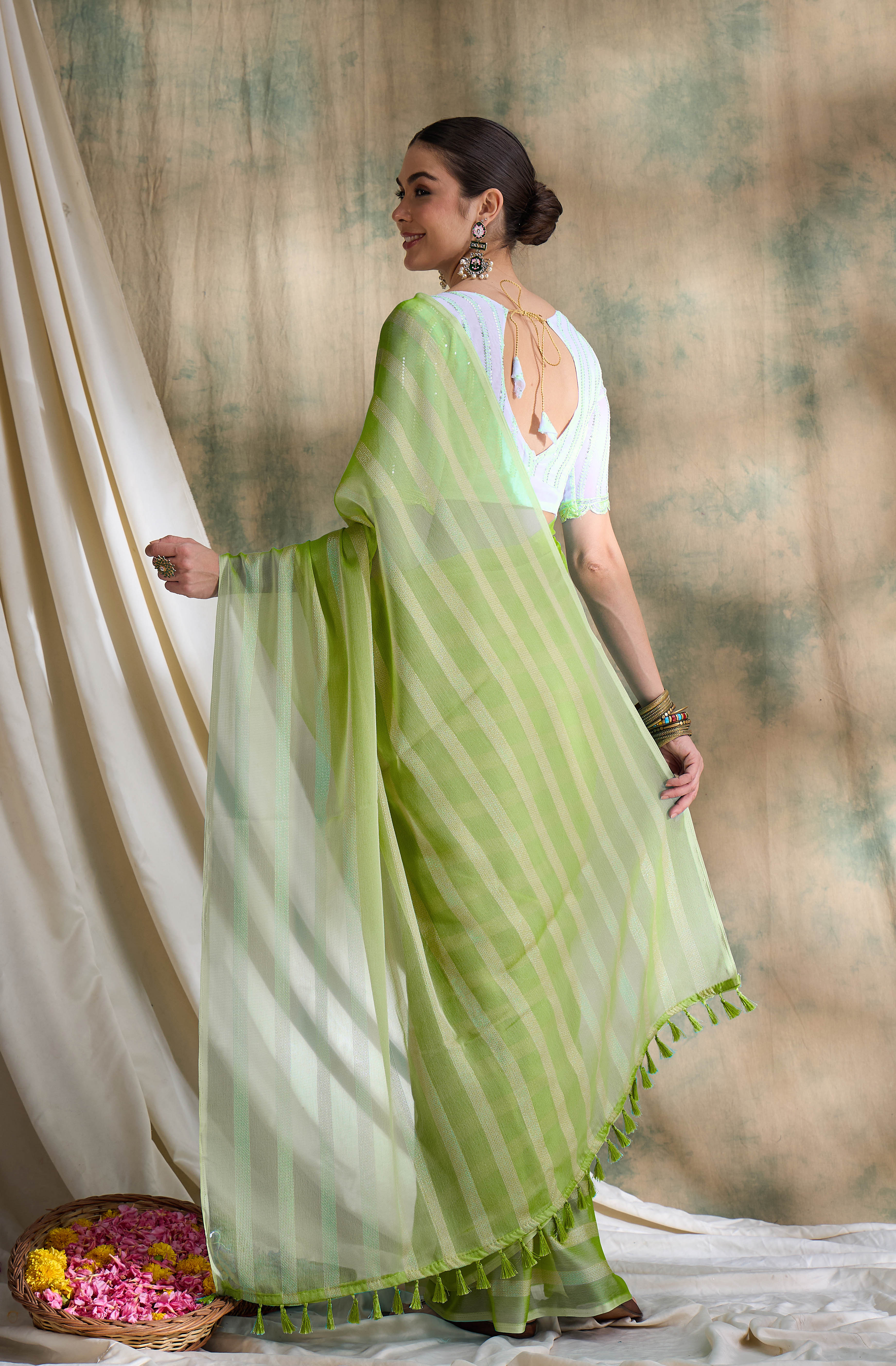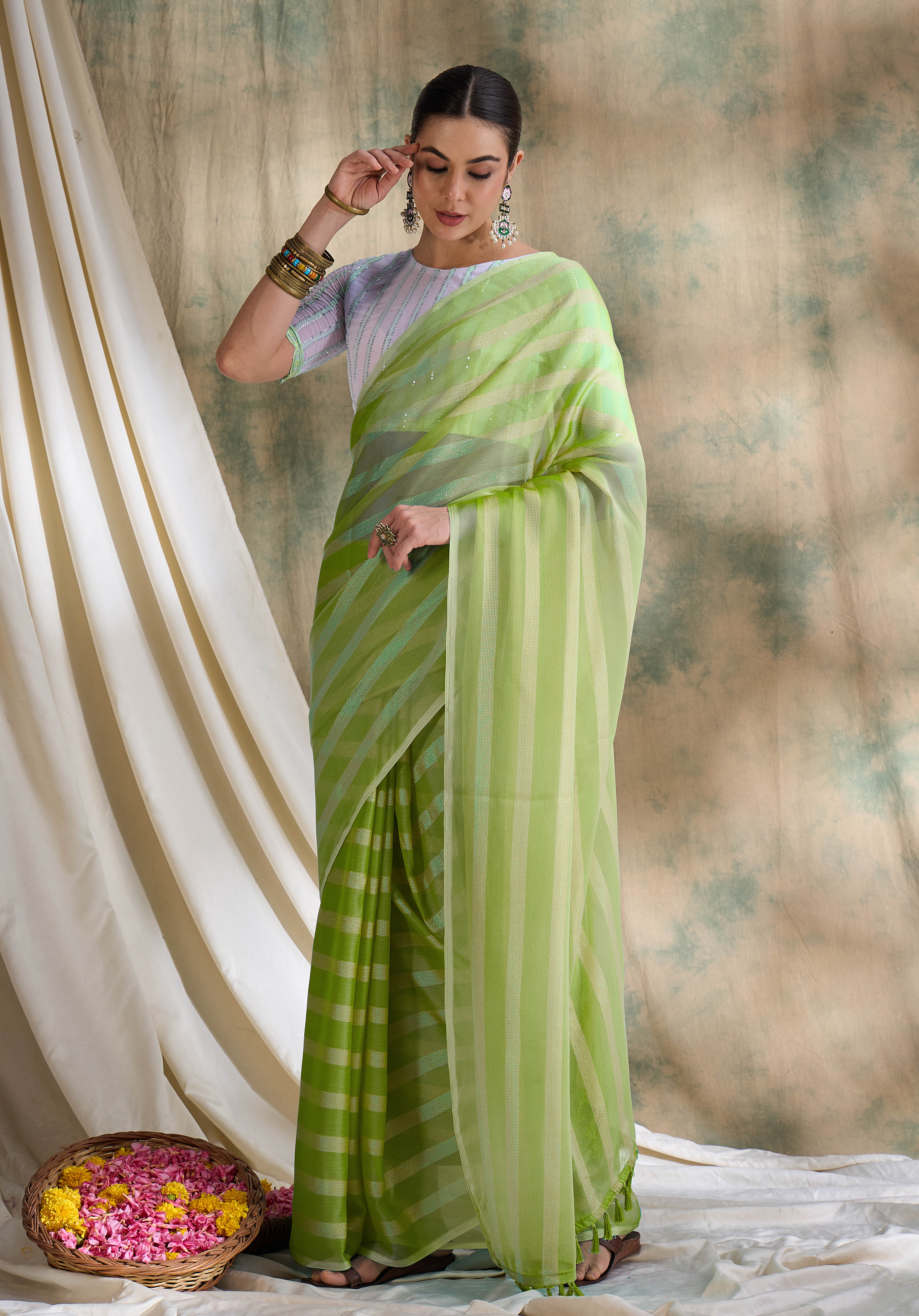 Fashion Dream Womens Pista Green Vichitra Silk Saree | Soft & Elegant Traditional Wear