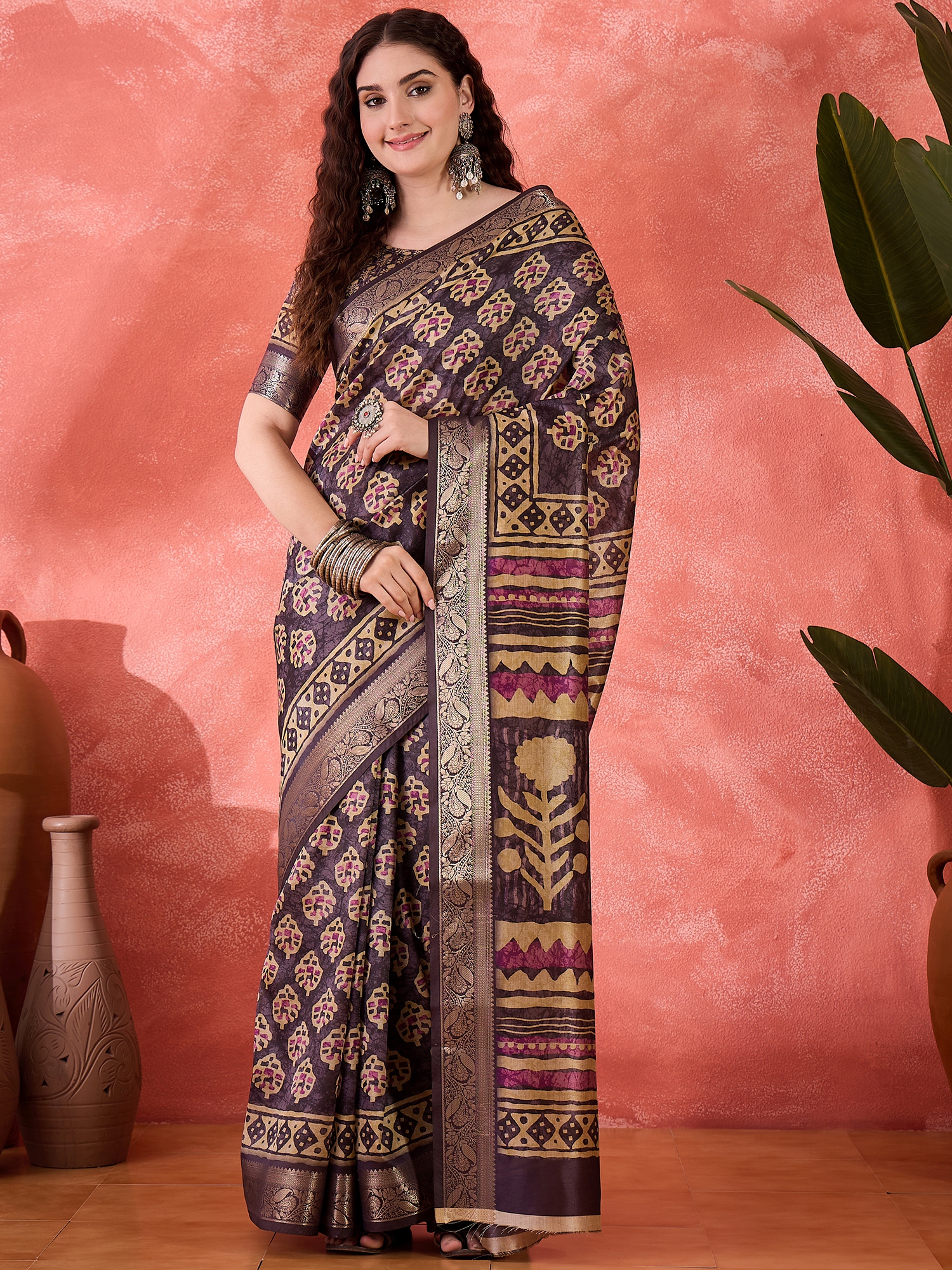 Elevate your ethnic wardrobe with this elegant AASTHA FASHION Womens Blend Saree, designed to offer a perfect balance of comfort and traditional style. Crafted from a premium blend fabric, this saree provides a smooth texture, graceful drape, and lasting durability. The rich look and versatile design make it suitable for daily wear, festive occasions, office functions, and social gatherings. Its lightweight feel ensures all-day comfort, while the refined finish adds a touch of sophistication to your appearance.