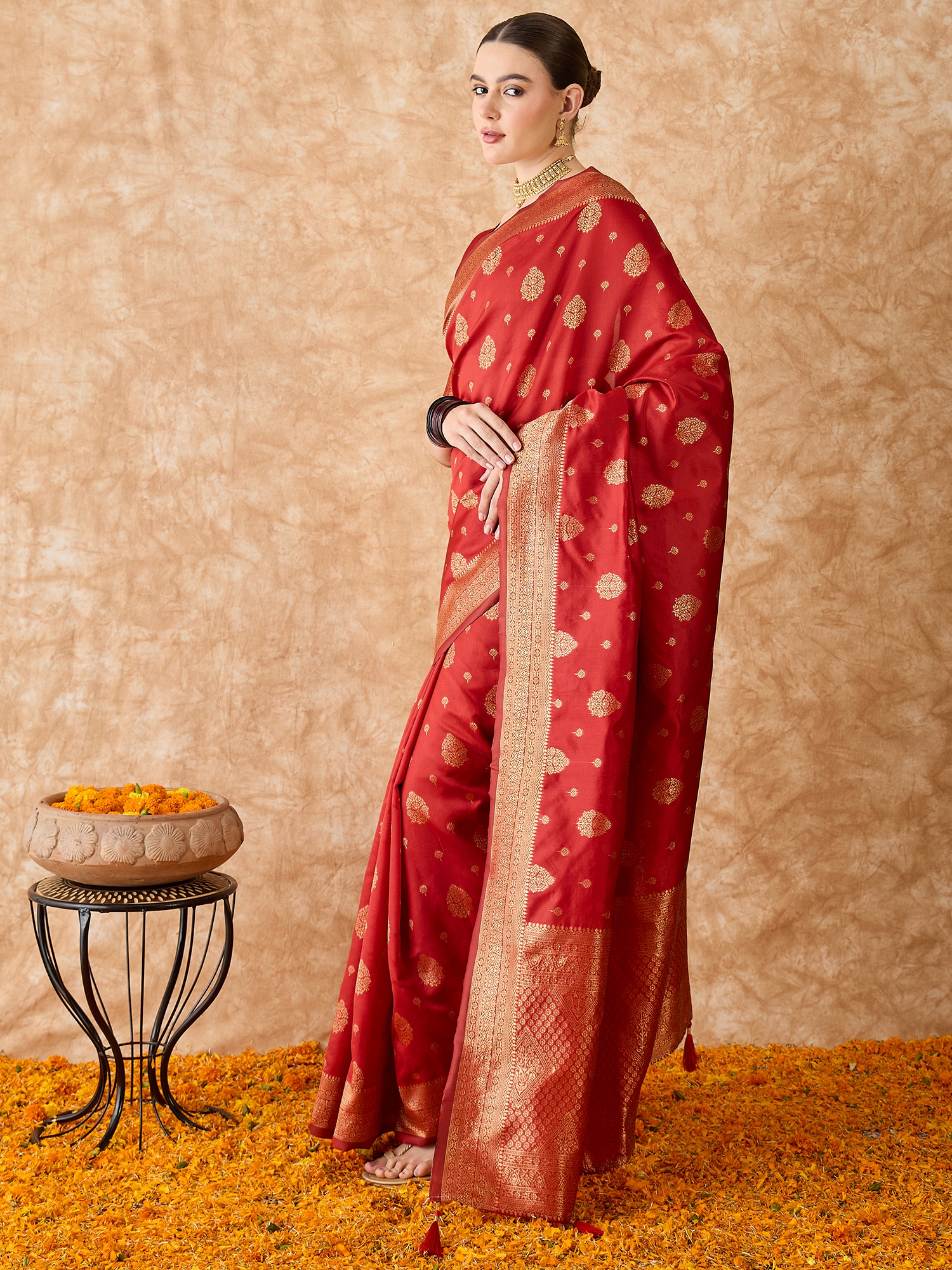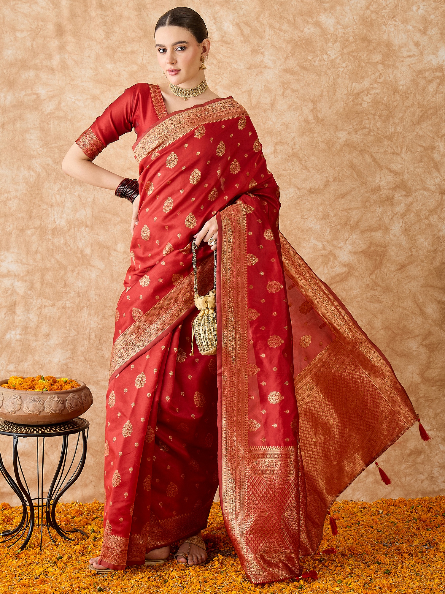 Fashion Dream Womens Red Banarasi Silk Saree | Soft & Elegant Traditional Wear
