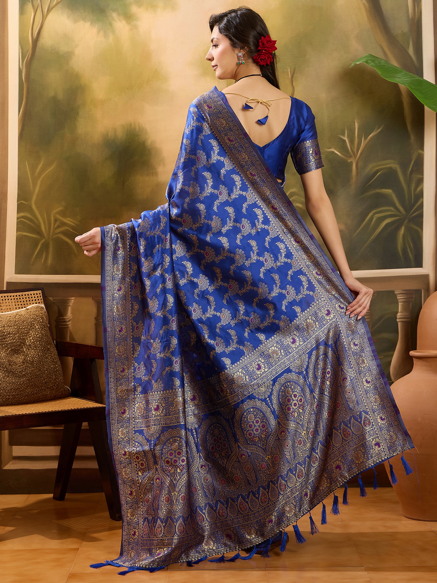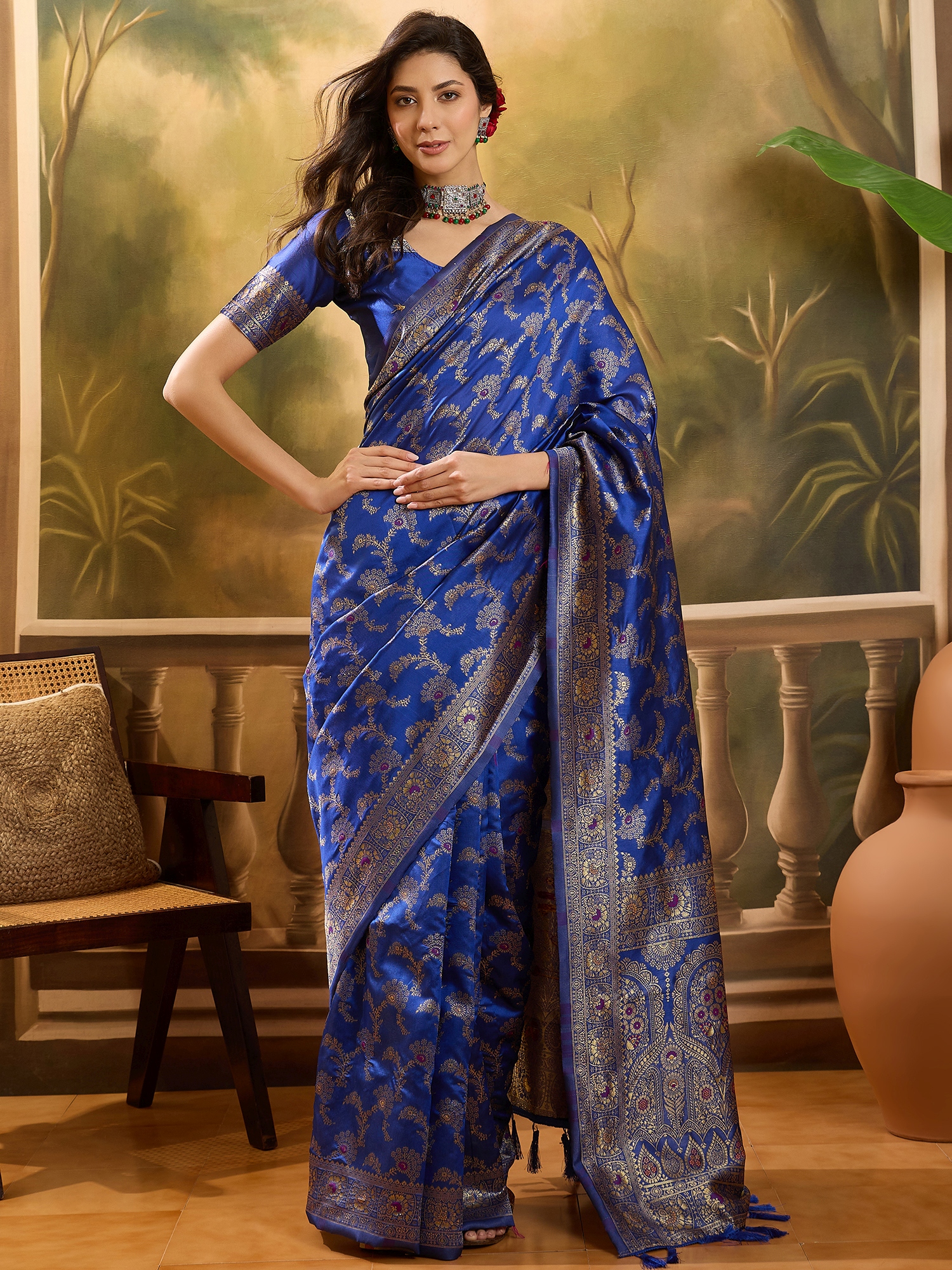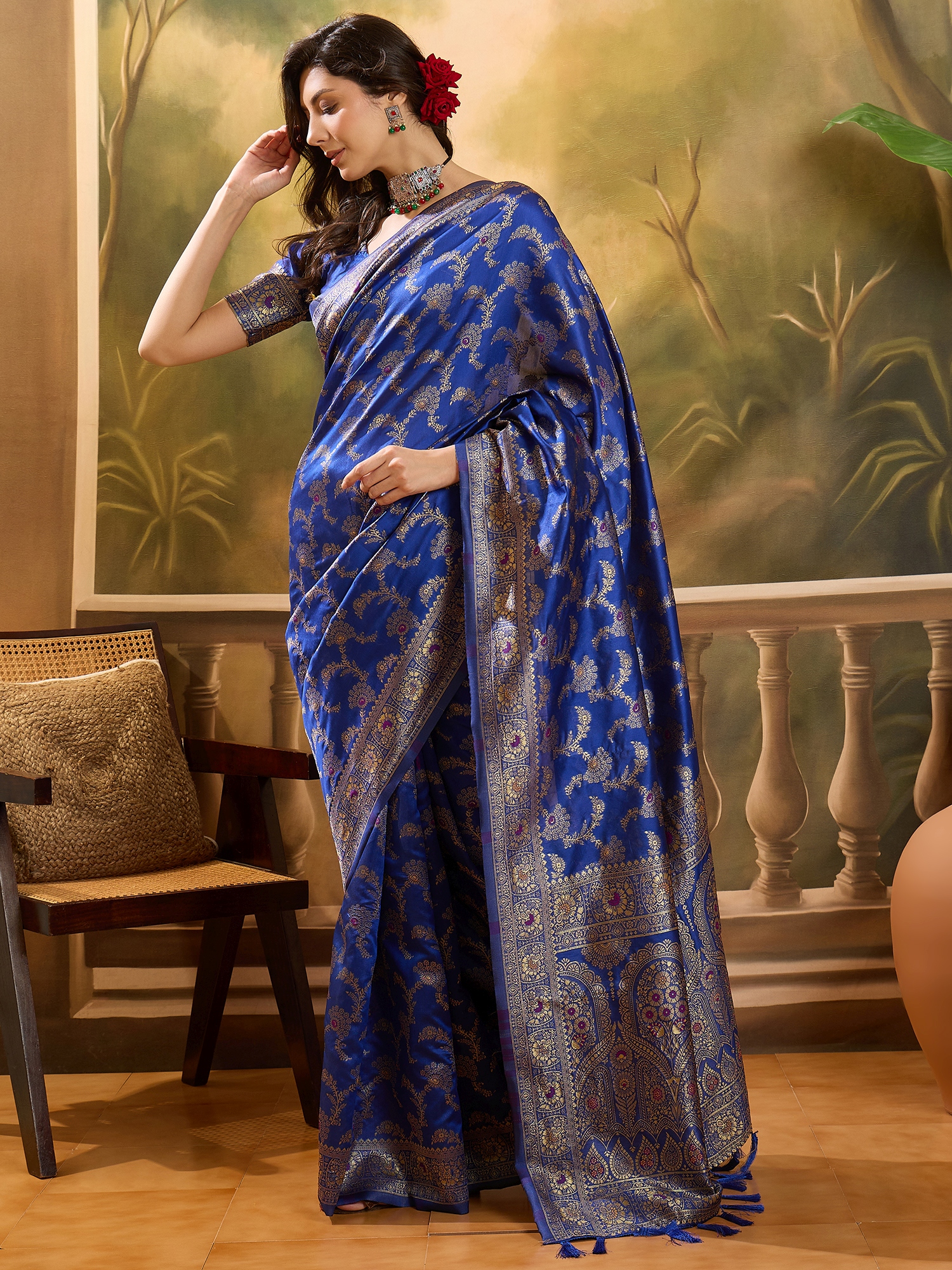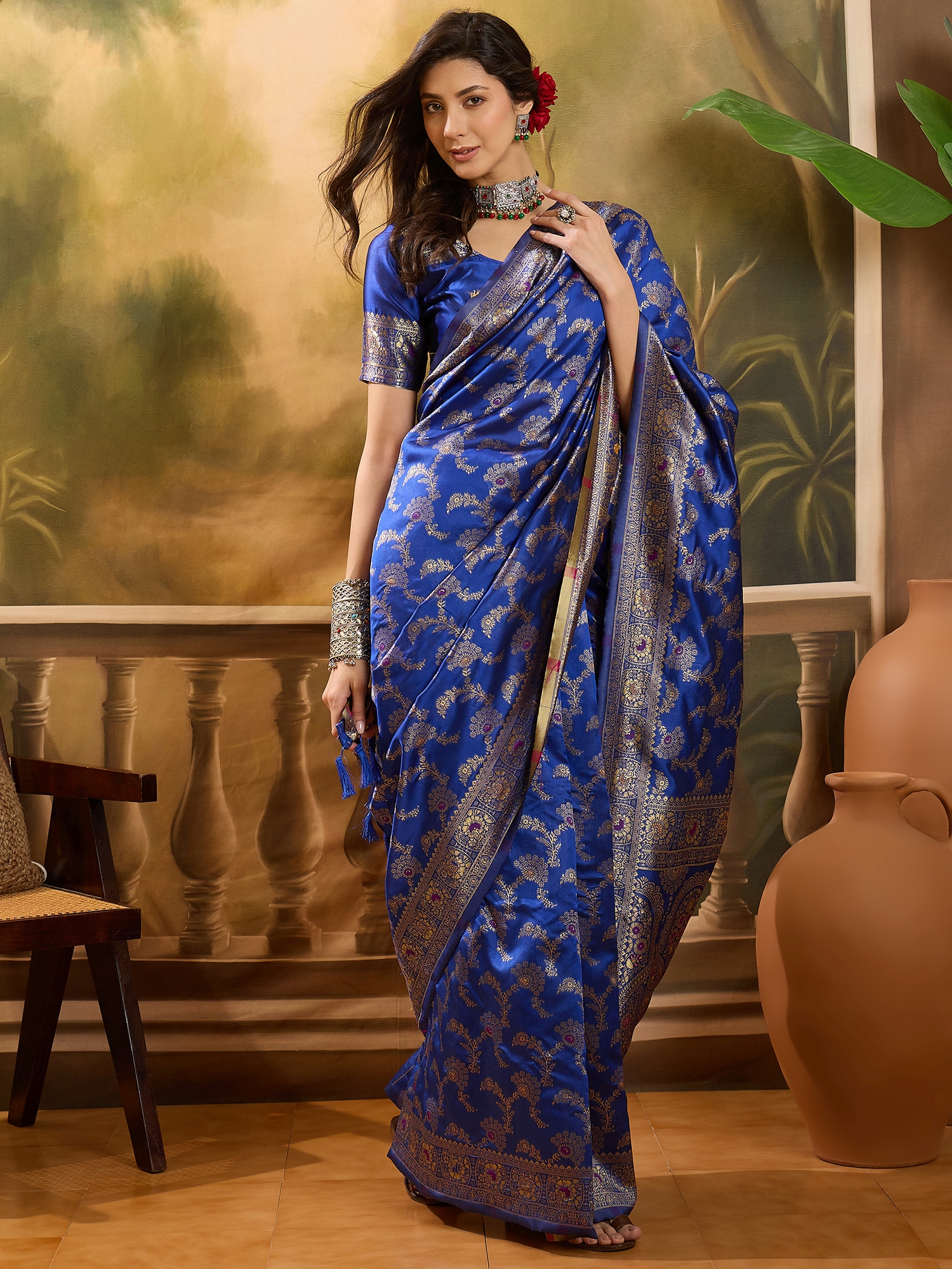 Fashion Dream Womens Royal Blue Banarasi Jacquard Saree | Soft & Elegant Traditional Wear