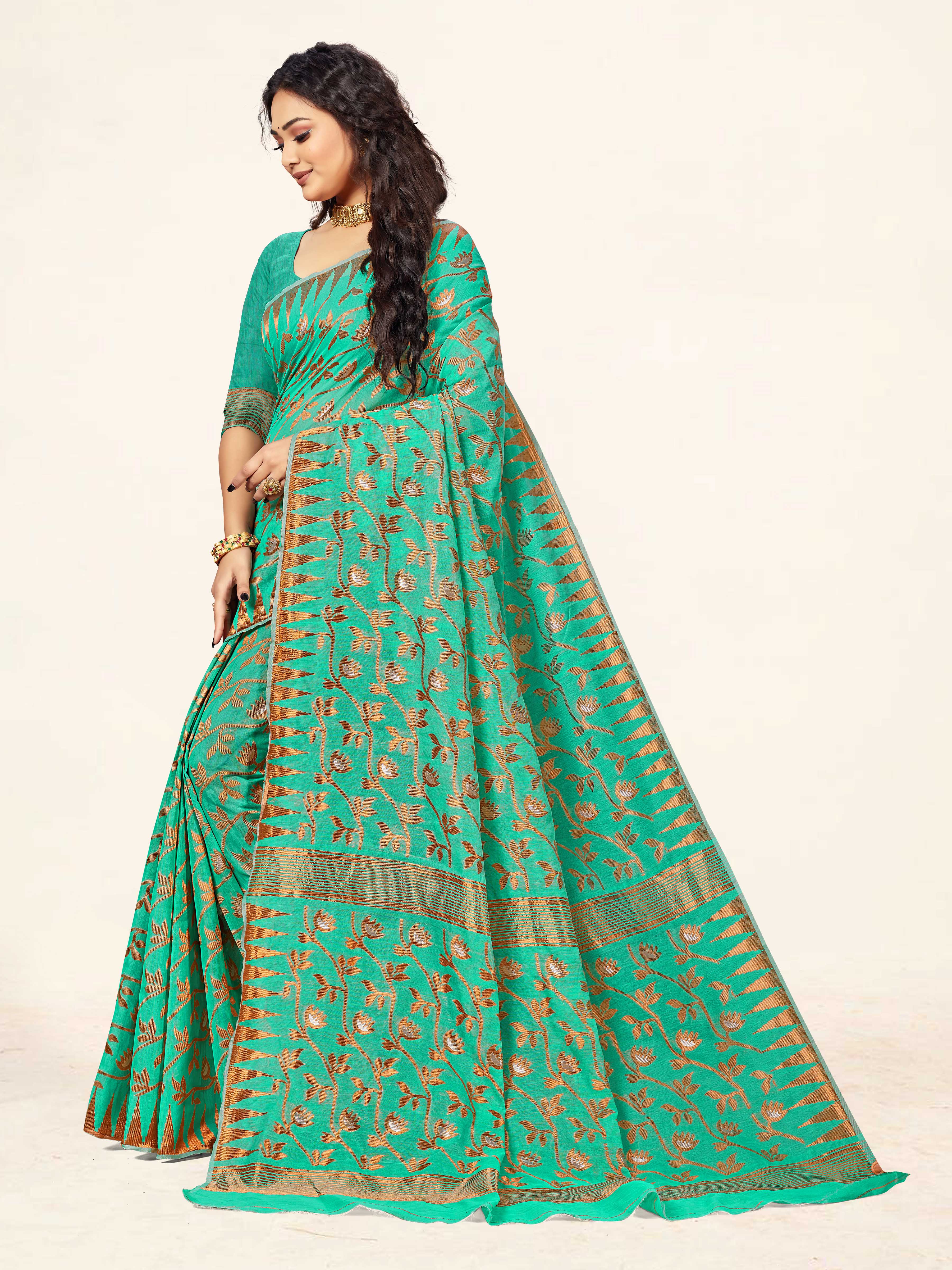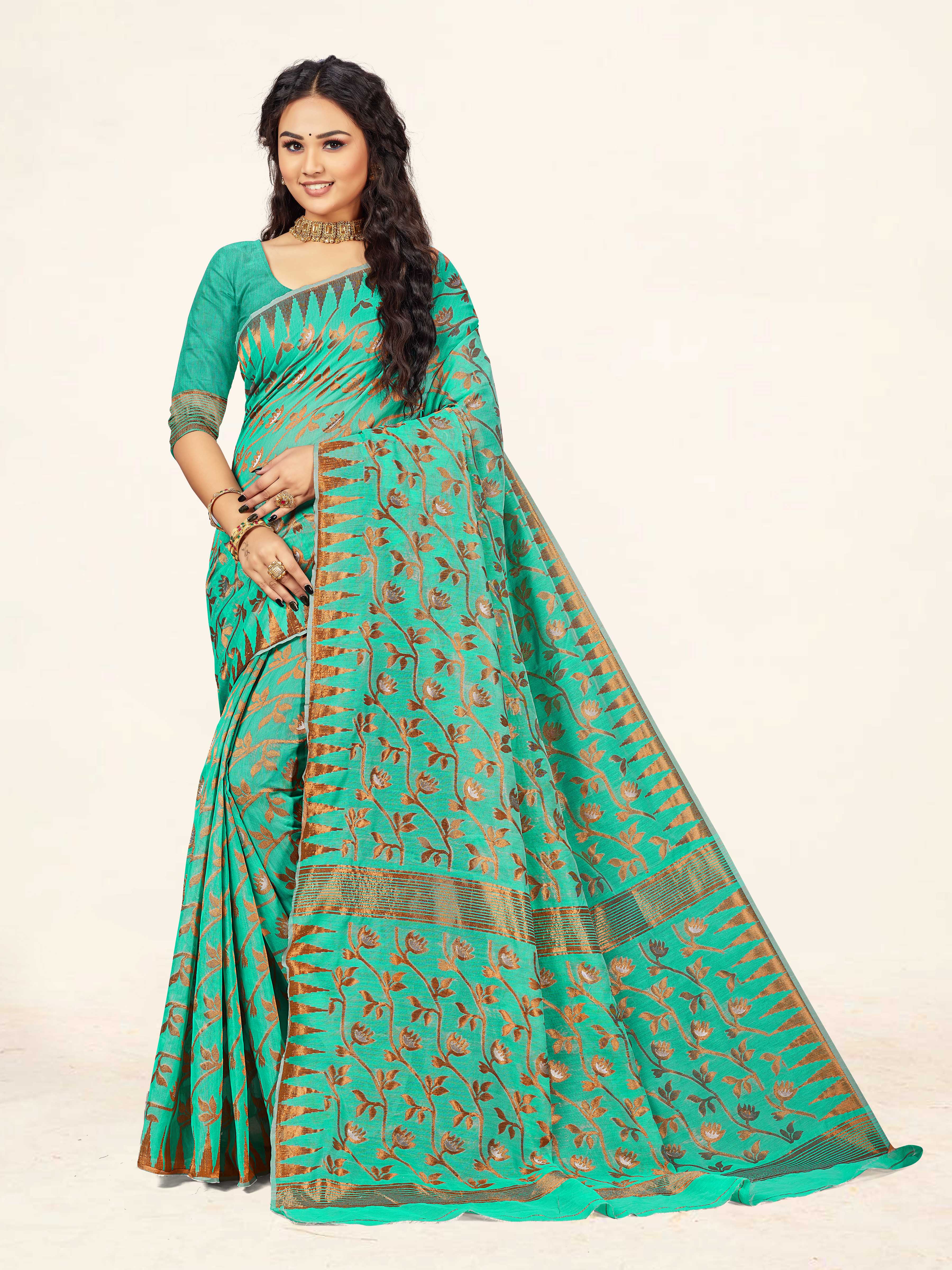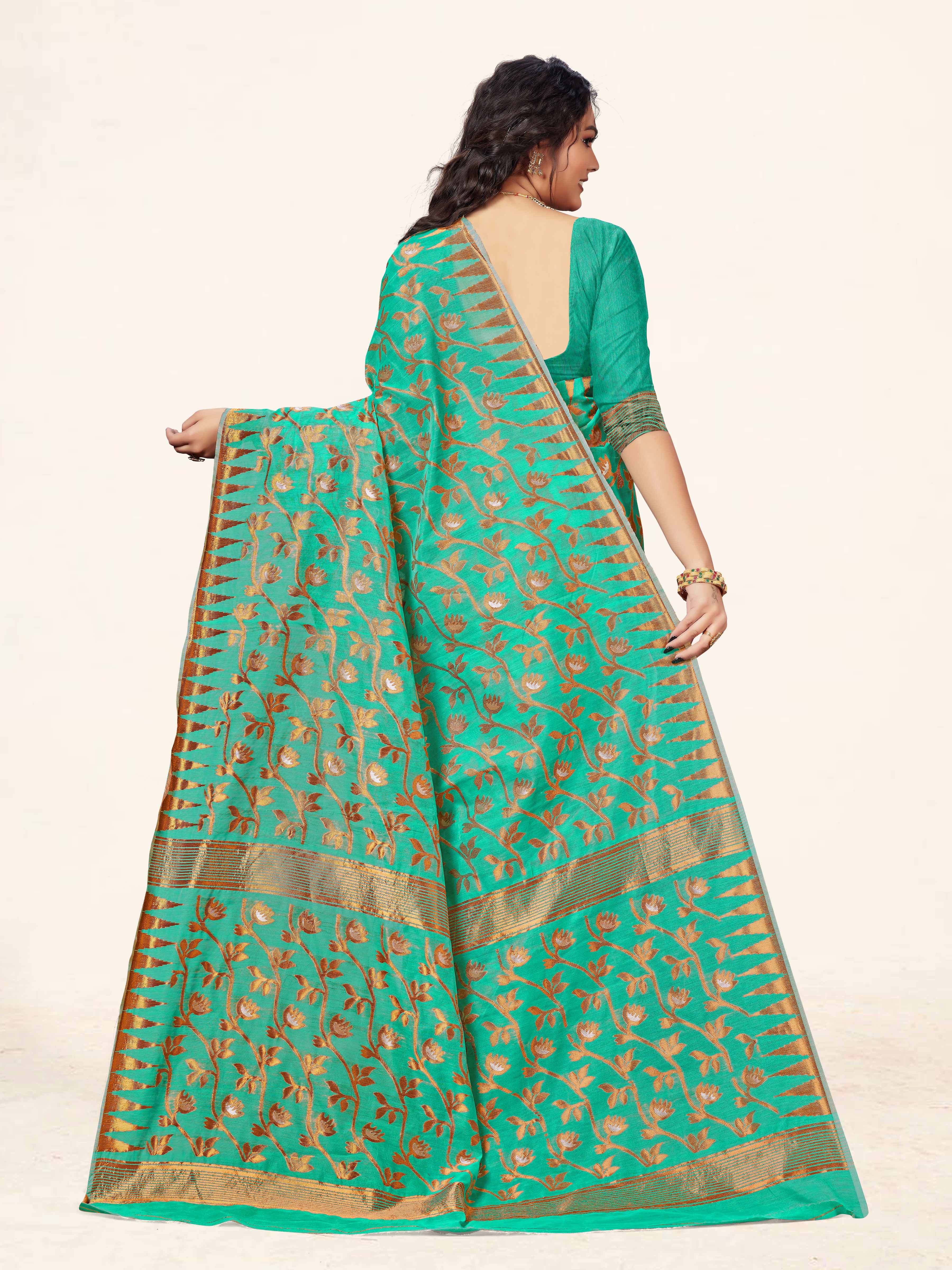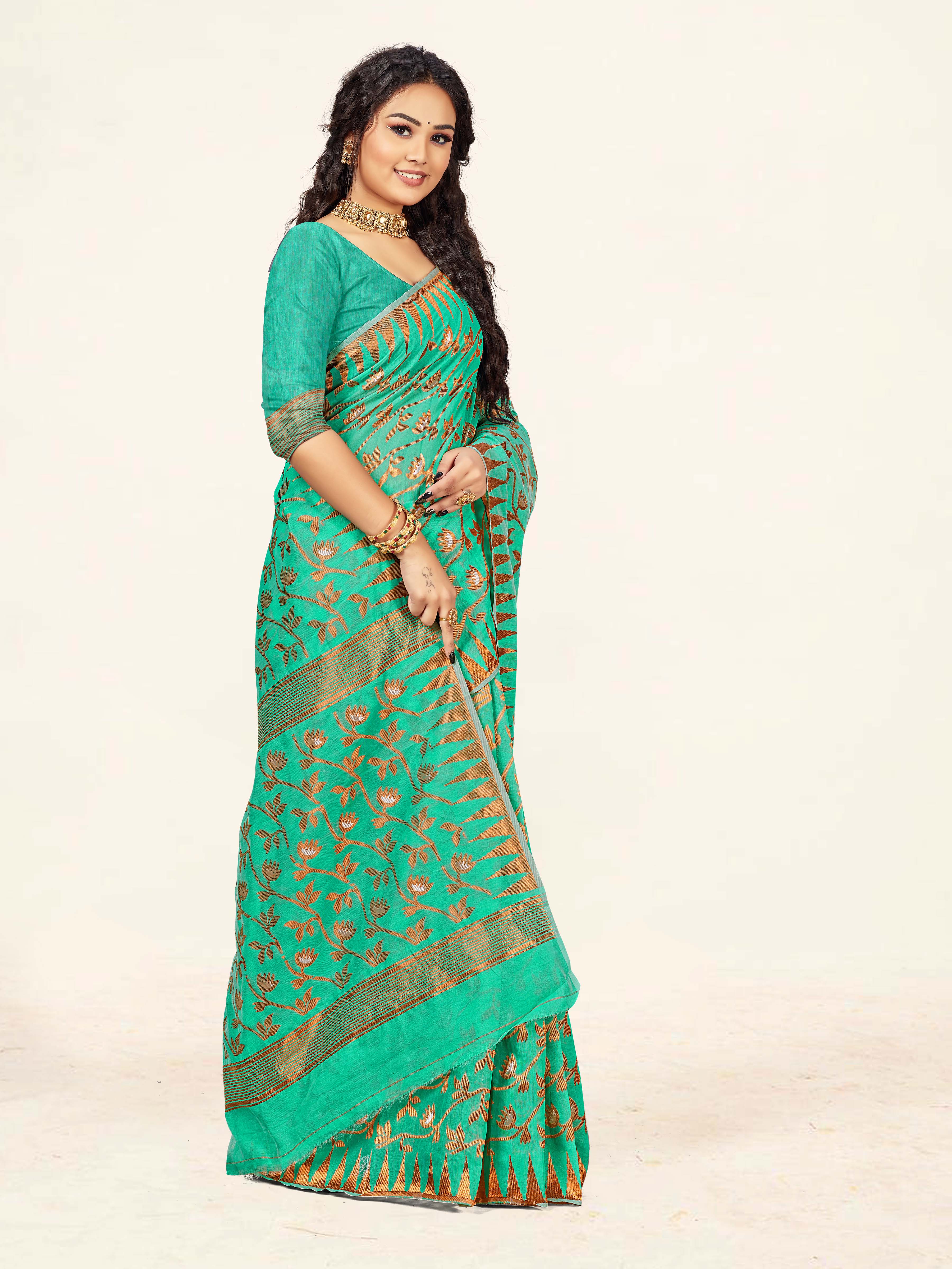 Fashion Dream Womens Sea Green Cotton Saree | Soft & Elegant Traditional Wear