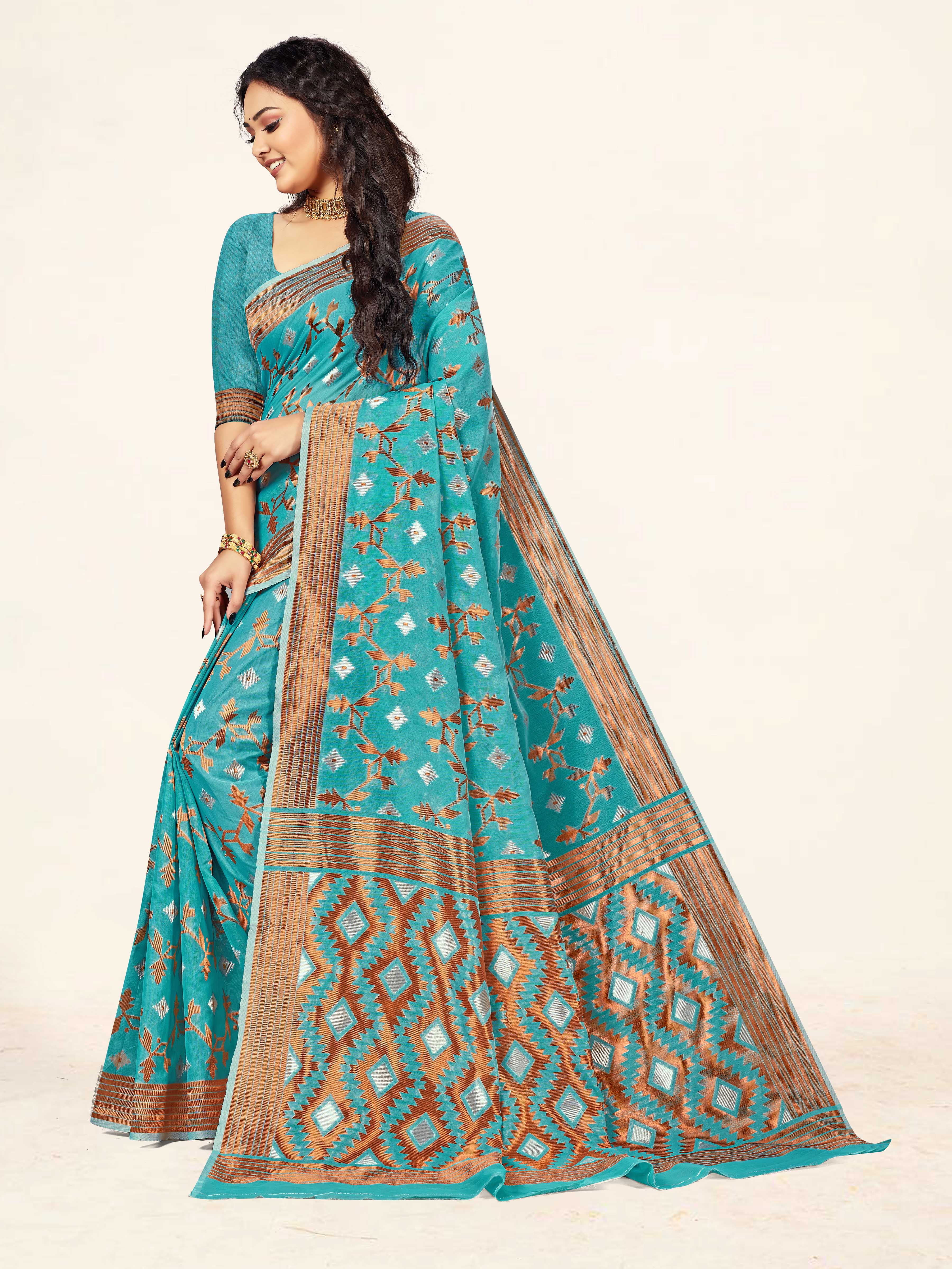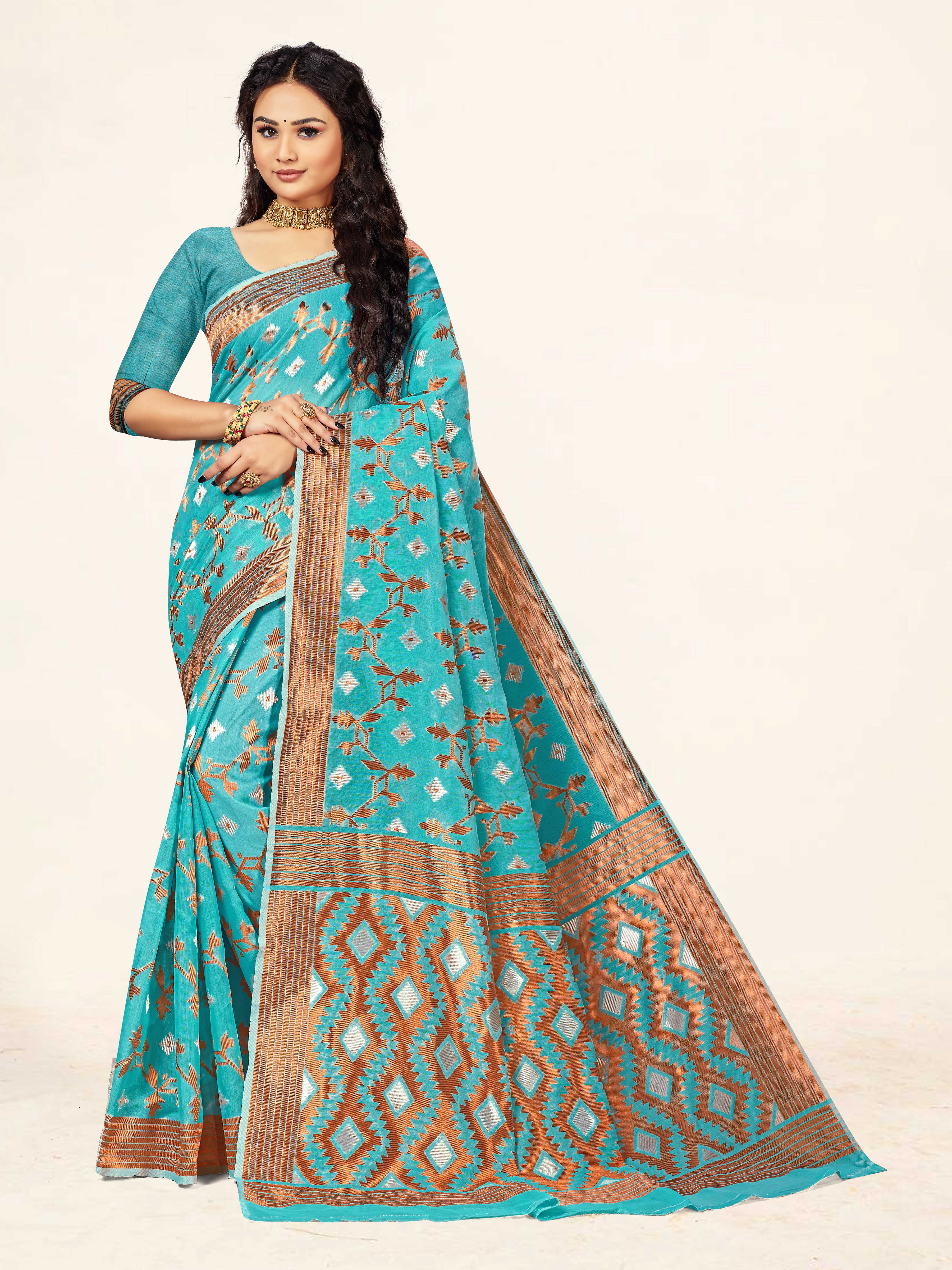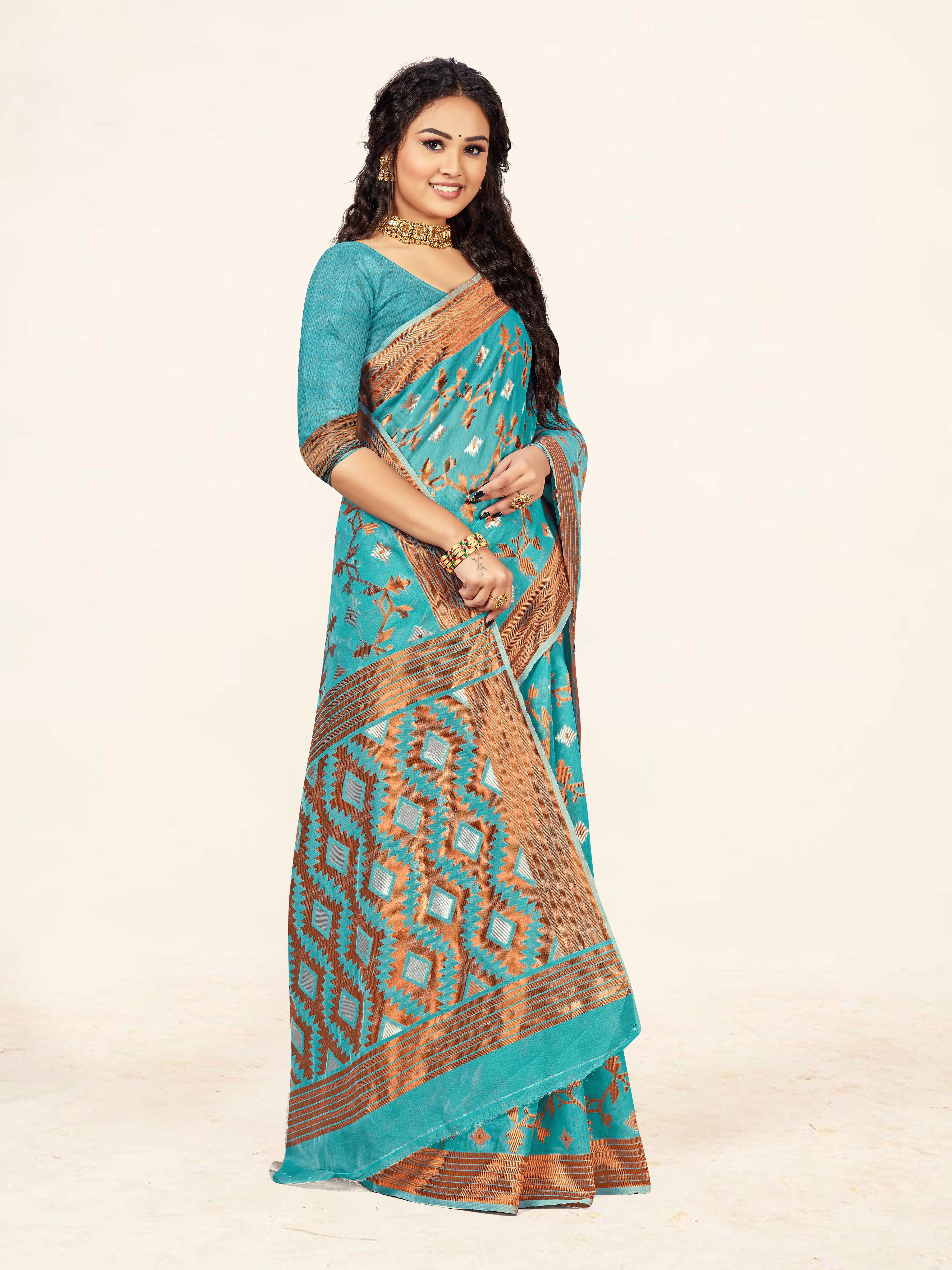 Fashion Dream Womens Sky Blue Cotton Saree | Soft & Elegant Traditional Wear