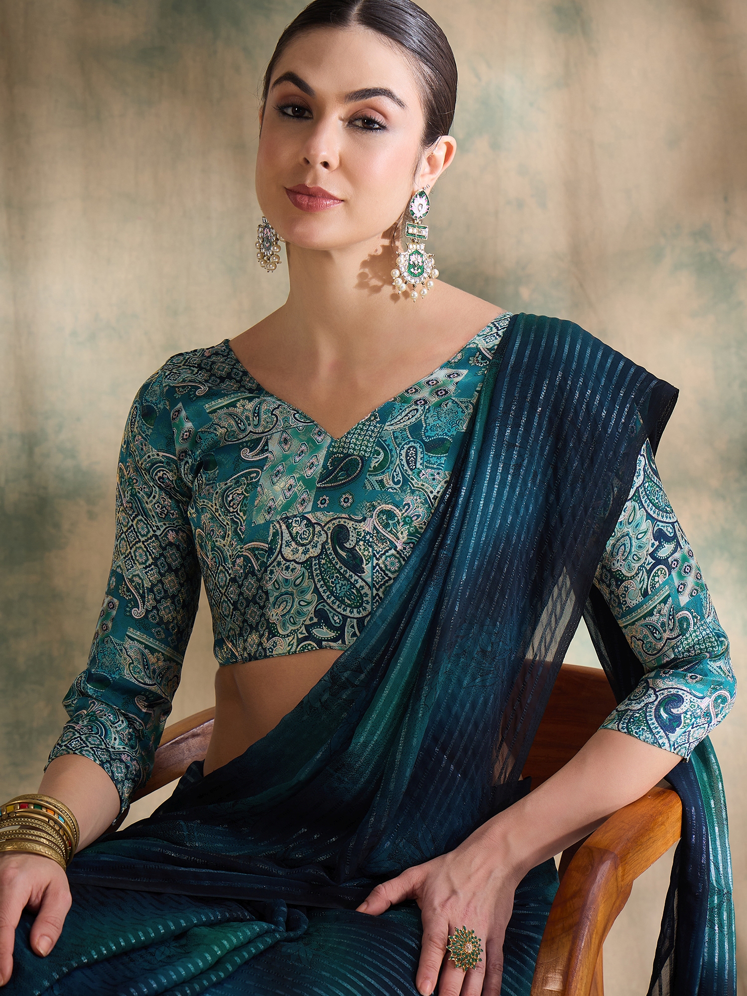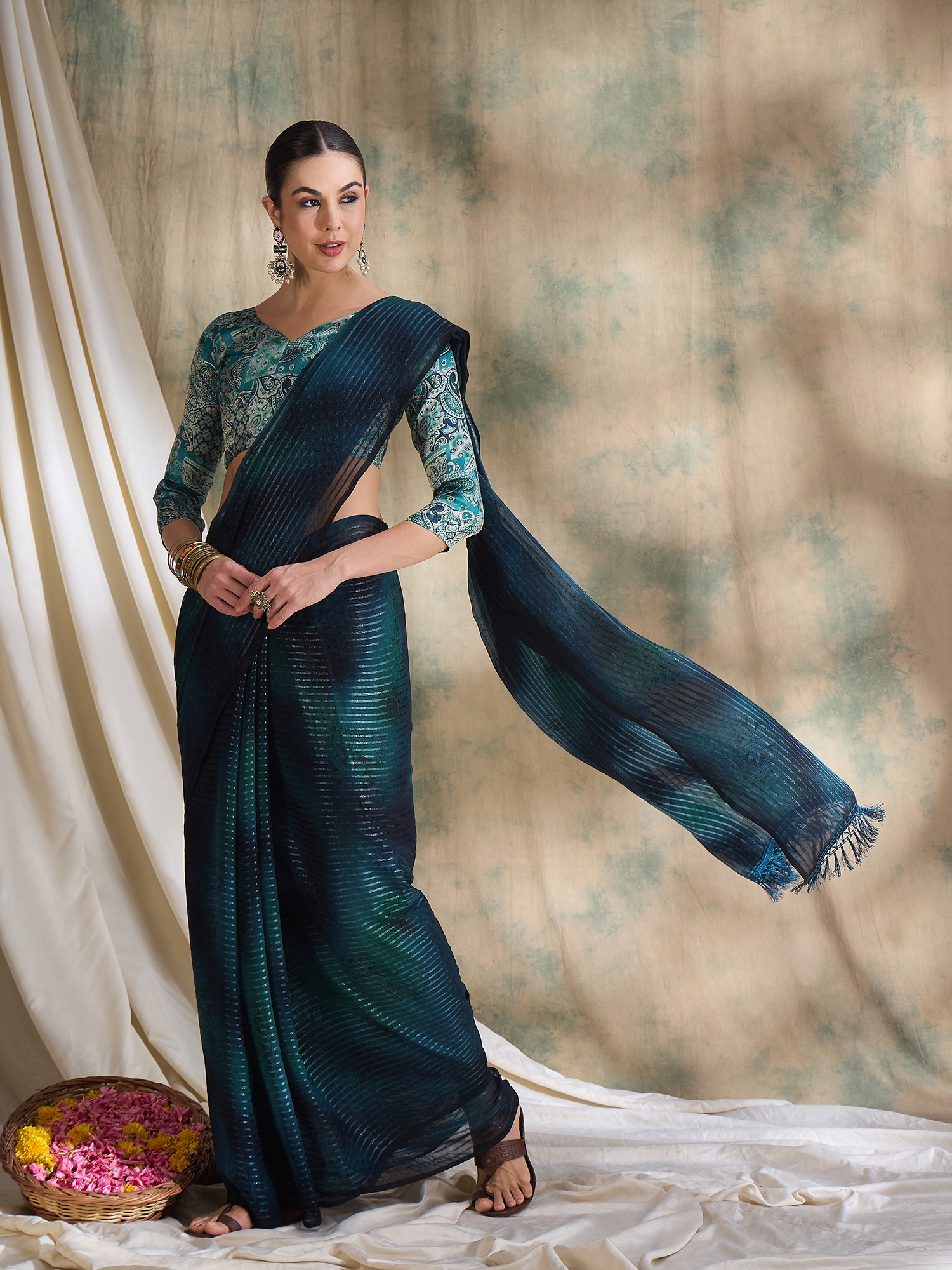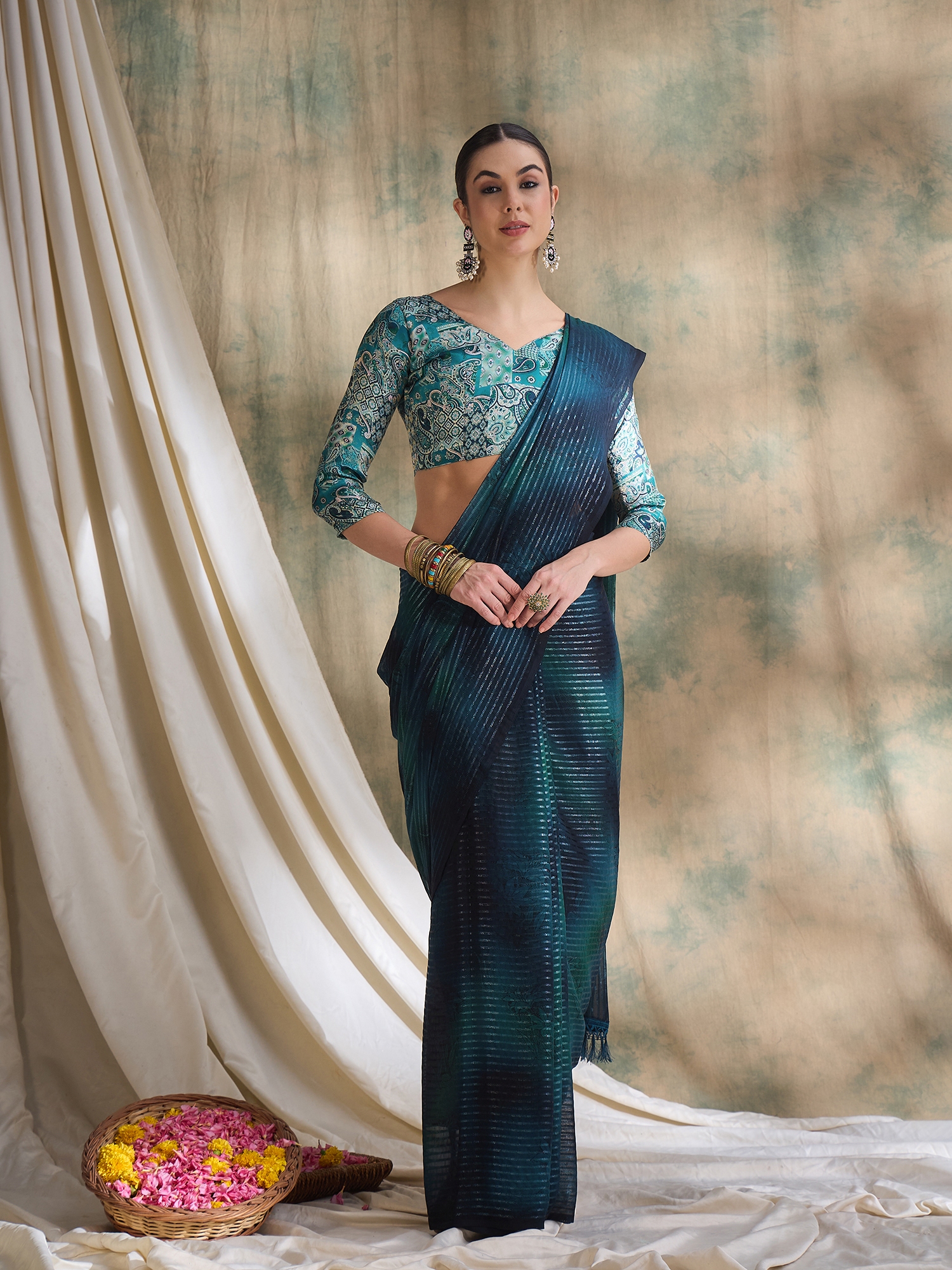 Fashion Dream Womens Teal Sparkle Lining Saree | Soft & Elegant Traditional Wear