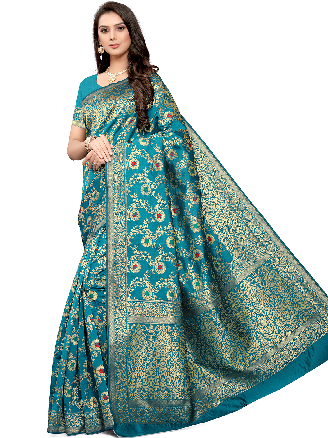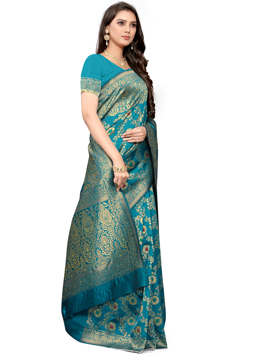 Fashion Dream Womens Turquoise Silk Blend Saree | Soft & Elegant Traditional Wear