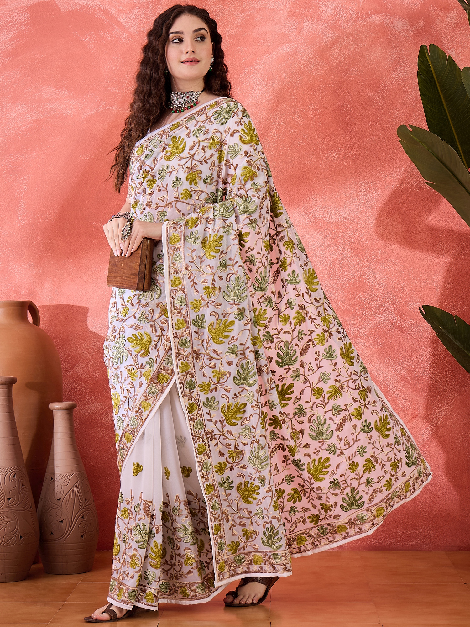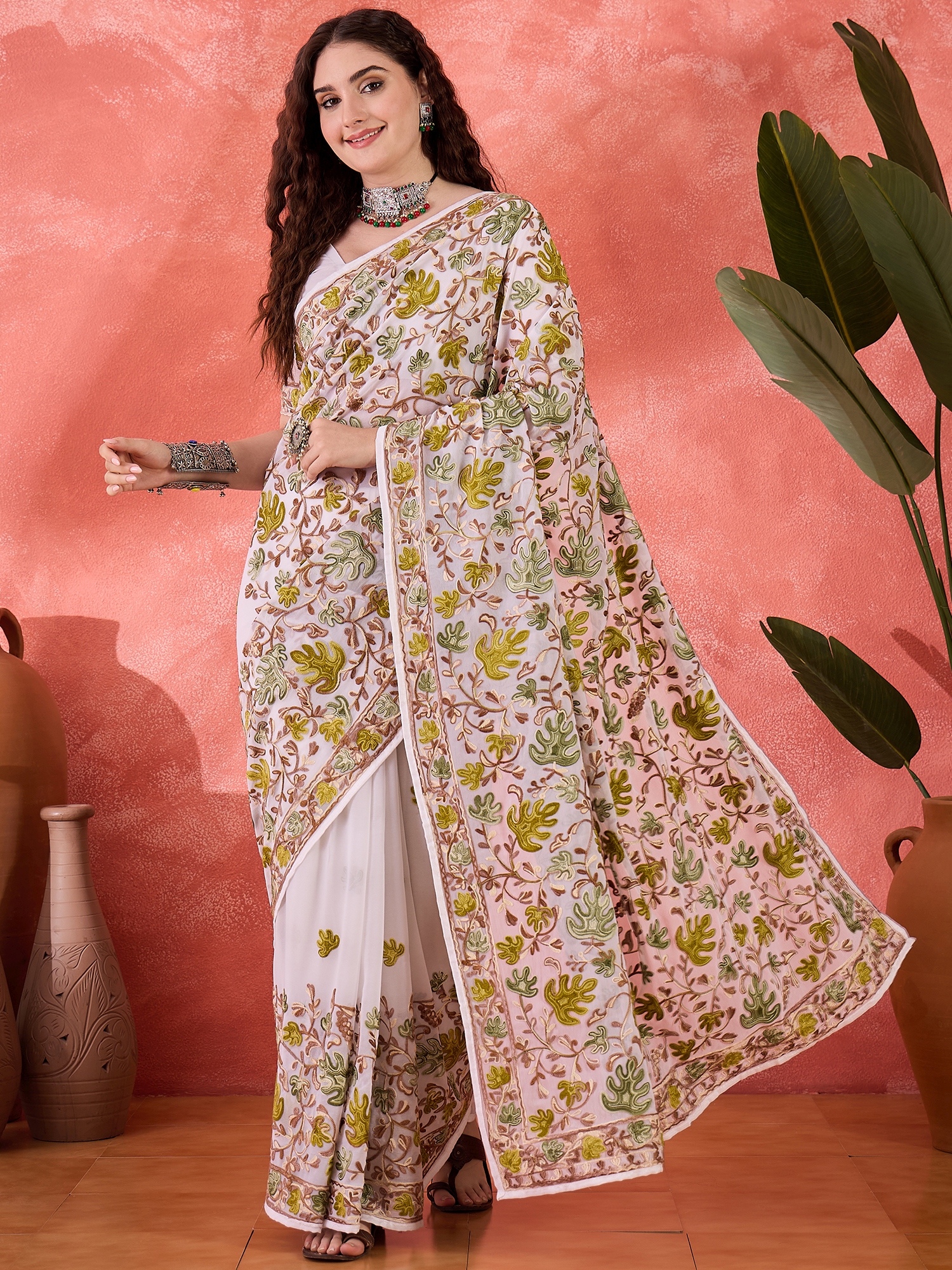 Fashion Dream Womens White Georgette Saree | Soft & Elegant Traditional Wear