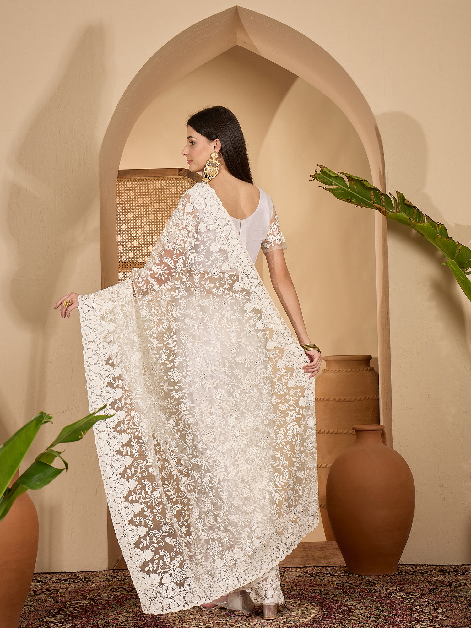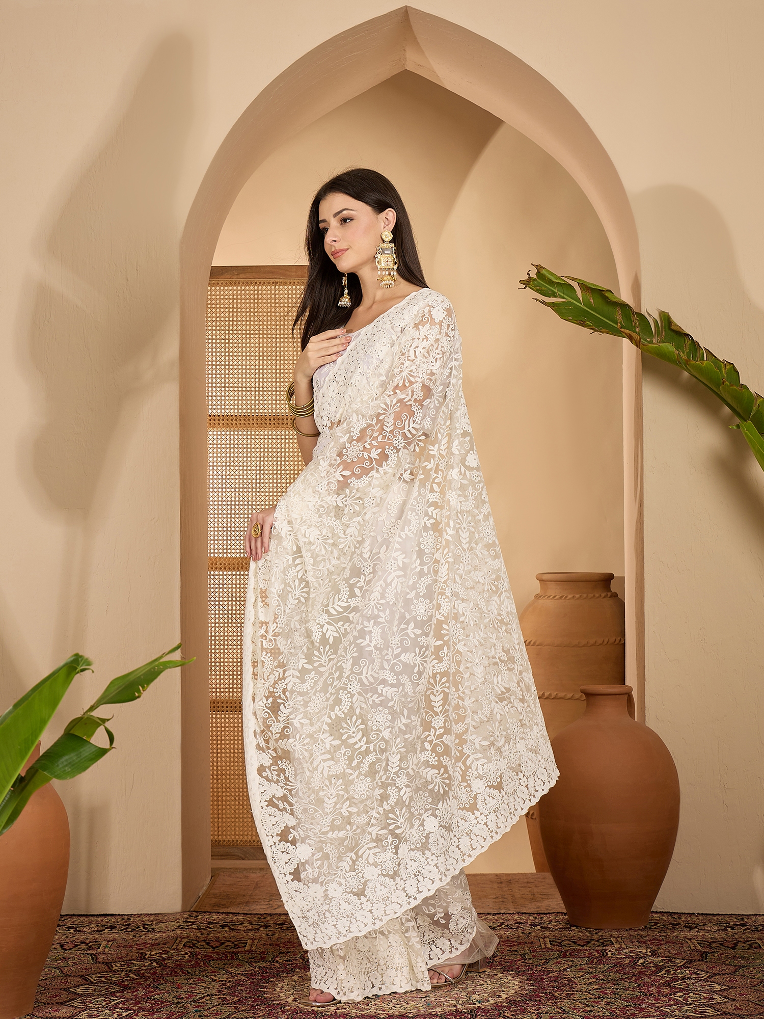 Fashion Dream Womens White Heavy Net Saree | Soft & Elegant Traditional Wear