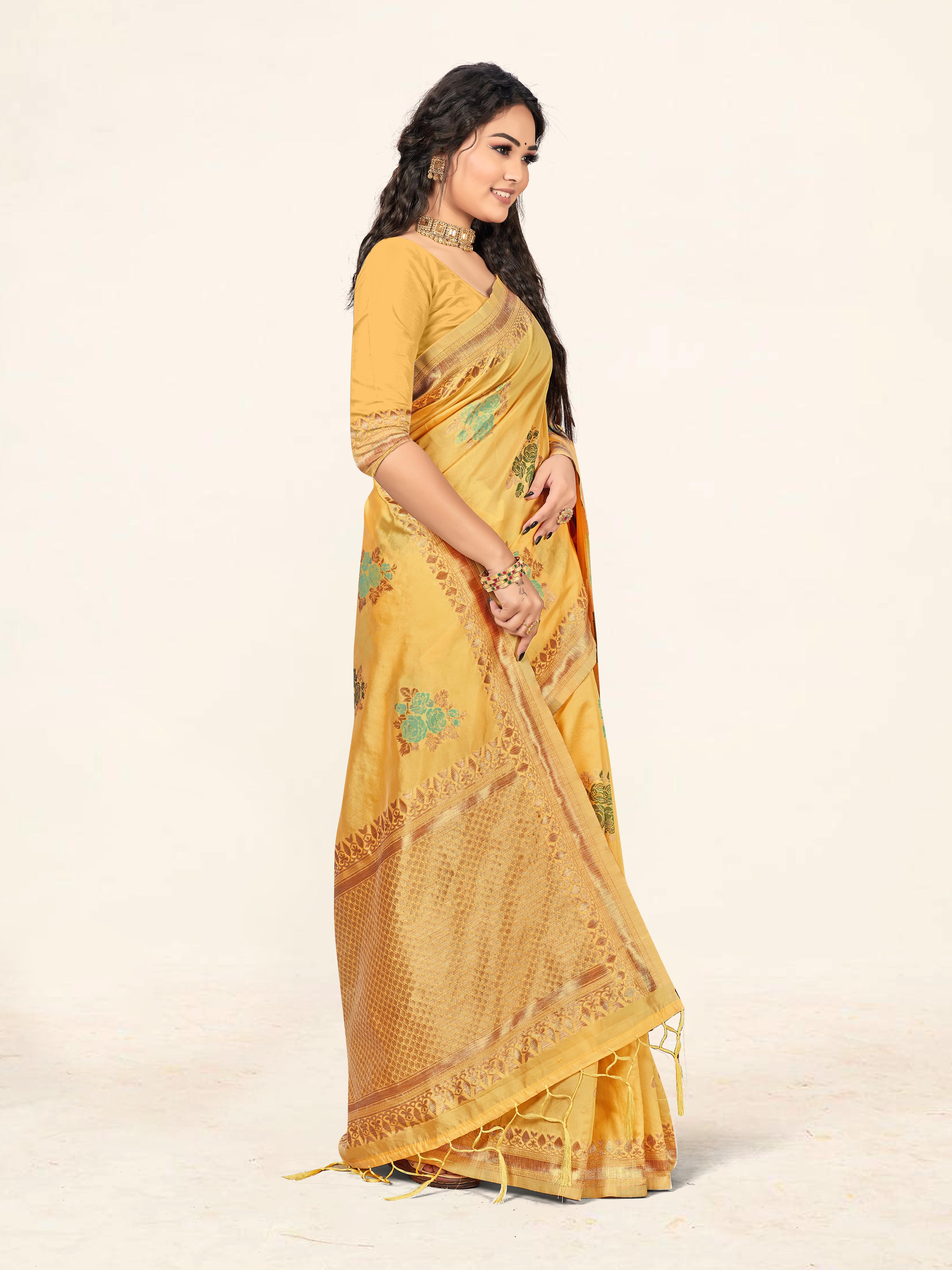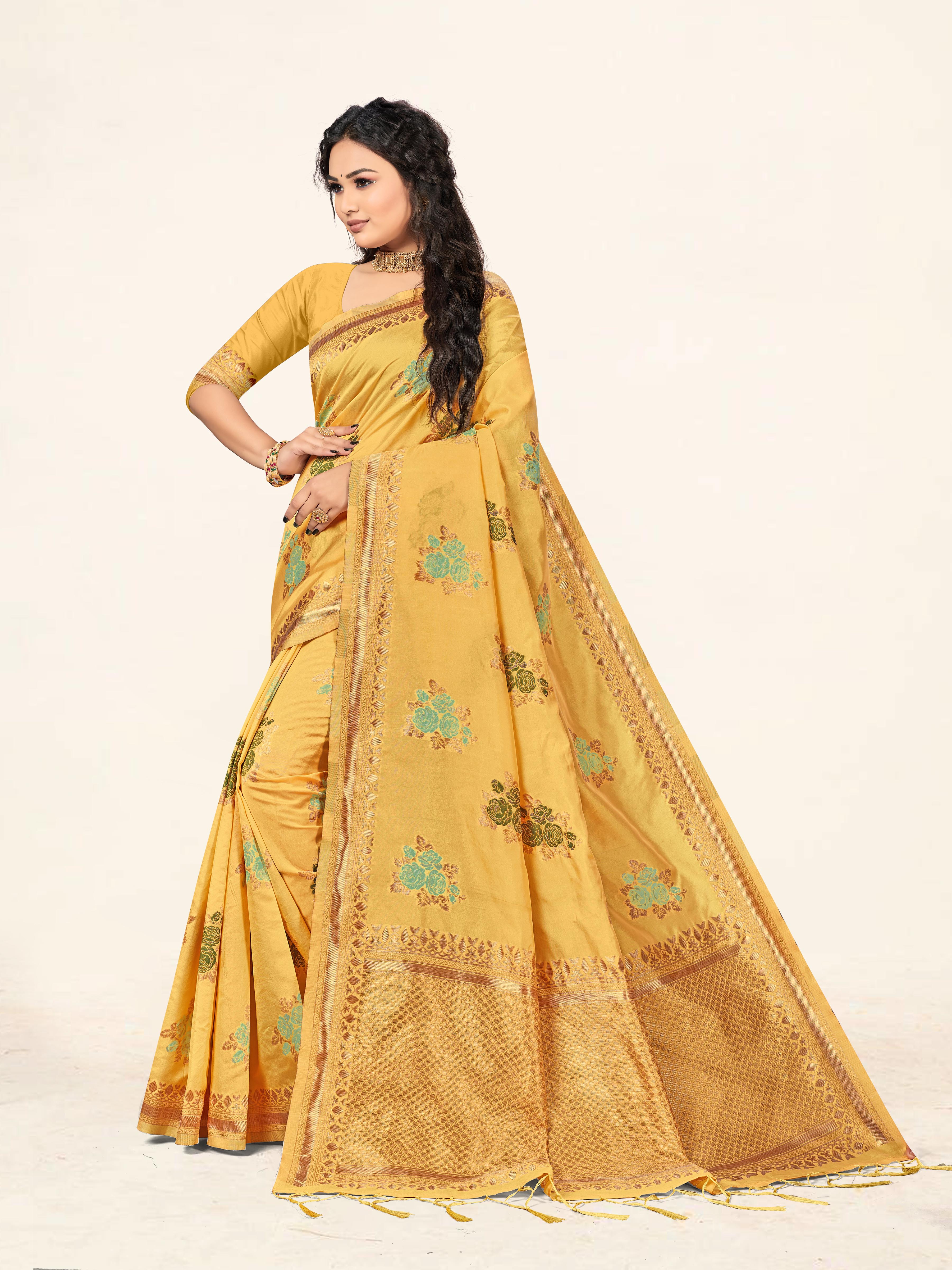Fashion Dream Womens Yellow Cotton Saree | Soft & Elegant Traditional Wear