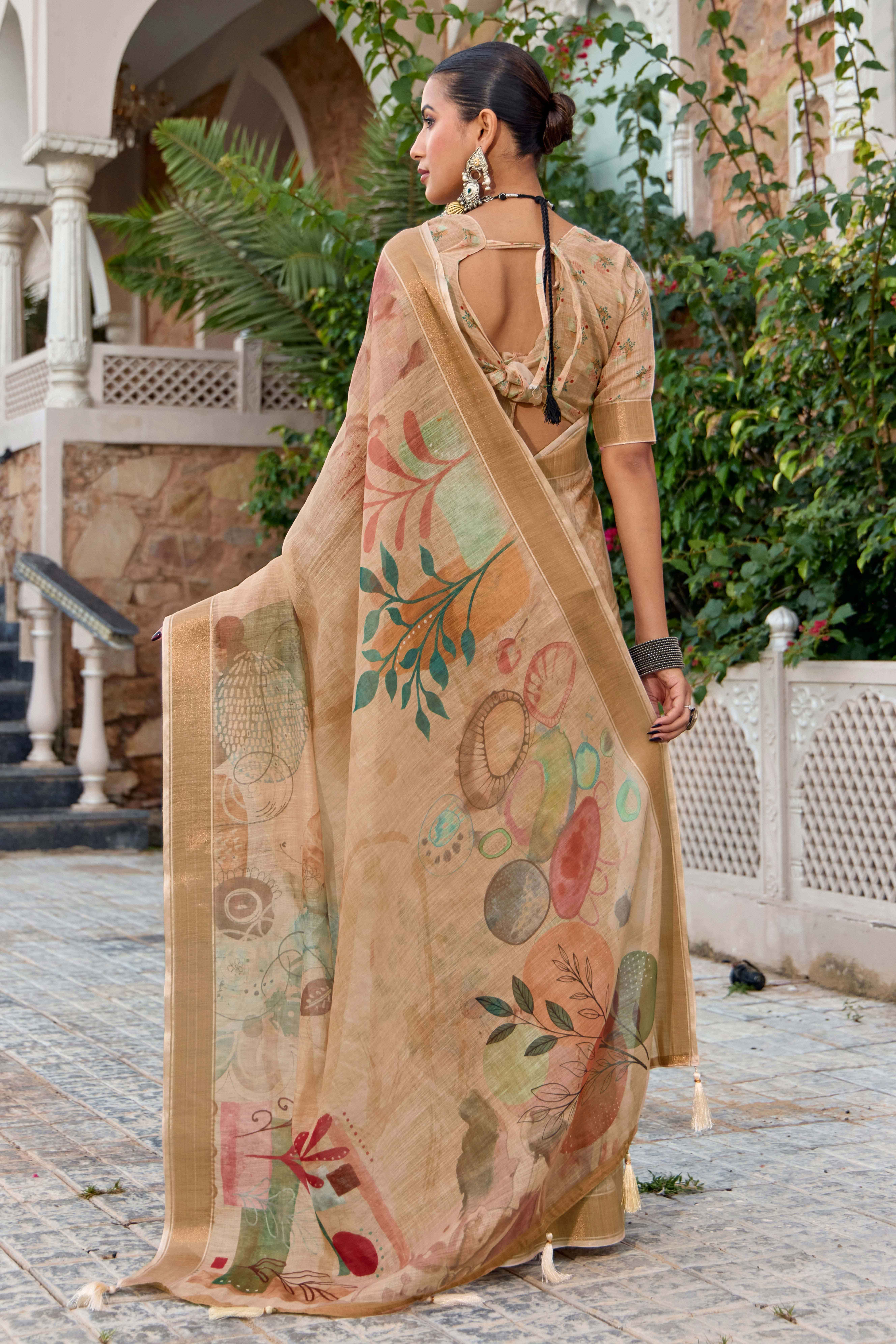 Beige Color Beautiful Linen Silk Fabric Saree With Sophisticated Partywear Saree