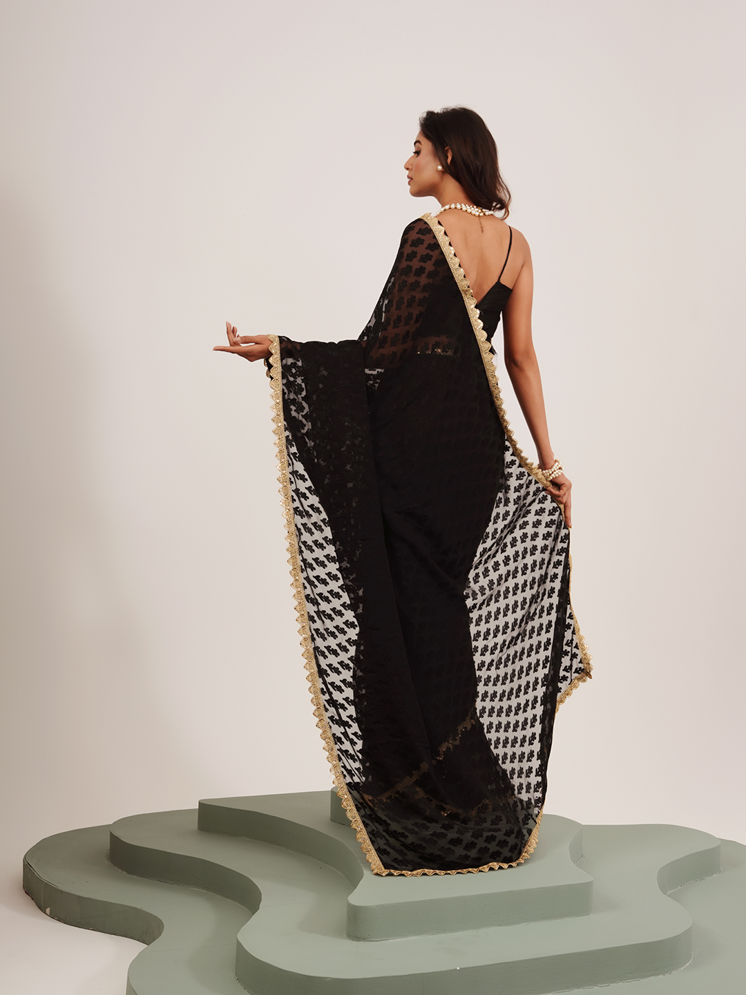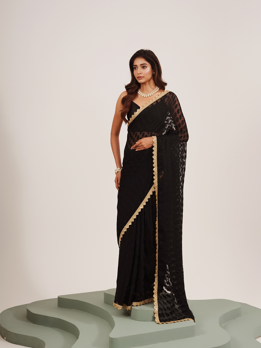 Black Color Beautiful Partywear Embellished Sequinned Brasso Saree