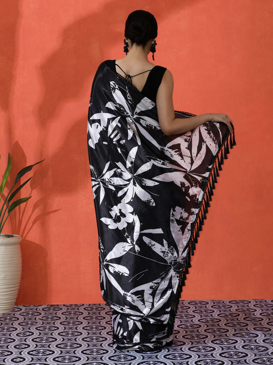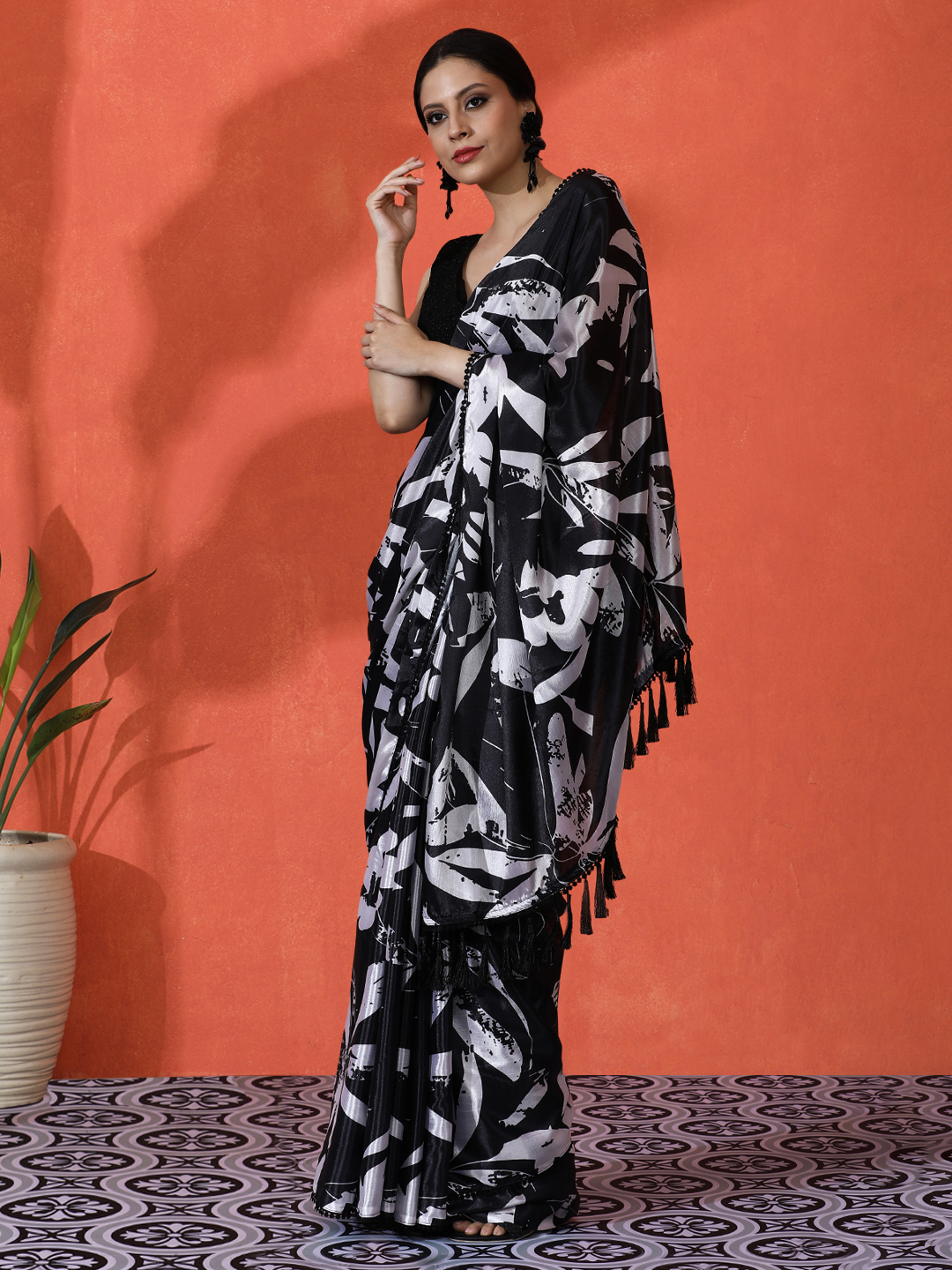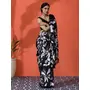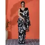 Black Color Chinon Fabric Saree With Beautiful Digital Print For Ceremonial Wear