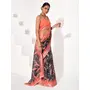 Black Color Cotton Blend Girlie Designer Printed Saree For Rich Sophisticated Looks