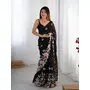 Black Color Floral Embroidered Sequins Work Partywear Saree
