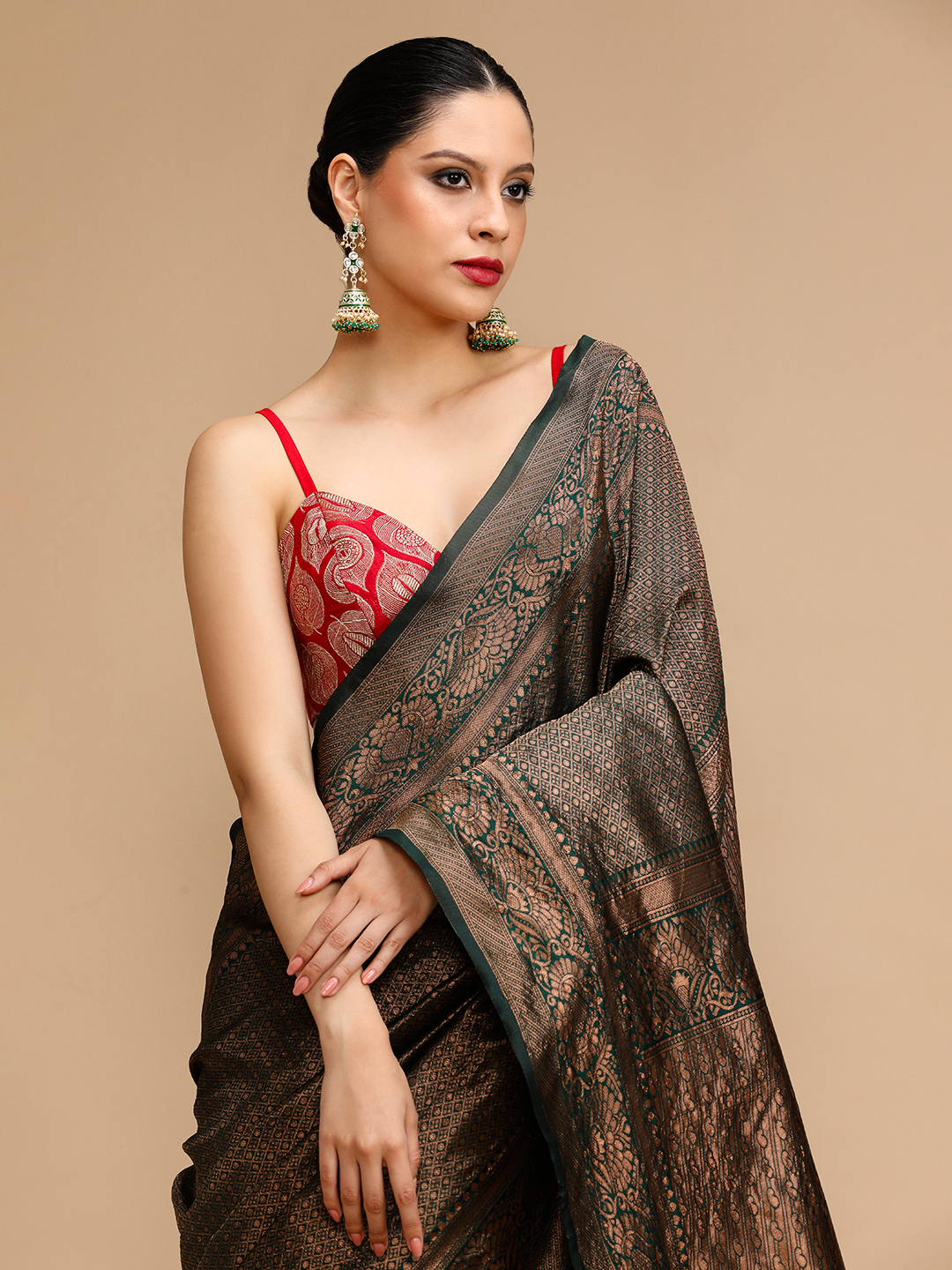 Black Color Lichi Silk Saree Woven Jacquard Designer For Ceremonial Looks