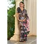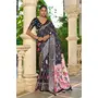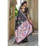 Black Color Silk Blended Traditional Bandhani Ajrakh Printed Saree