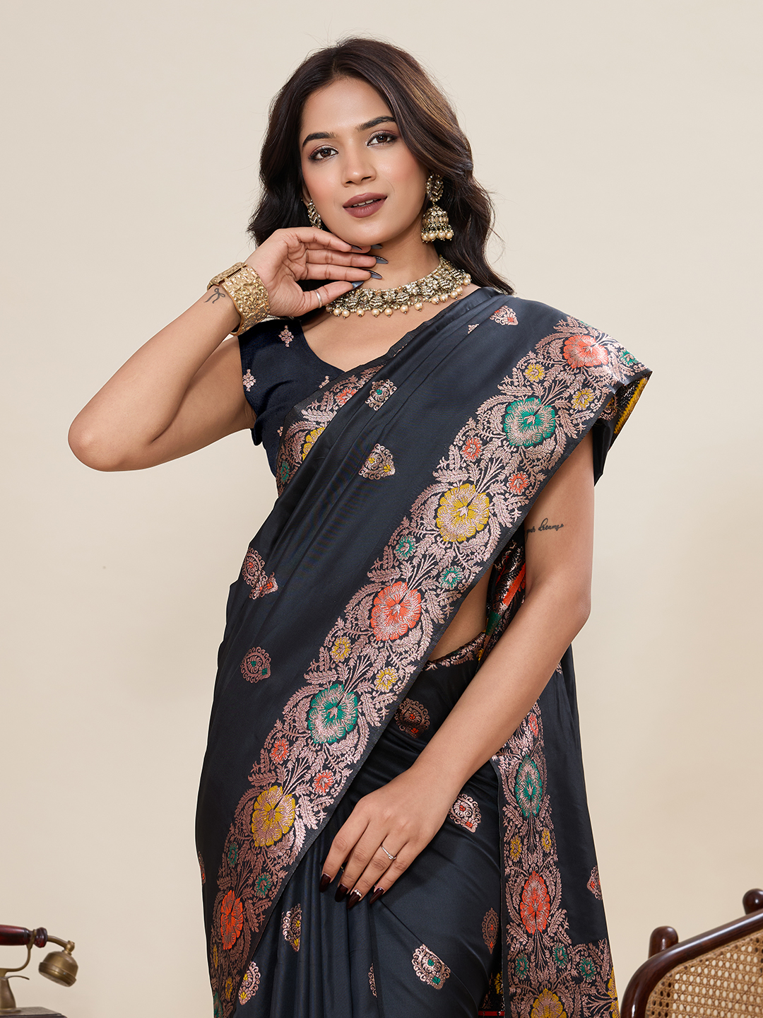Black Color Soft Silk Saree For Ethnic Indian Looks