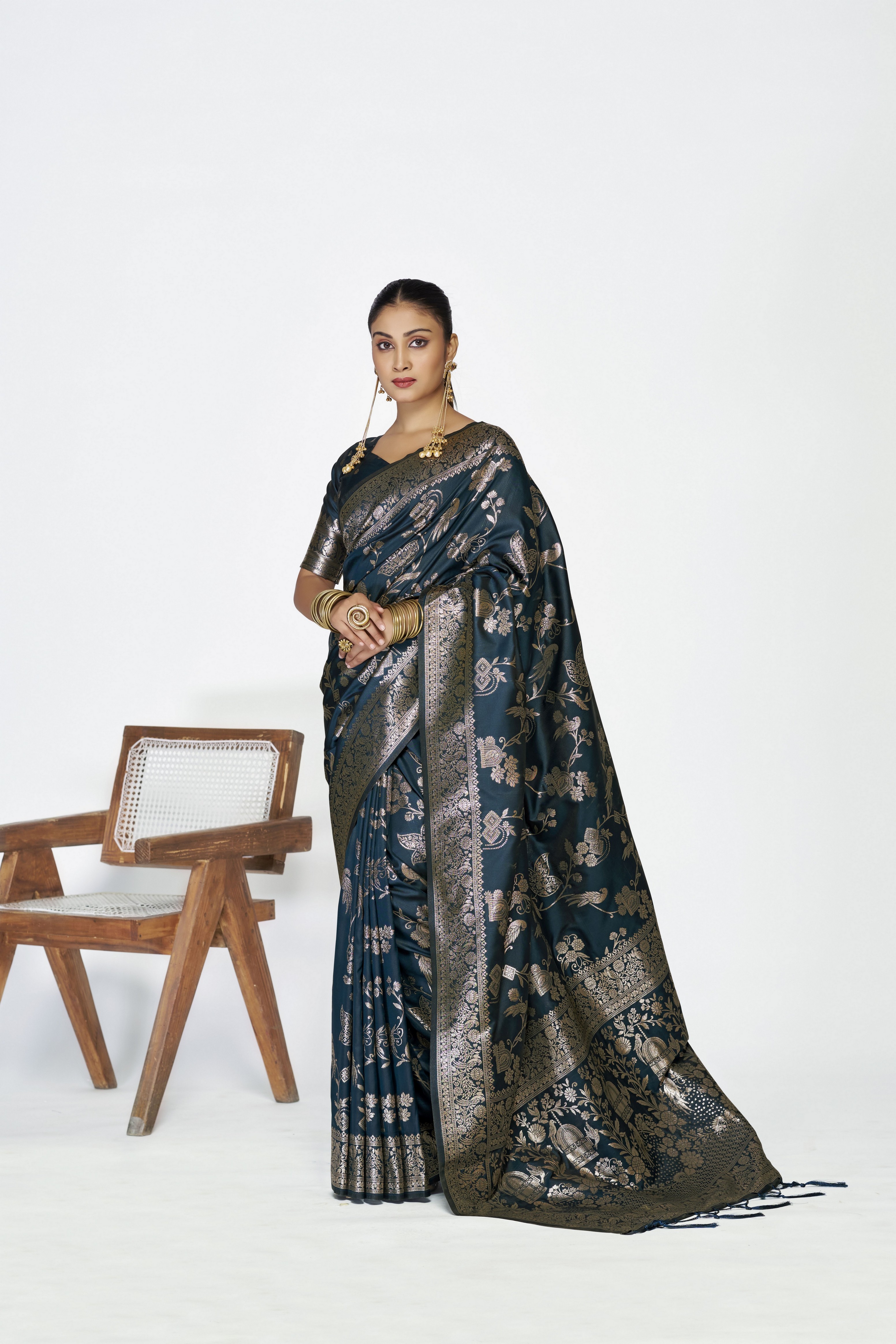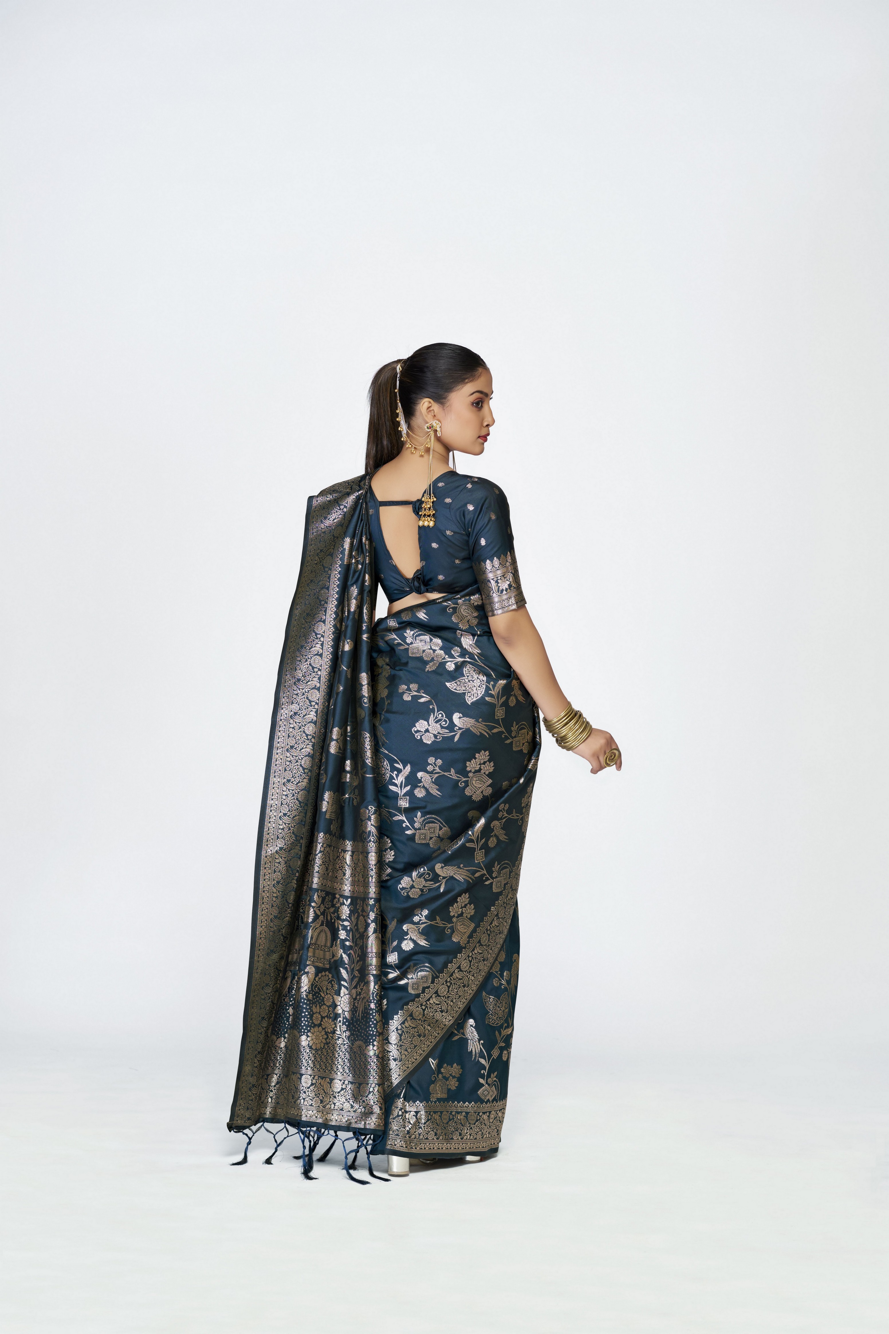 Blue Color Banarasi Silk Fabric Woven Jari Designer Ceremonial Partywear Saree