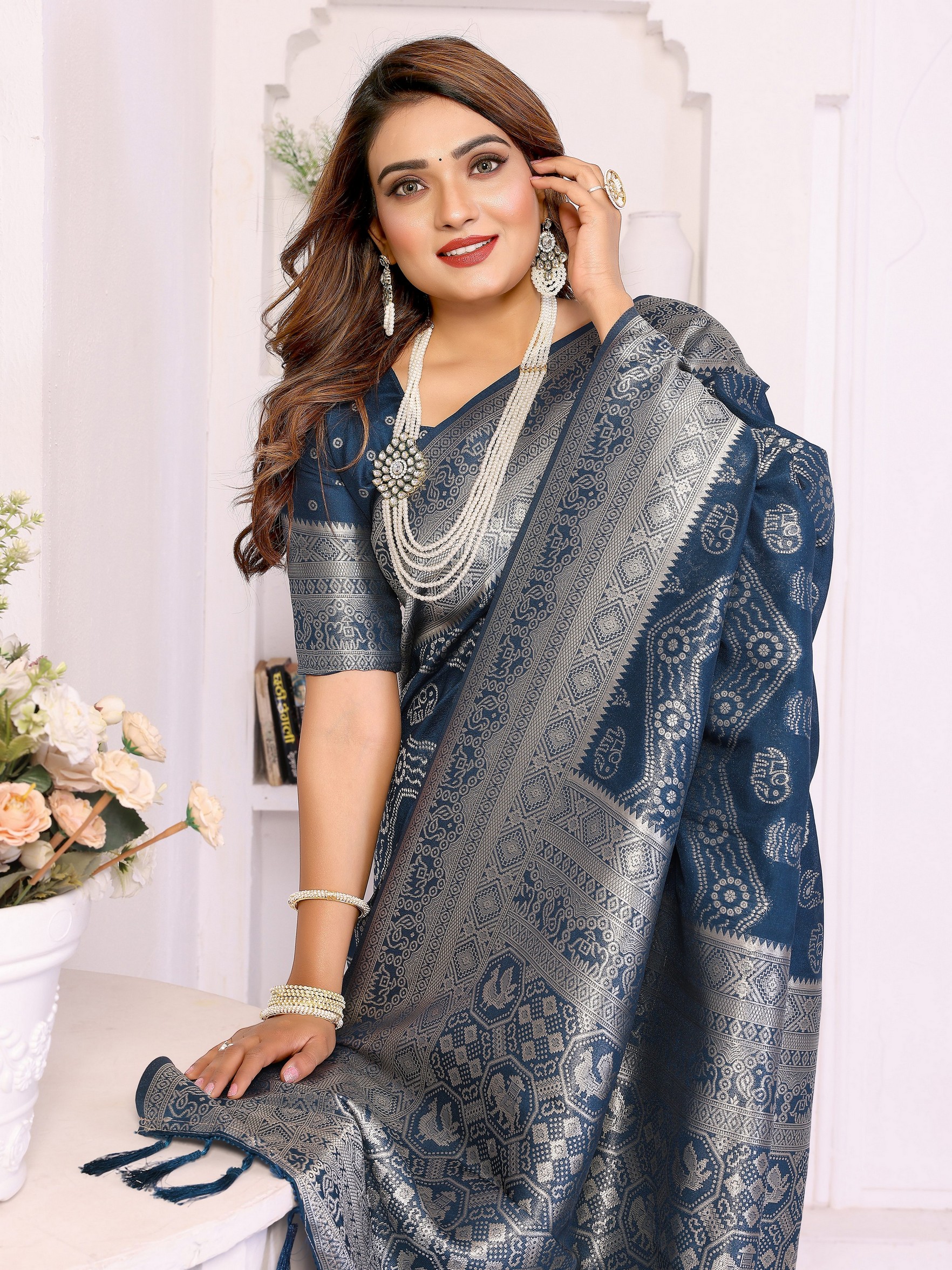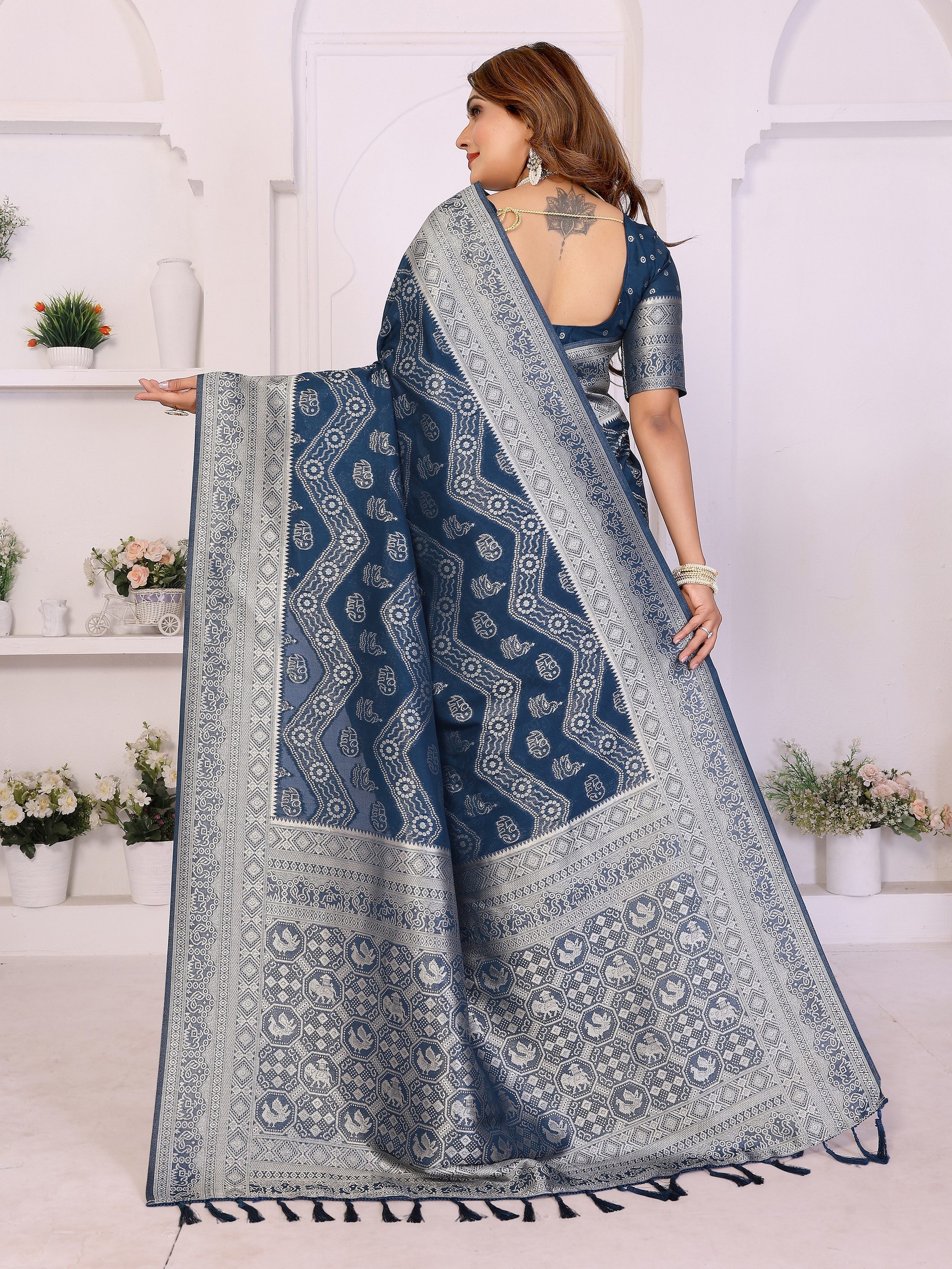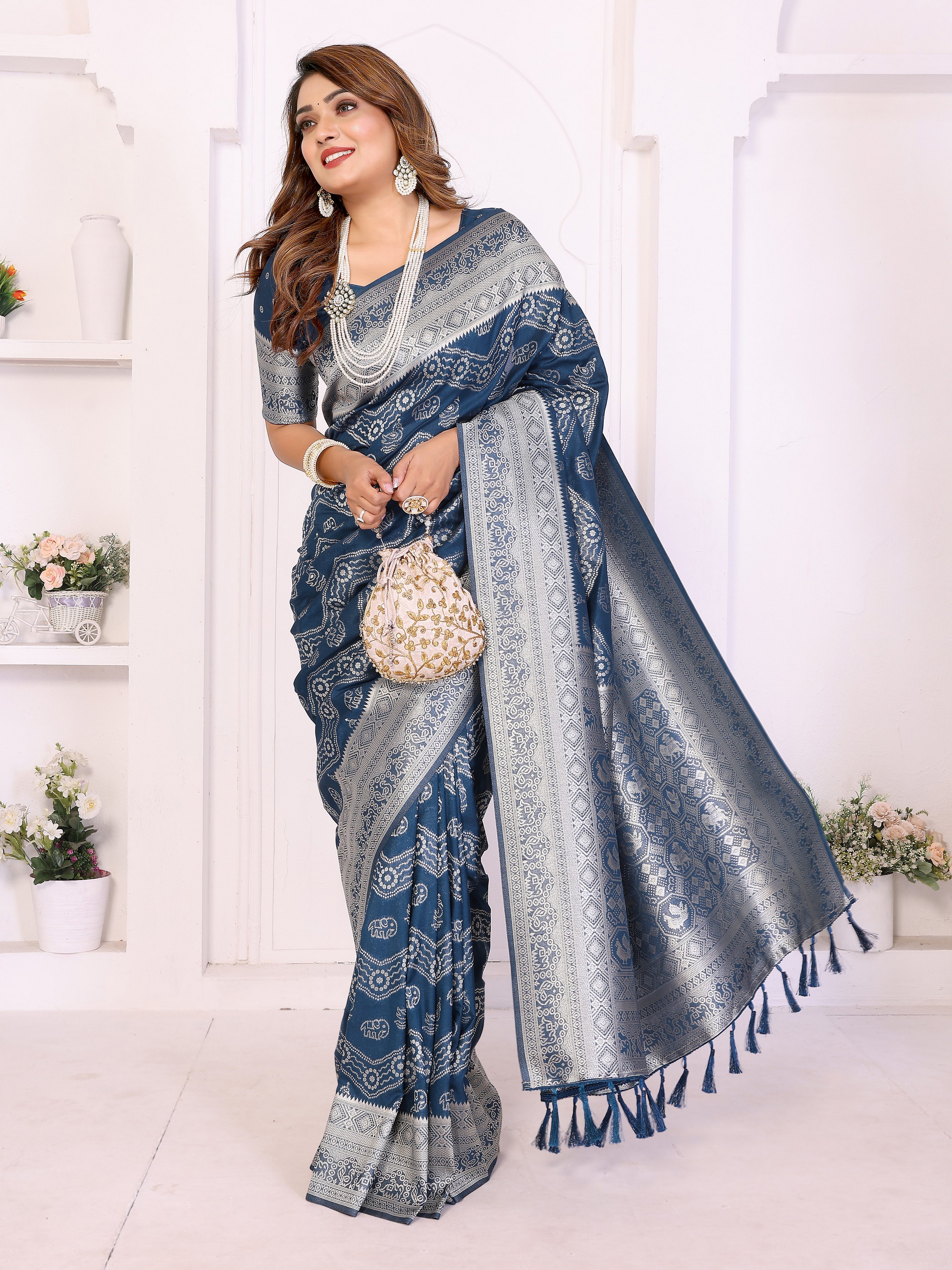 Blue Color Georgette Silk Fabric Woven Laheriya Jari Designer Saree