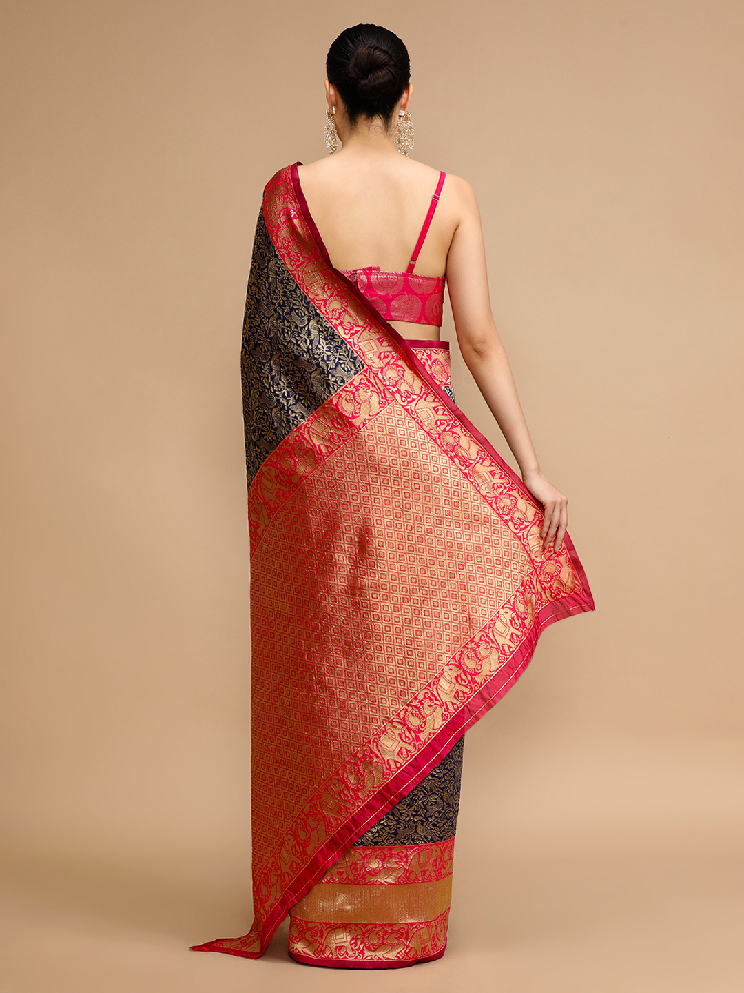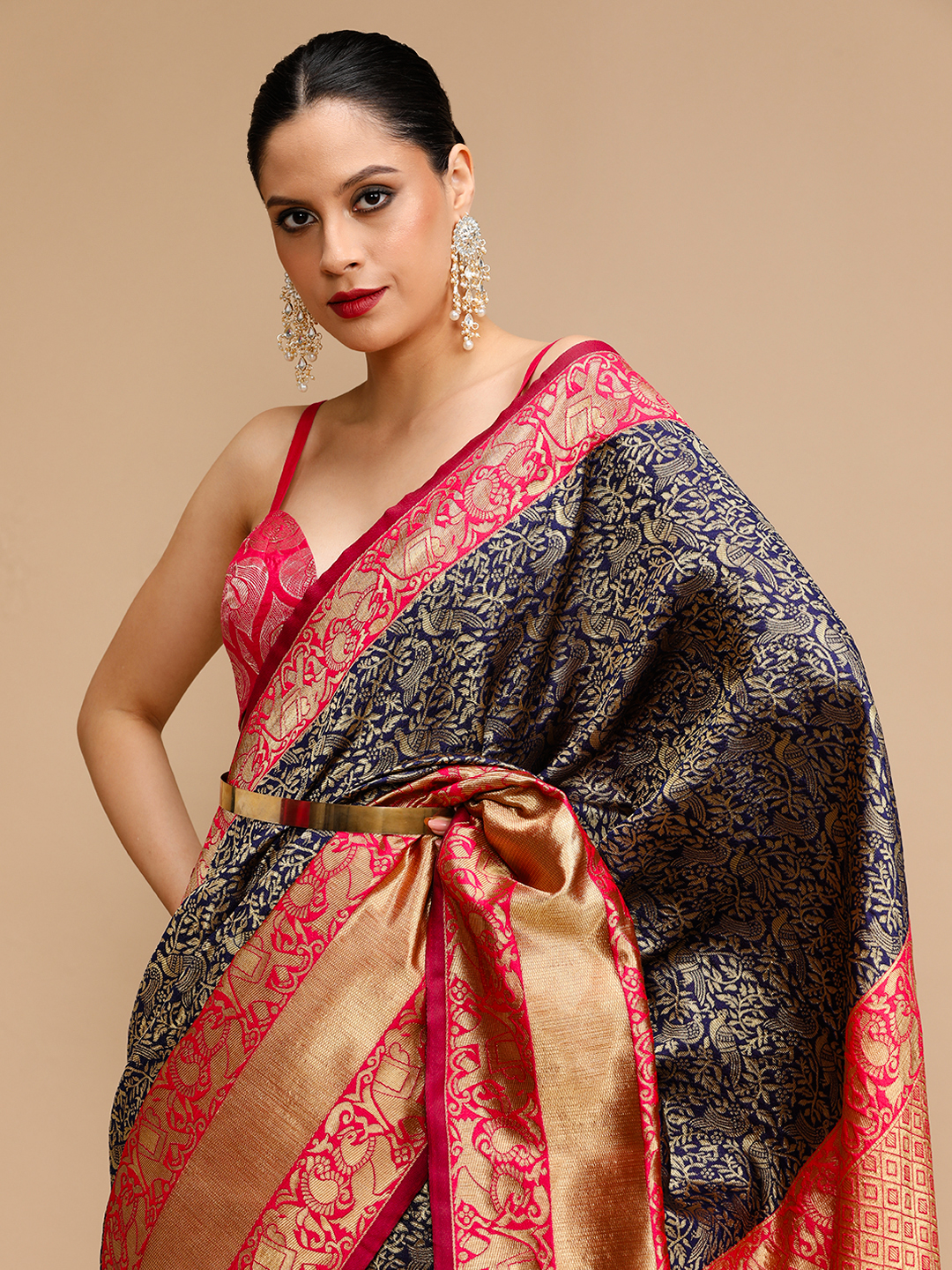 Blue Color Lichi Silk Saree Woven Jacquard Designer For Ceremonial Looks